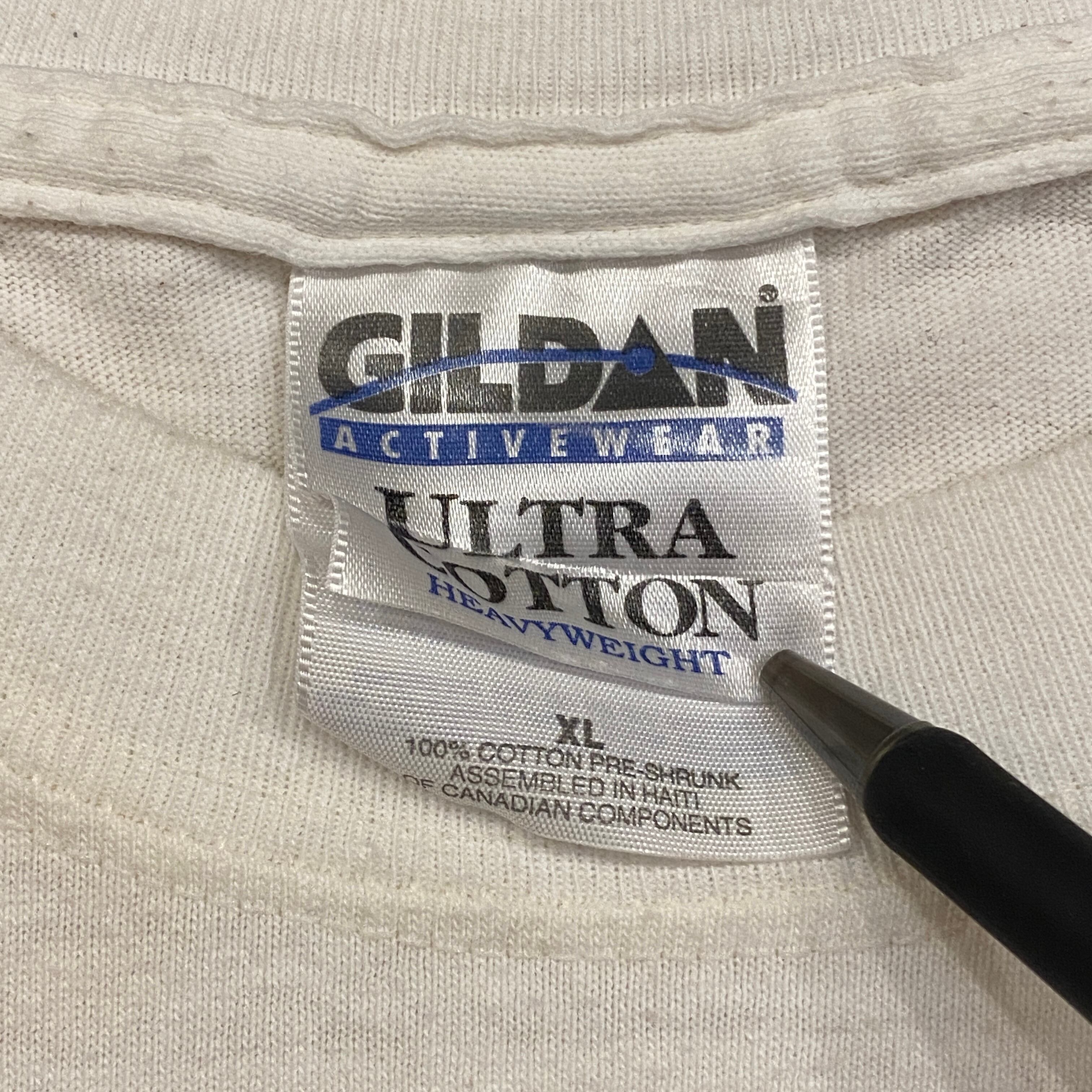 2109 00s〜 00年代〜 GILDAN ギルダン アート グラフィック プリント Tシャツ スポンサー 企業物 ロゴ 牛 自転車 ホワイト 白 古着 メンズ vintage XL