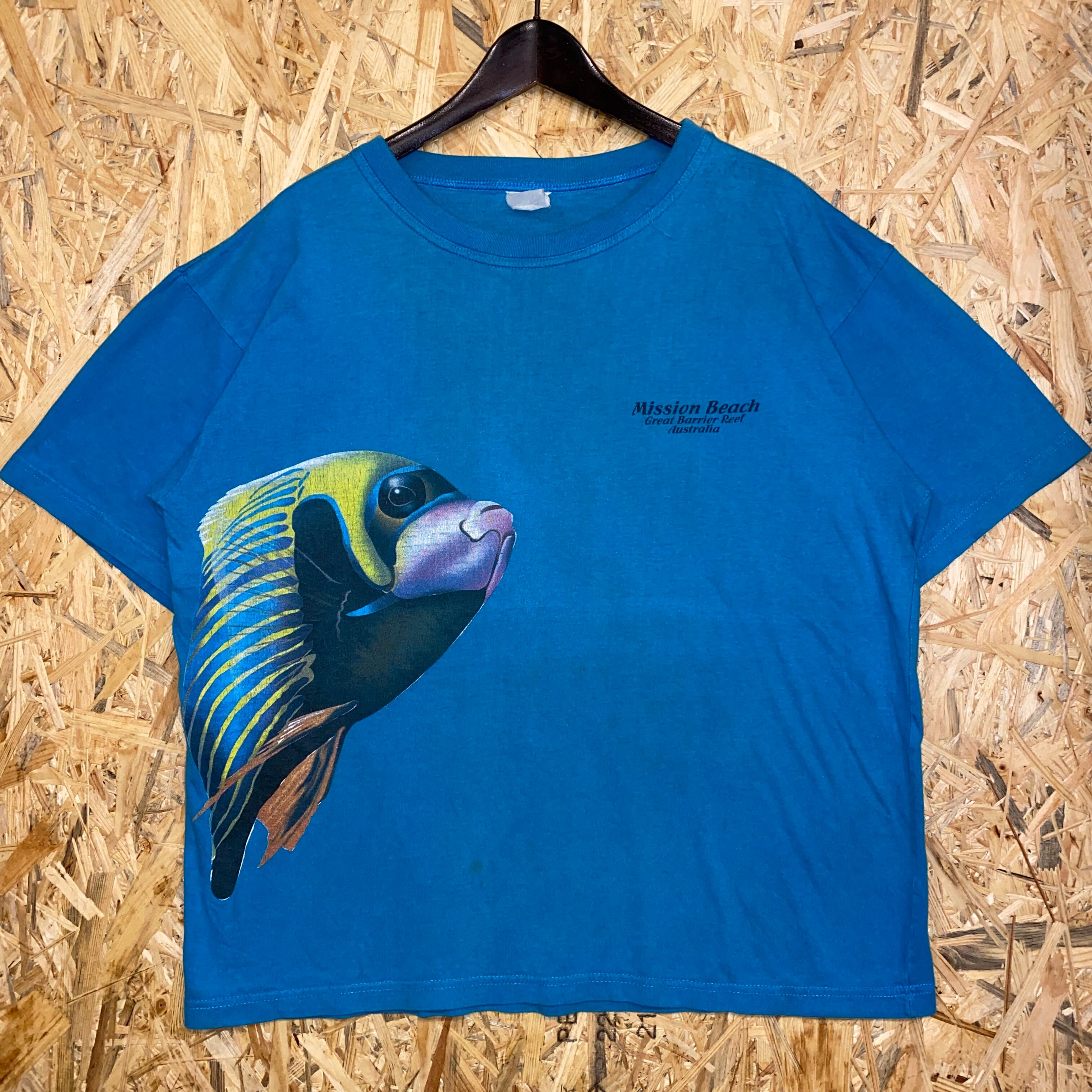 2123 タテジマキンチャクダイ 海水魚 イラスト Tシャツ ミッションビーチ ブルー 水色 ビッグイラスト グラフィック 古着 メンズ vintage