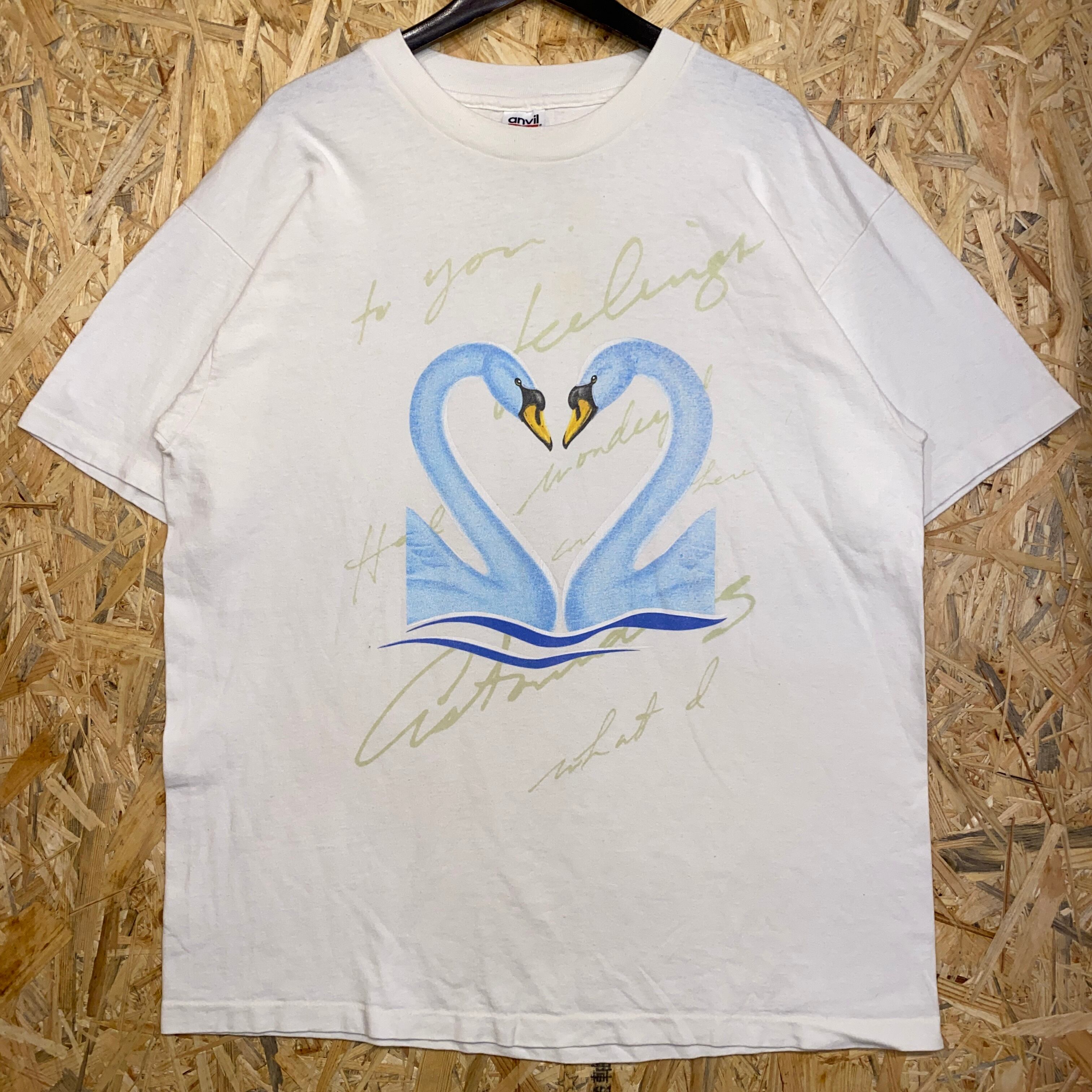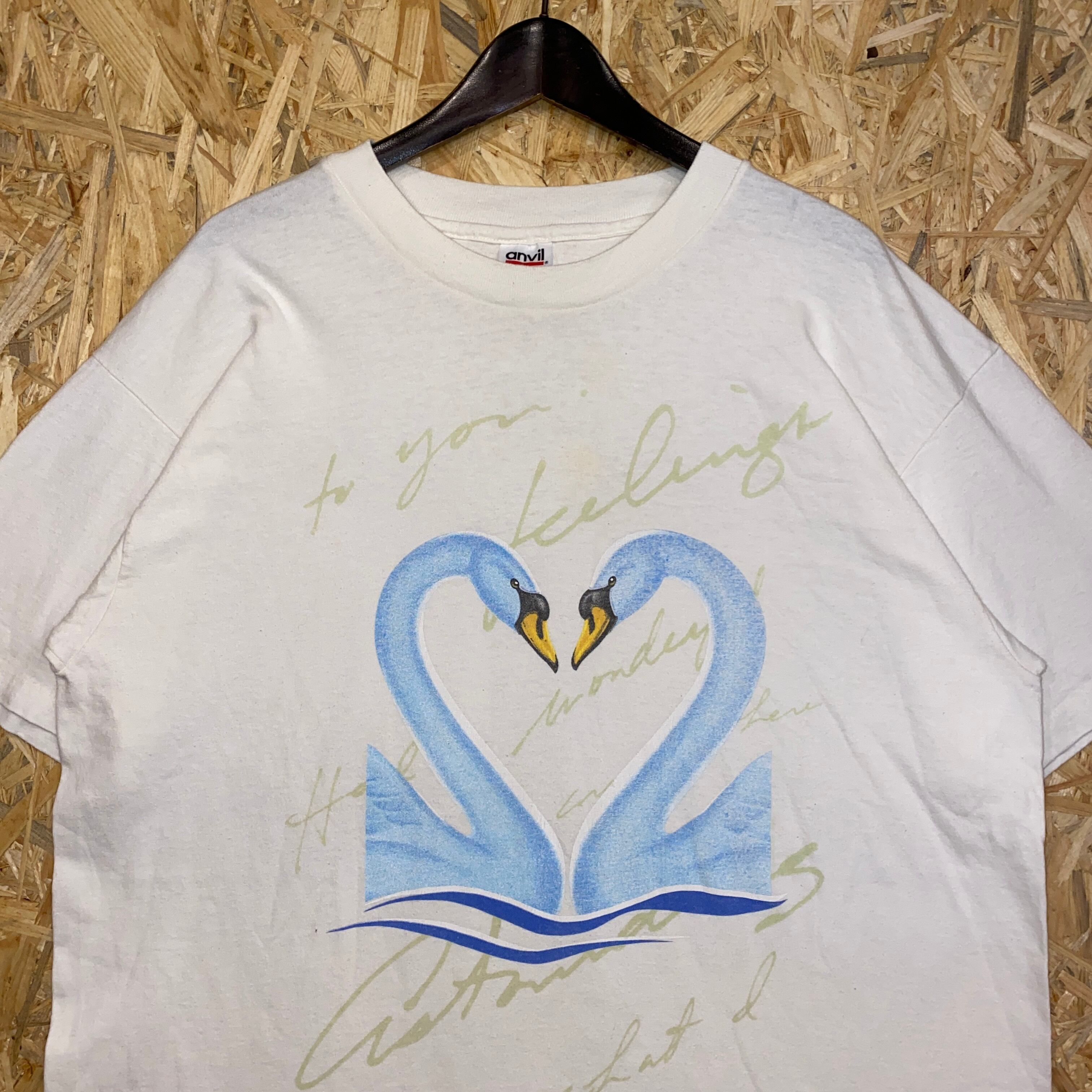 2132 90s 90年代 USA製 白鳥 プリント Tシャツ anvil アンビル アニマル シングルステッチ 切手 鳥 スワン柄 パステル 古着 メンズ vintage XL