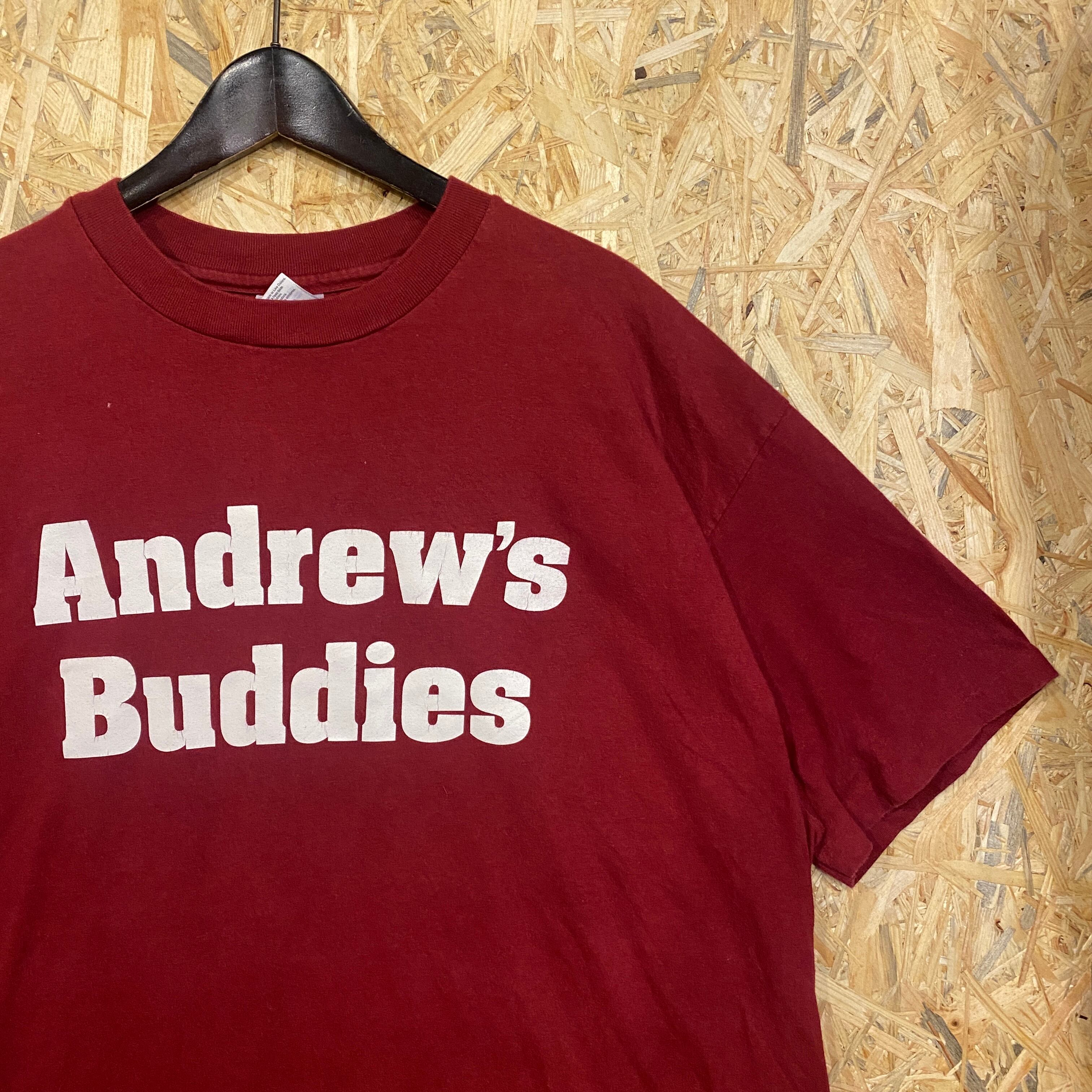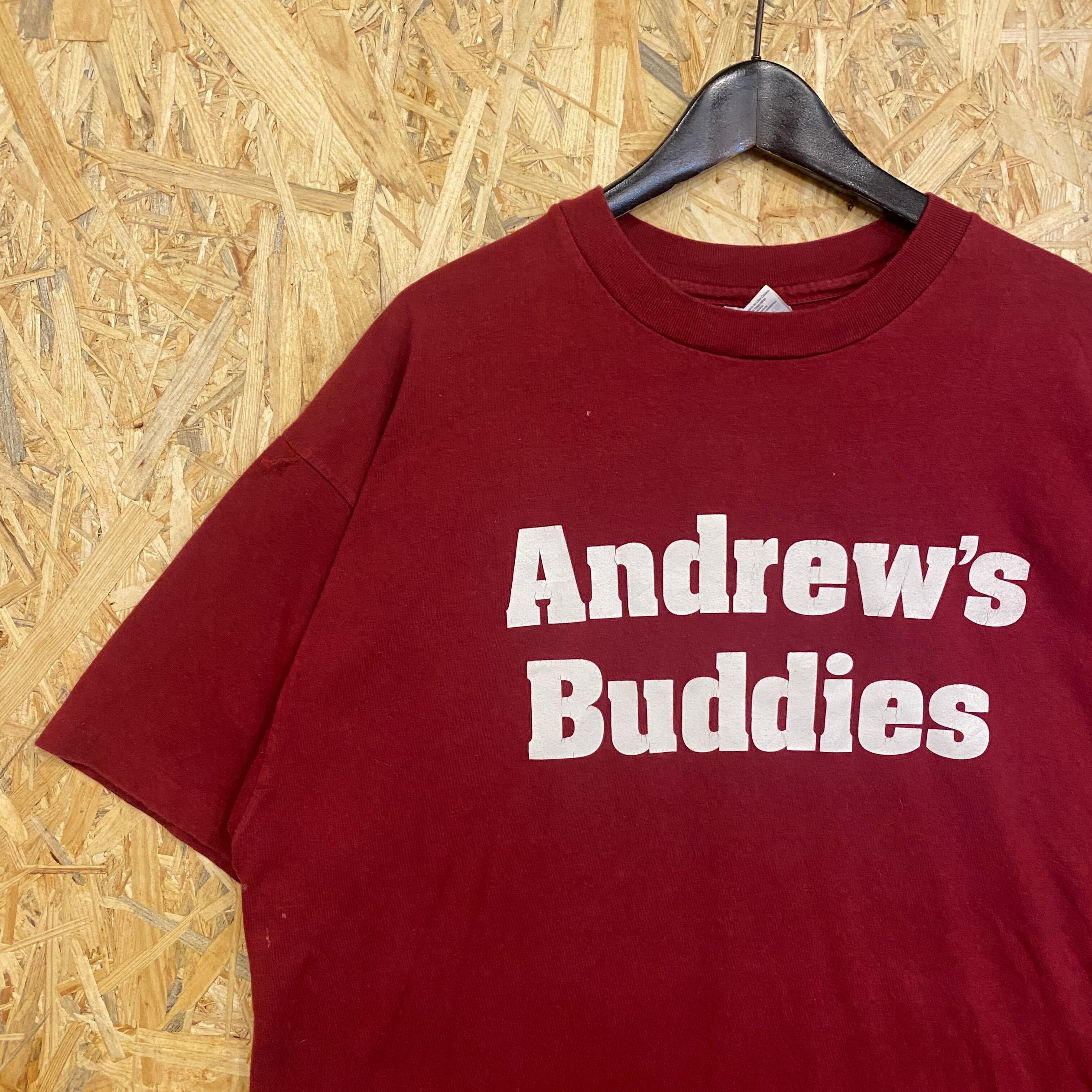 2160 90s 90年代 USA製 hanes 英字 プリント Tシャツ シングルステッチ 赤 えんじ色 アンドリュー 古着 メンズ vintage