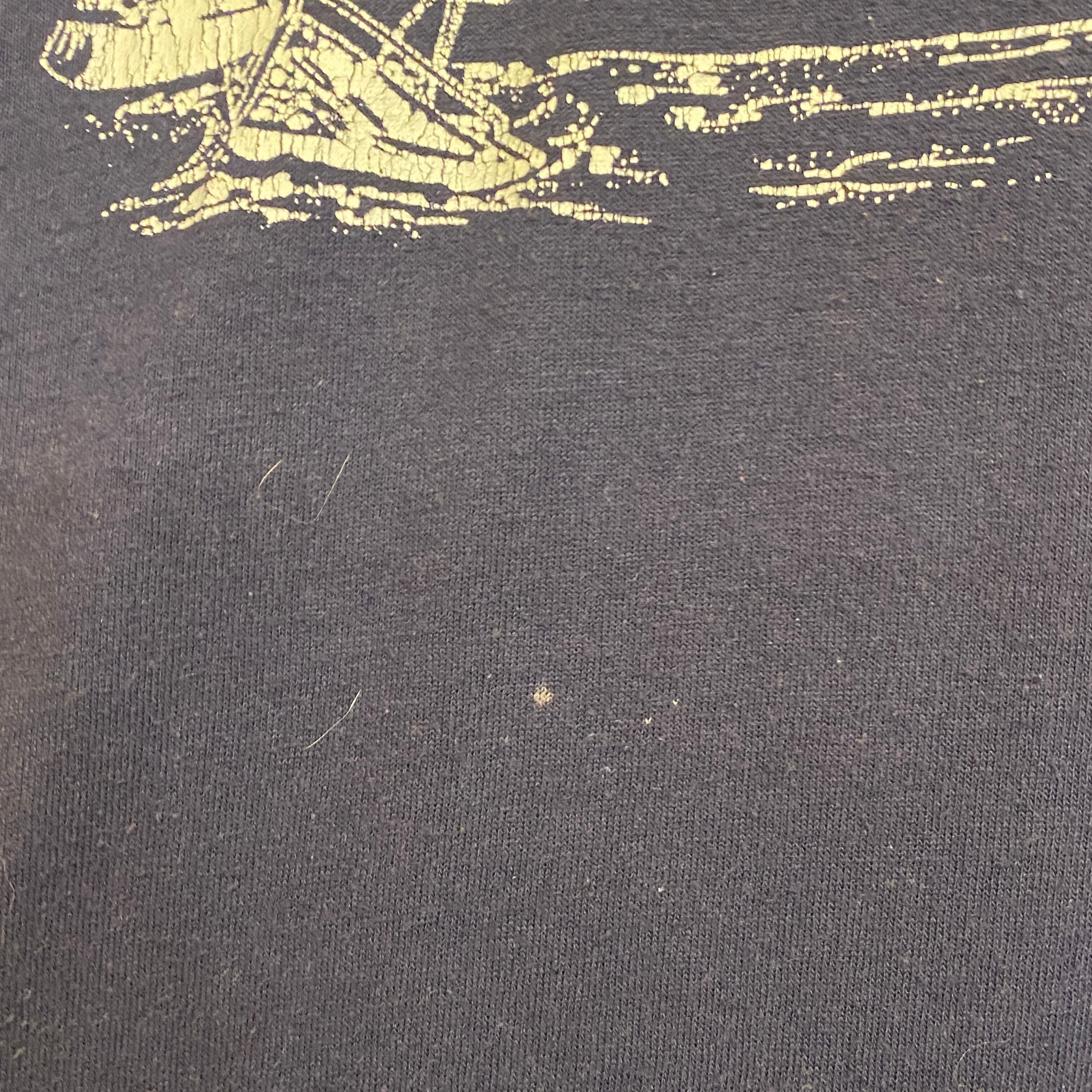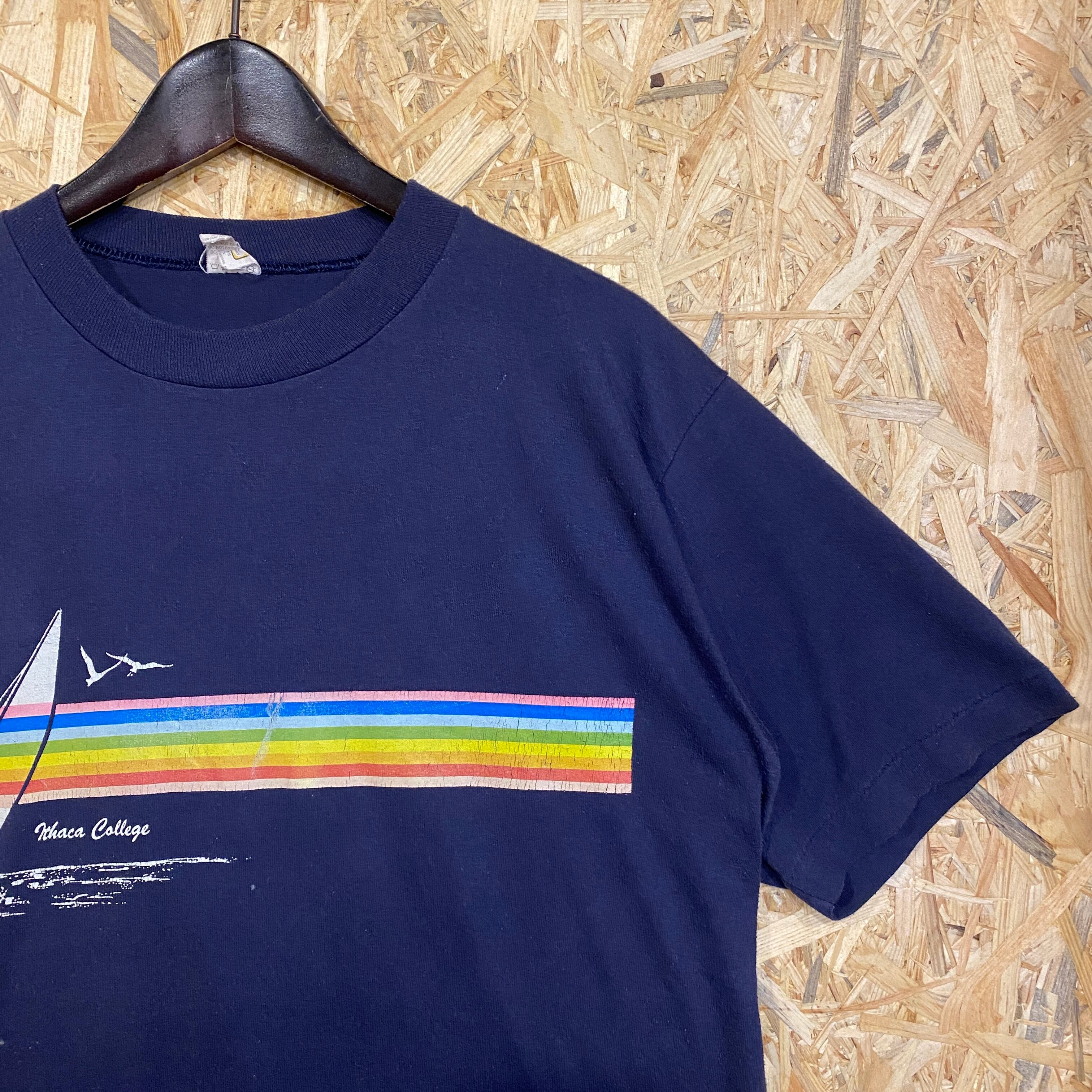2163 80s 80年代 USA製 Velva sheen プリント Tシャツ 虹 帆船 イサカ大学 ニューヨーク ネイビー 紺 イラスト 古着 メンズ vintage