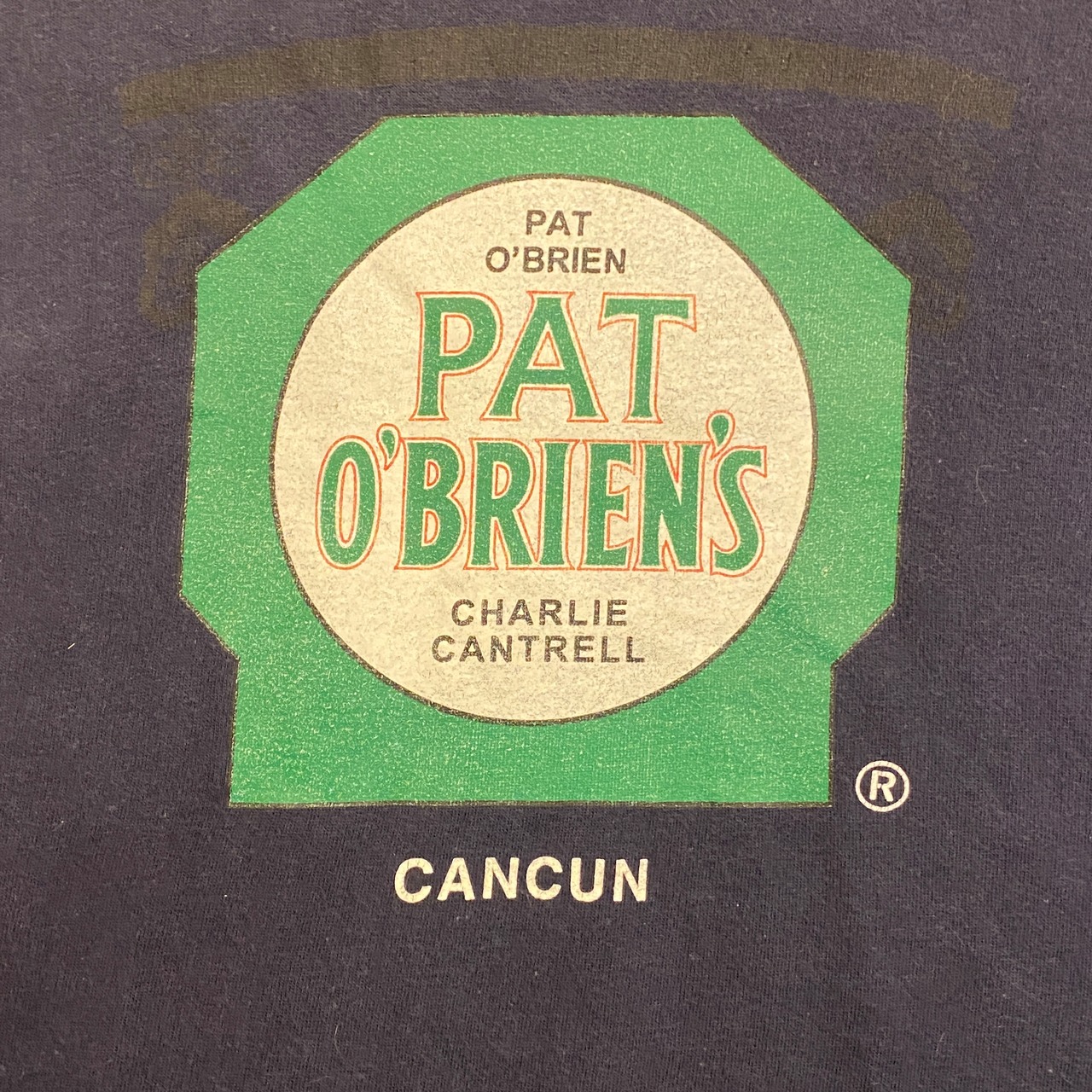 2165 PAT OBRIENS 両面 プリント Tシャツ レストラン バー ロゴ カンクン グラフィック ネイビー 紺 古着 メンズ vintage