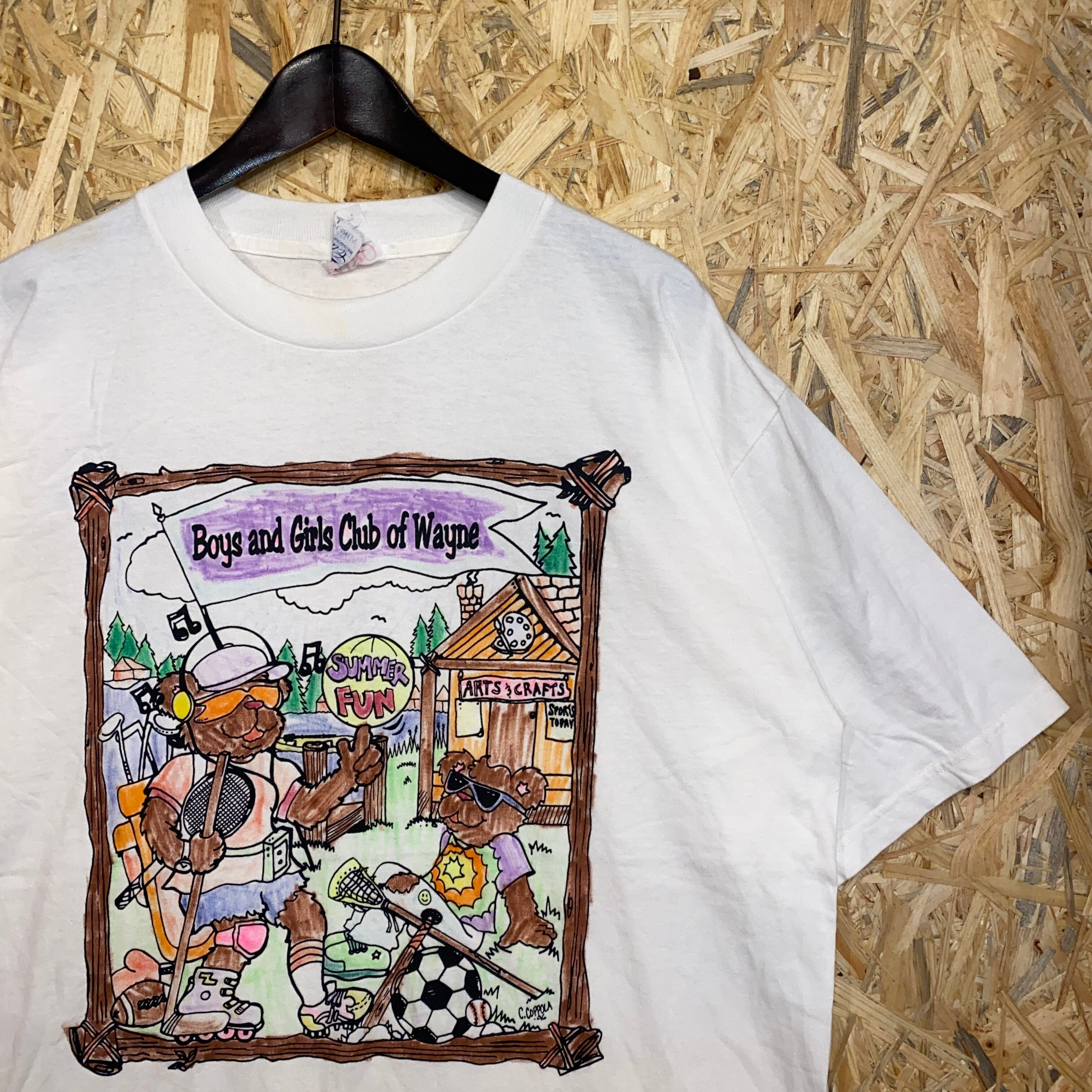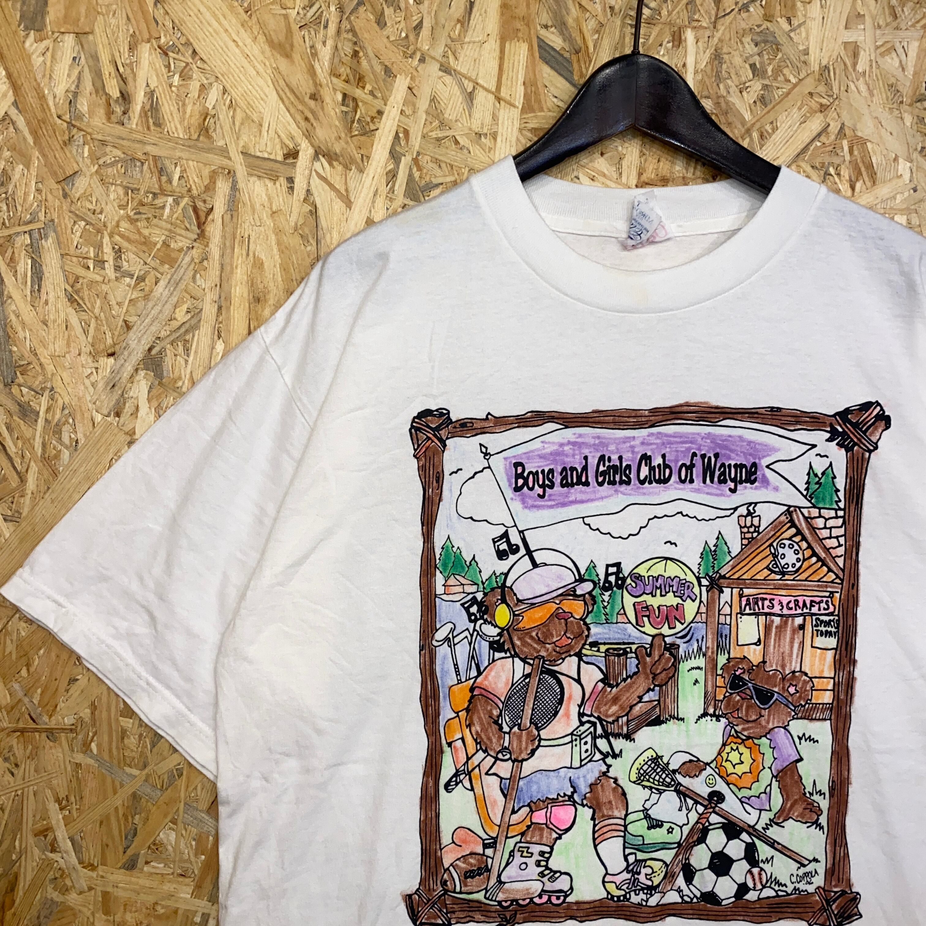 2170 90s 90年代 クマ アニマル プリント Tシャツ イラスト グラフィック デザイン 夏 スポーツ ホワイト 白 古着 メンズ vintage