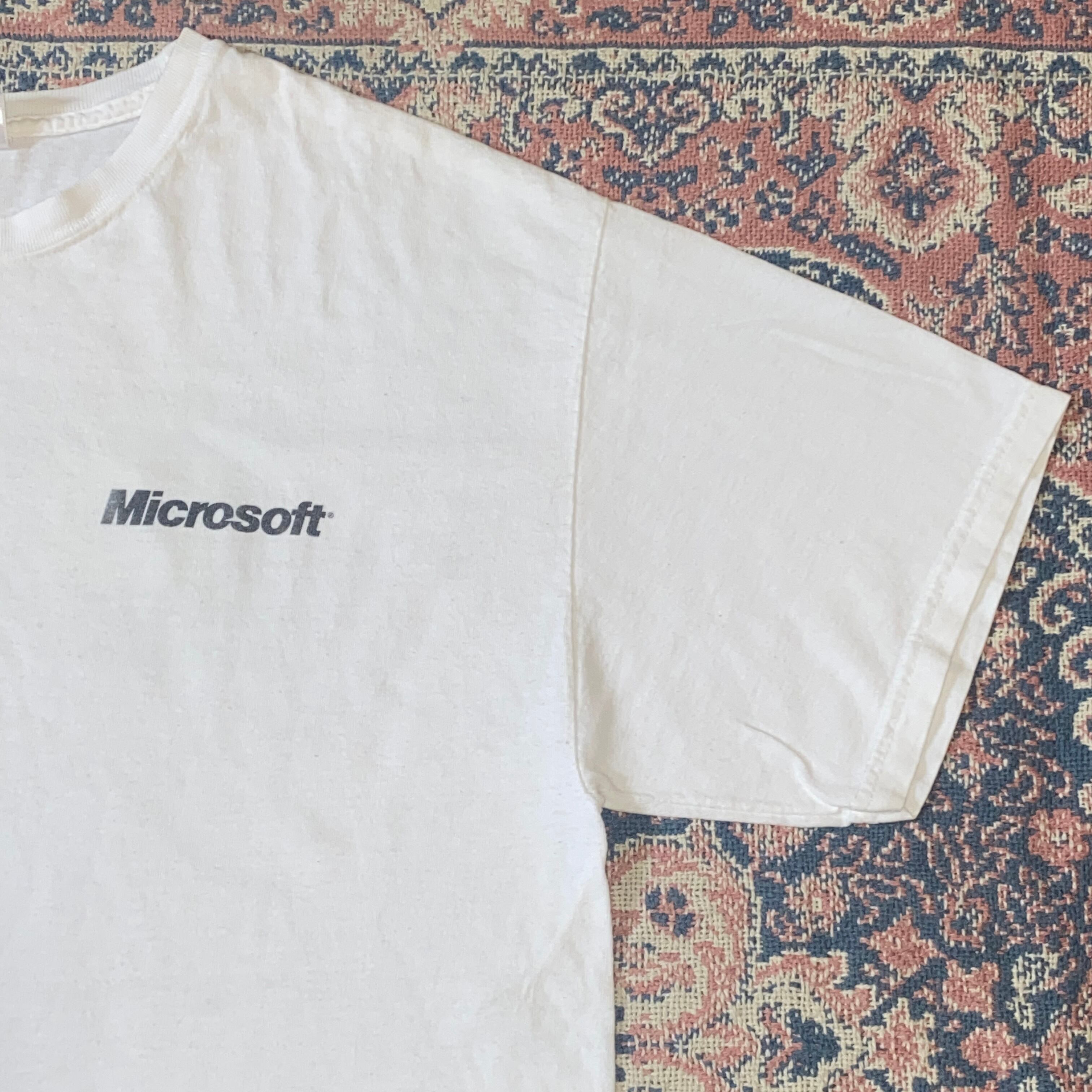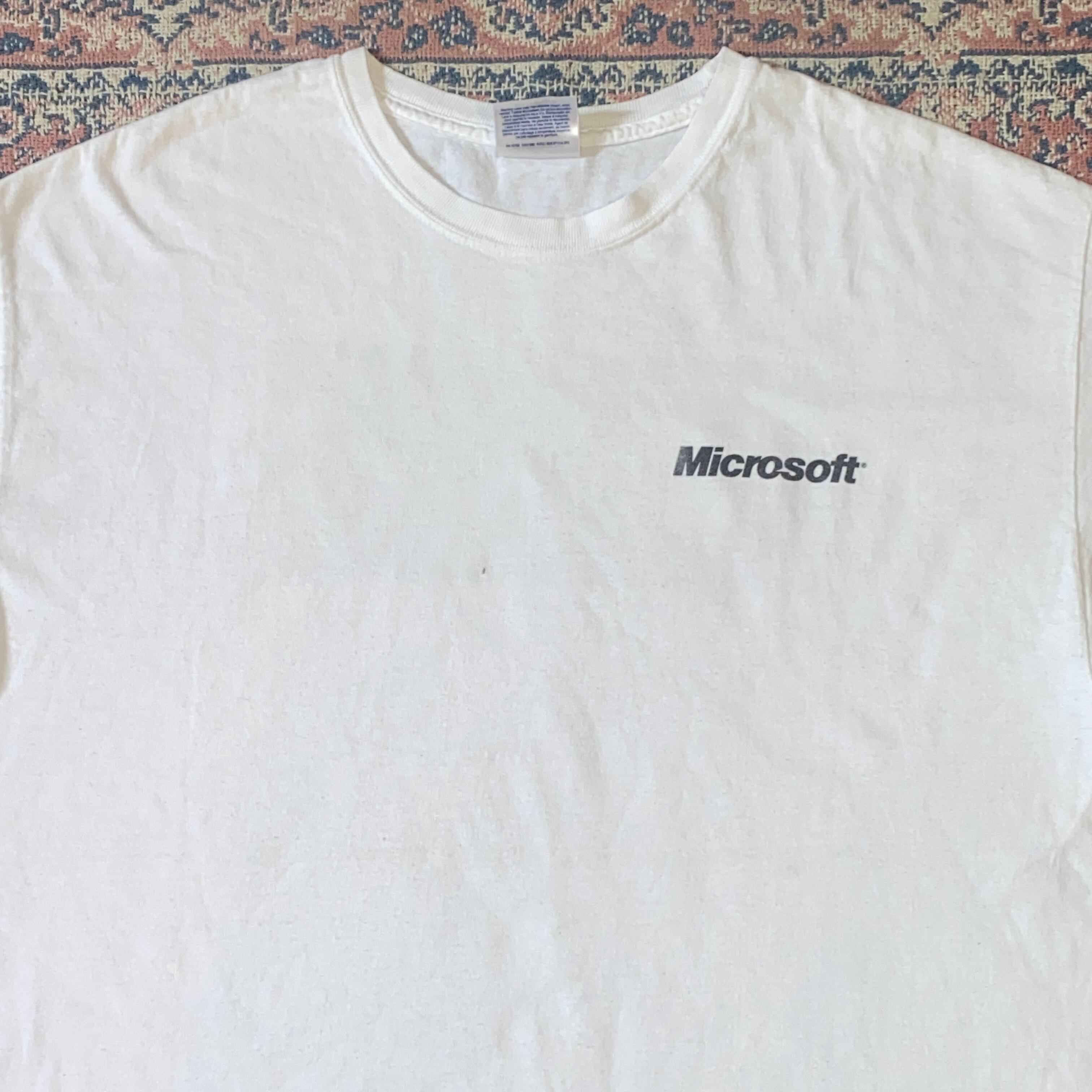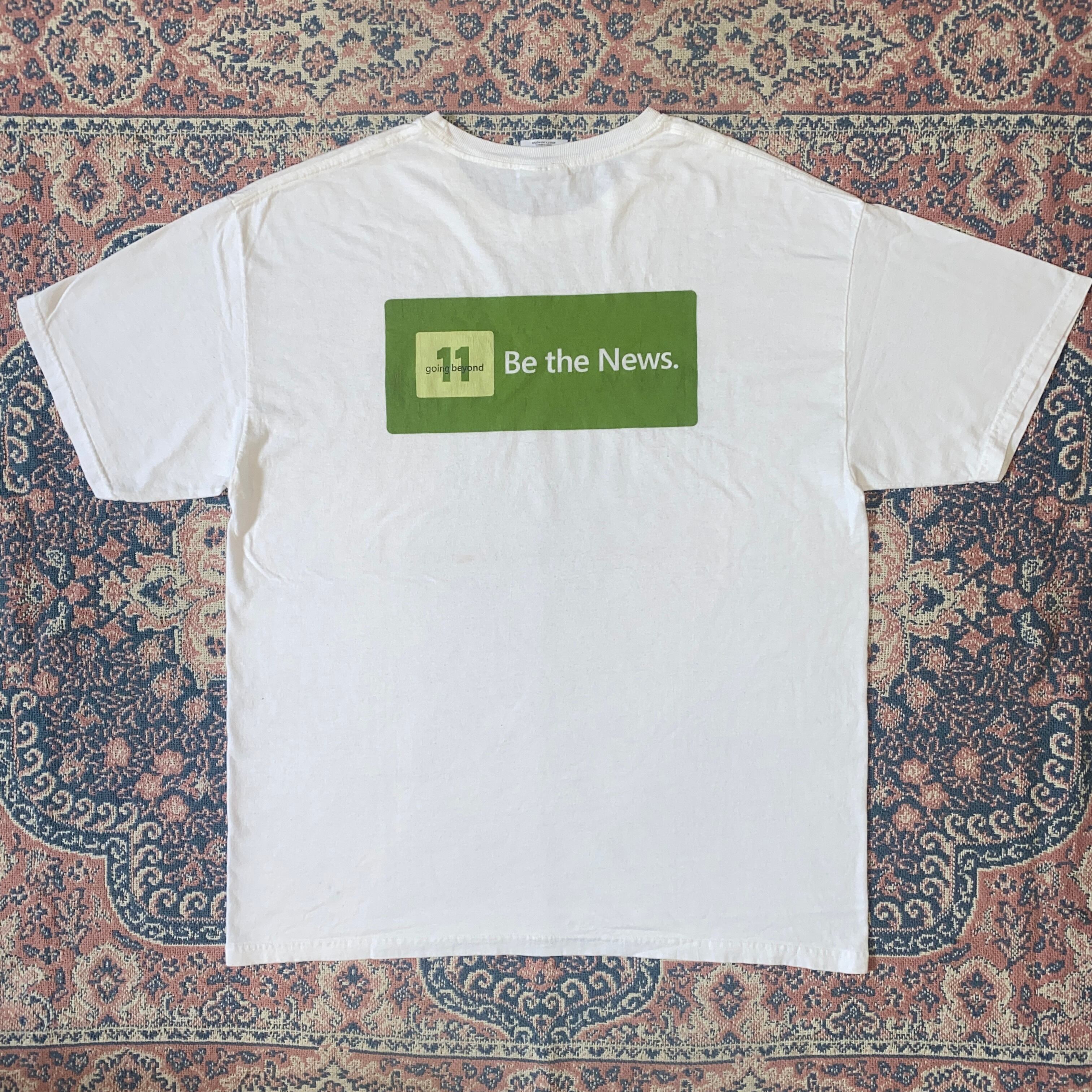 2173 90s 90年代 Microsoft オフィシャル ロゴ Tシャツ "Be the News" 両面プリント 企業 Hanes 白 ホワイト 古着 メンズ vintage