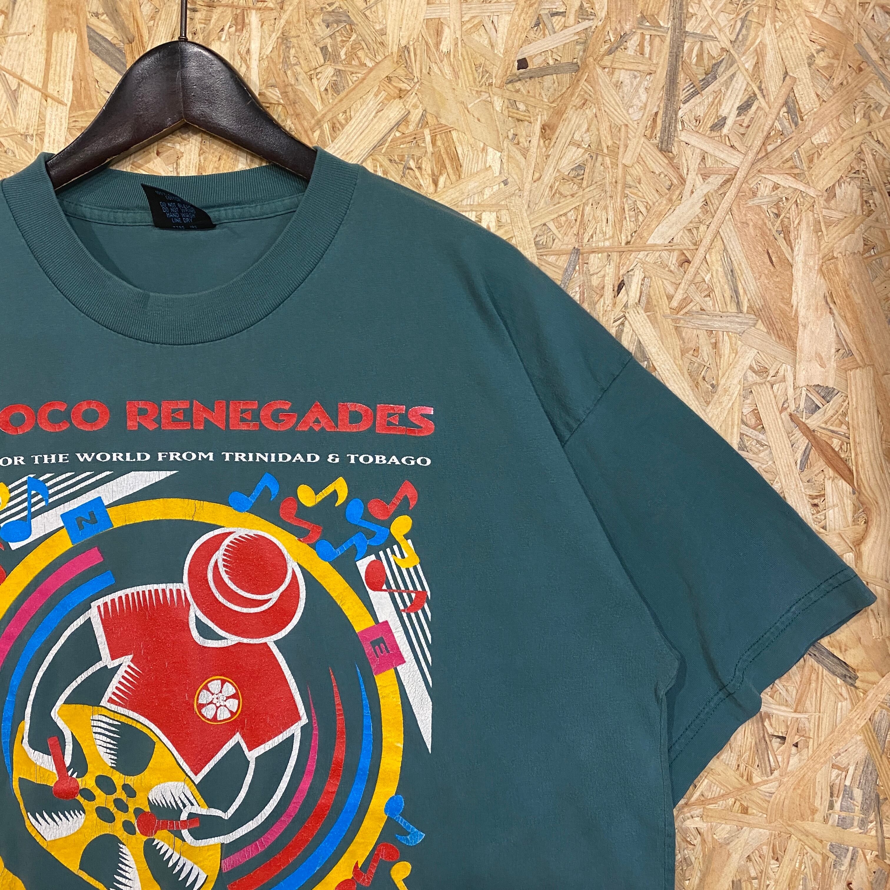 2178 90s 90年代 AMOCO RENEGADES プリント Tシャツ 音楽 グラフィック アート 緑 グリーン ミュージックT 古着 メンズ vintage