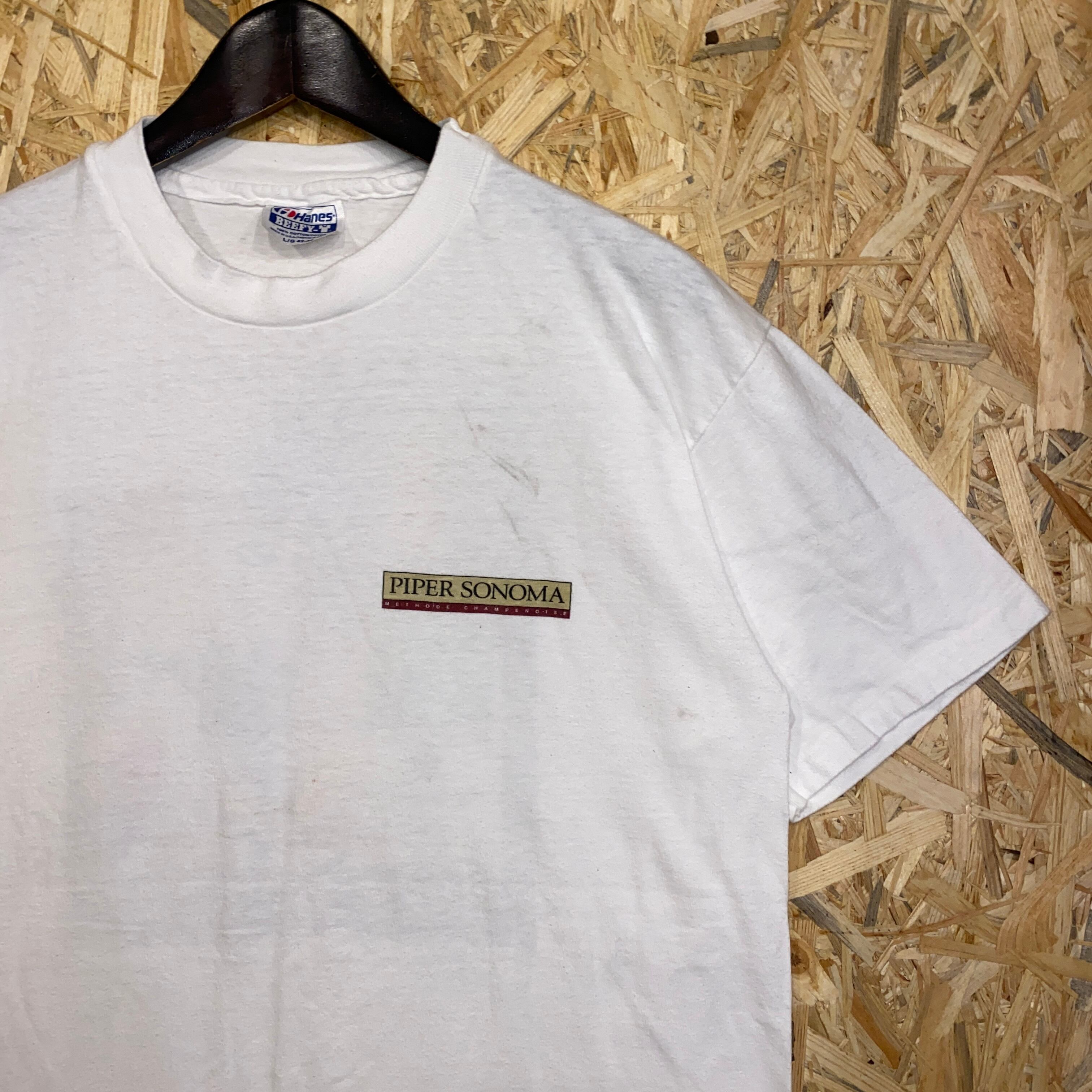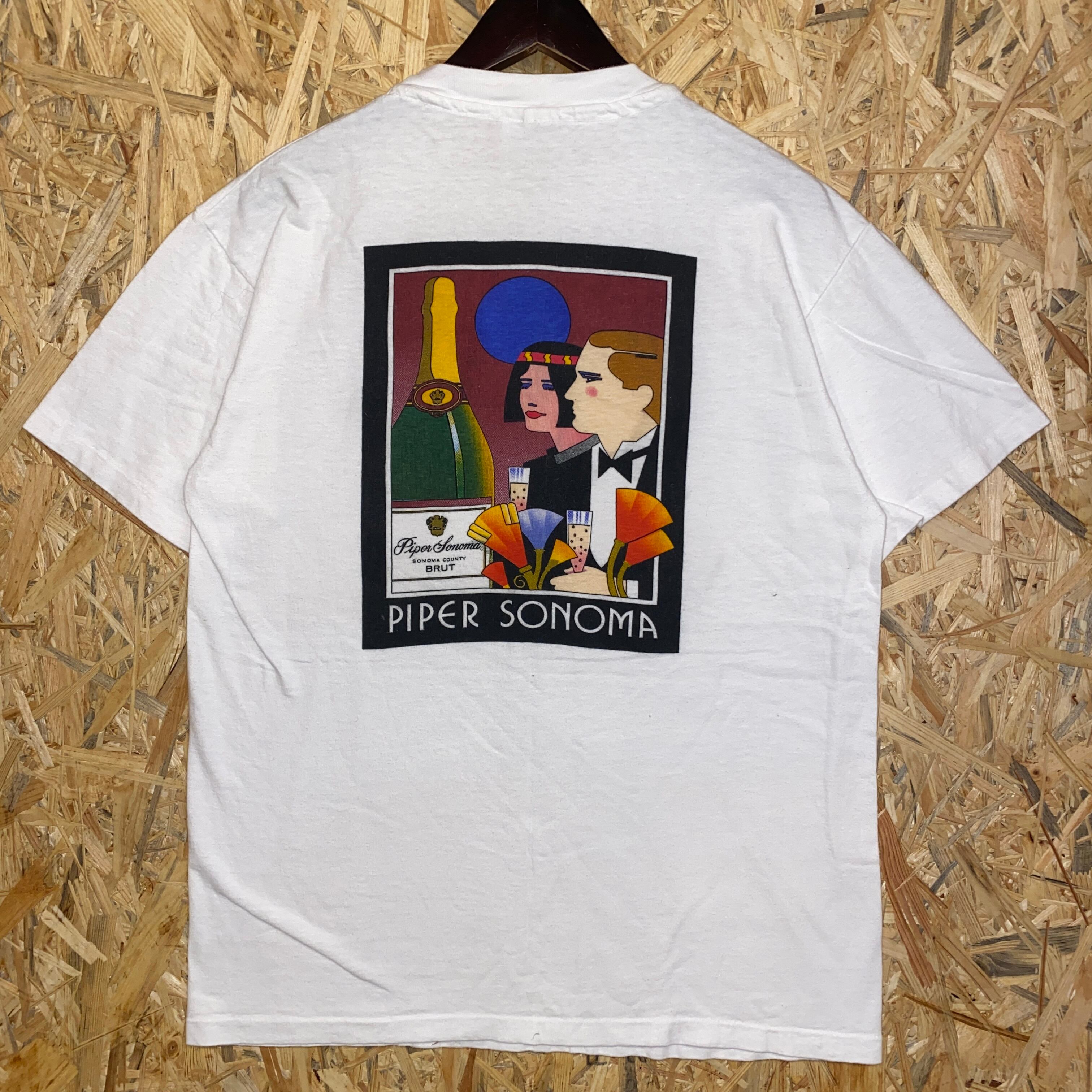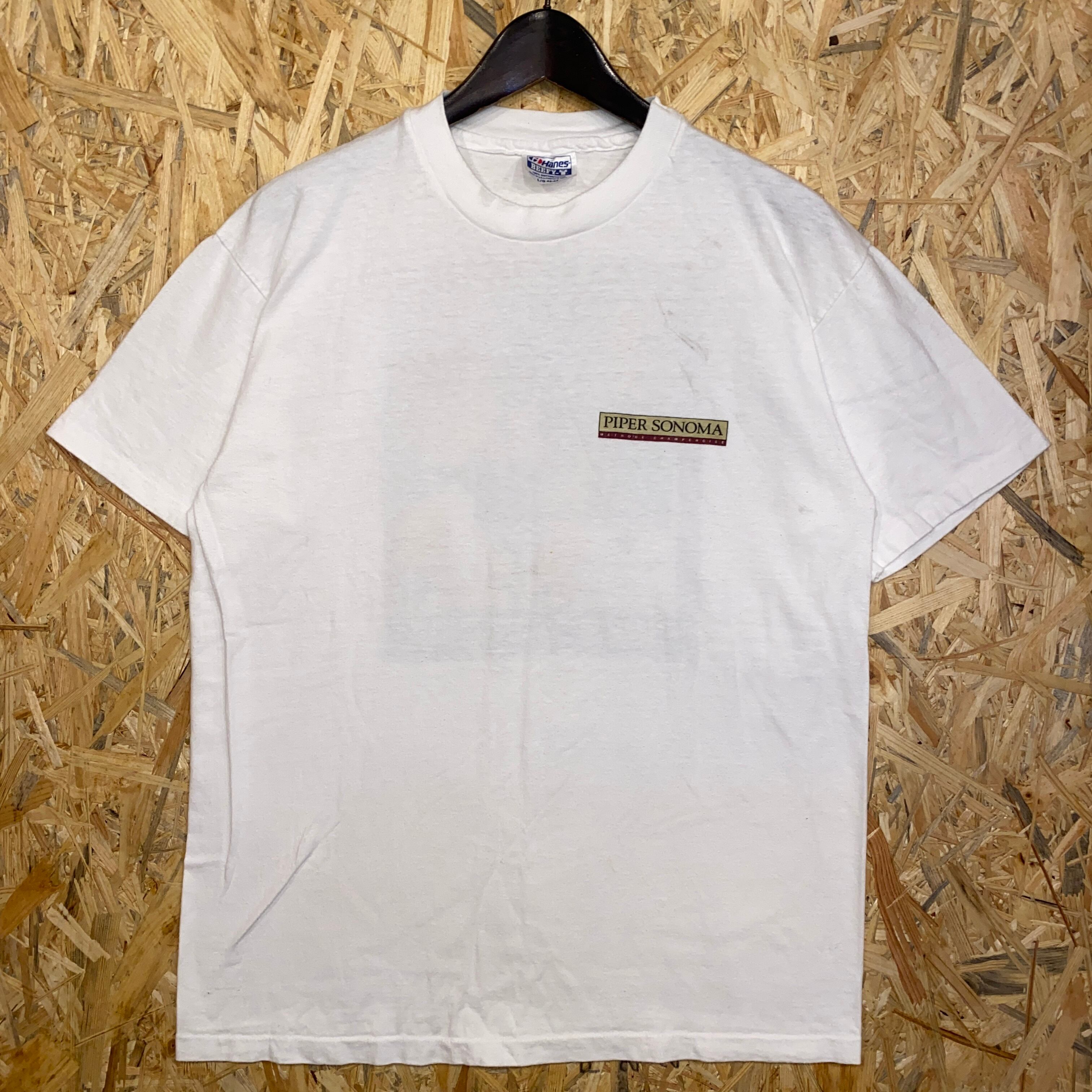 2179 90s 90年代 USA製 PIPER SONOMA プリント Tシャツ ワイン アート パイパー ソノマ アメリカ ホワイト 白 シングルステッチ 古着 メンズ vintage