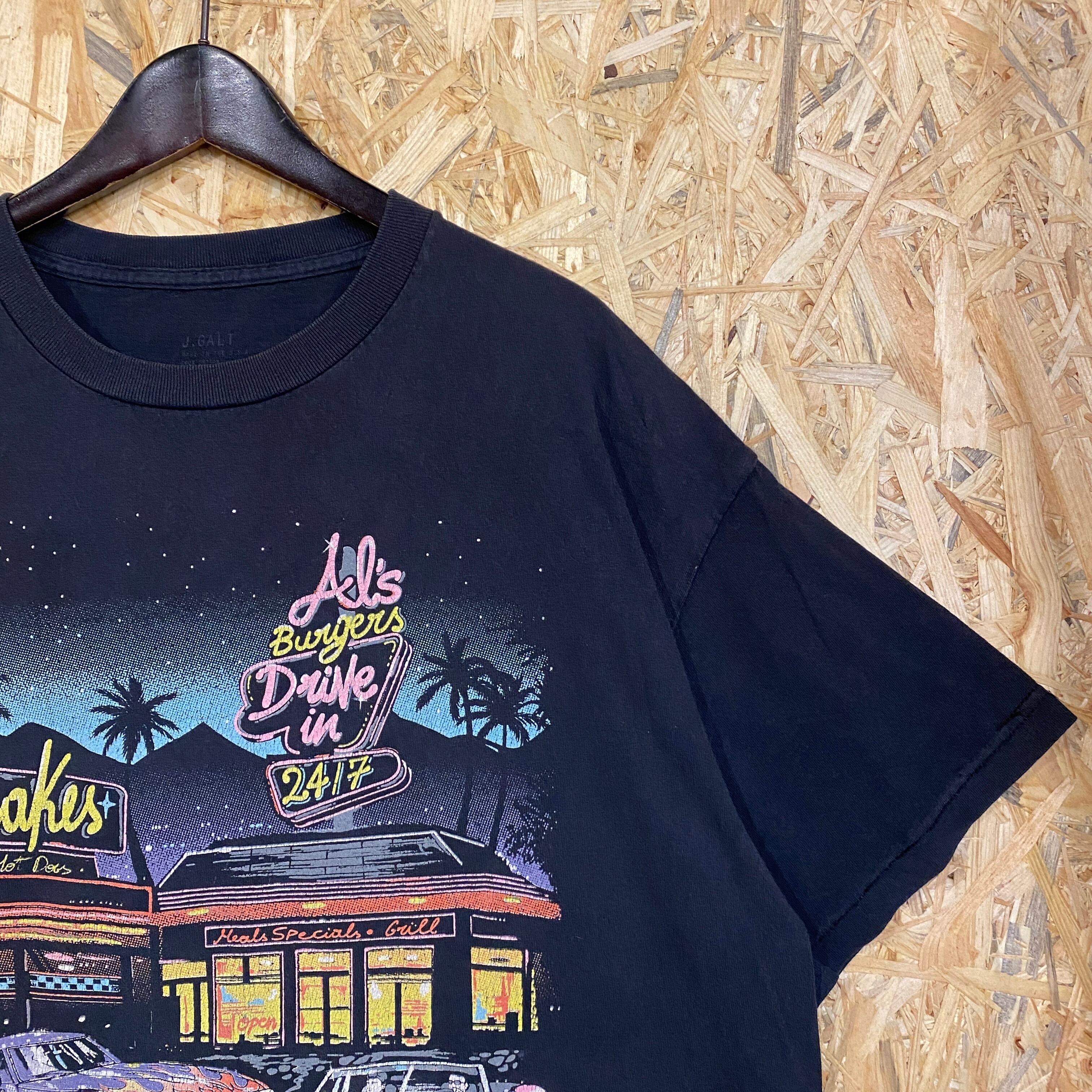 2180 80s 80年代 USA製 j.galt クラシックカー プリント Tシャツ 車 ネオン レトロ ブラック 黒 グラフィック イラスト 古着 メンズ vintage