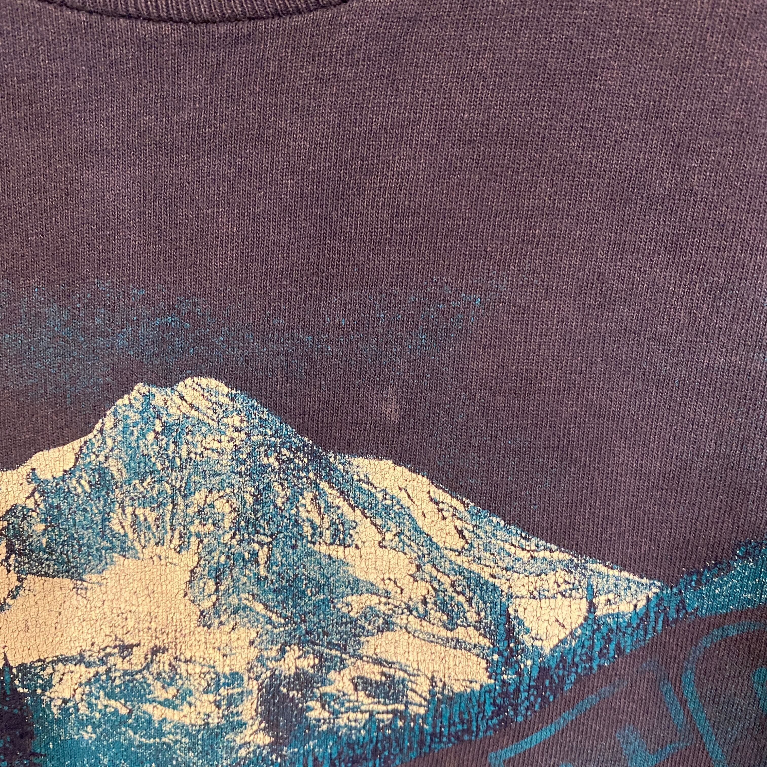 2184 90s 90年代 USA製 グラフィック Tシャツ ワシントン 風景 山 シングルステッチ ネイビー 紺 フルーツオブザルーム 古着 メンズ vintage