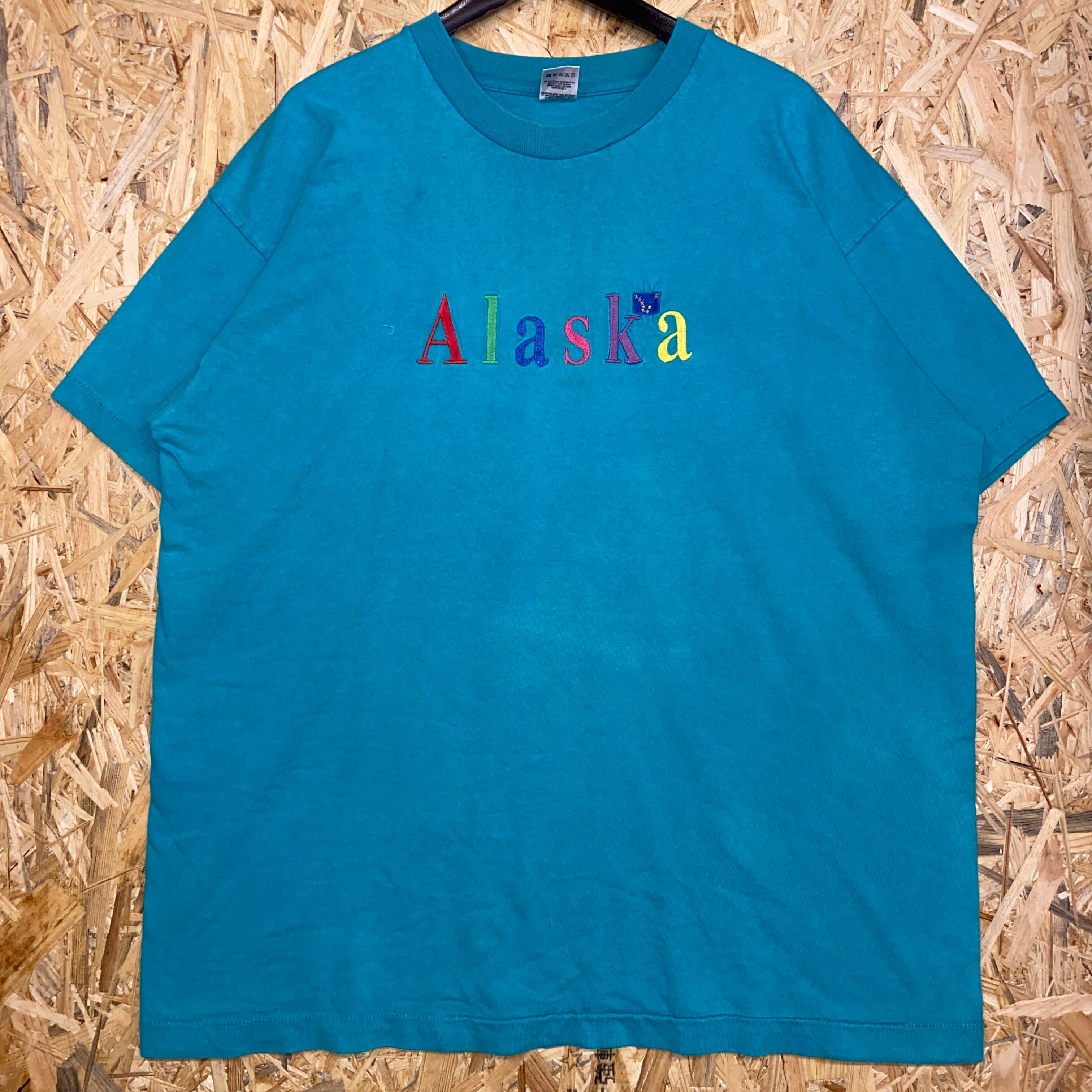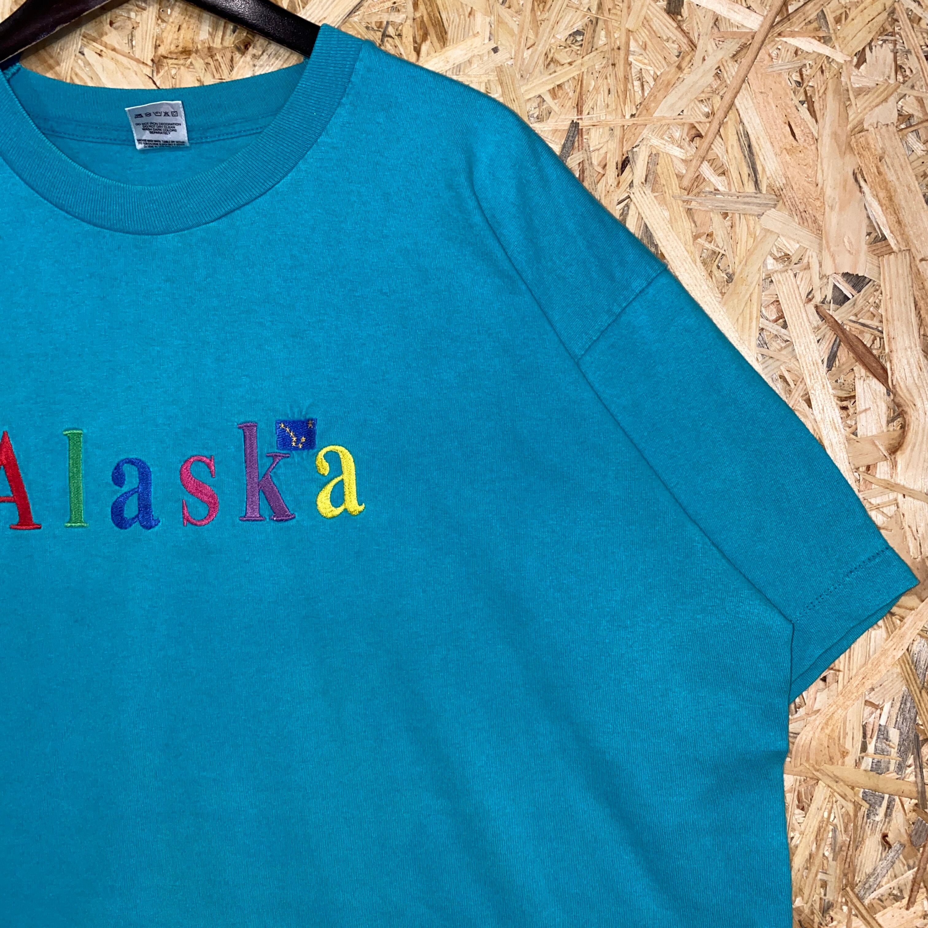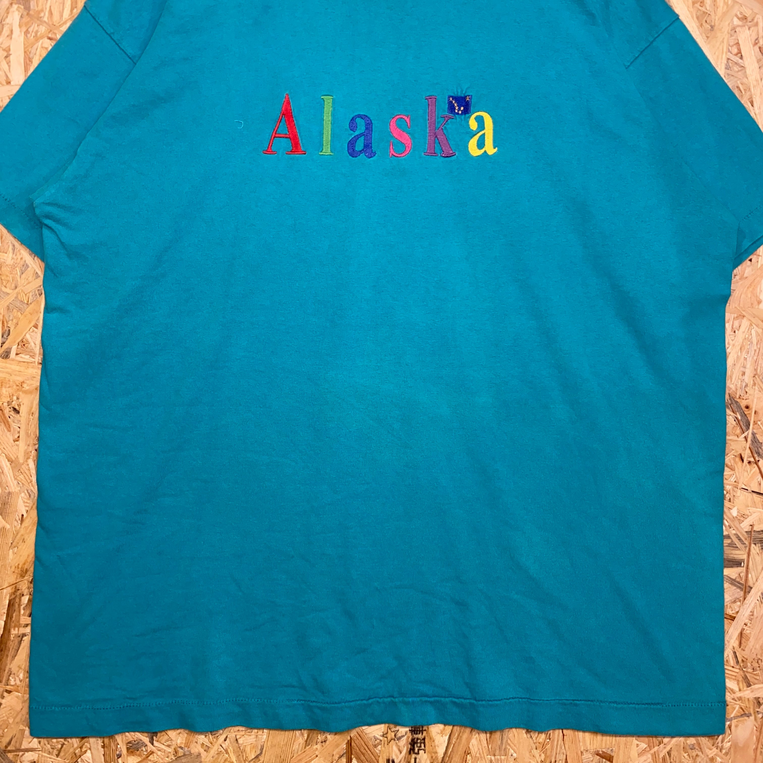 2207 90s 90年代 USA製 Alaska 刺繍 Tシャツ ターコイズブルー シングルステッチ フルーツオブザルーム アラスカ 古着 メンズ vintage