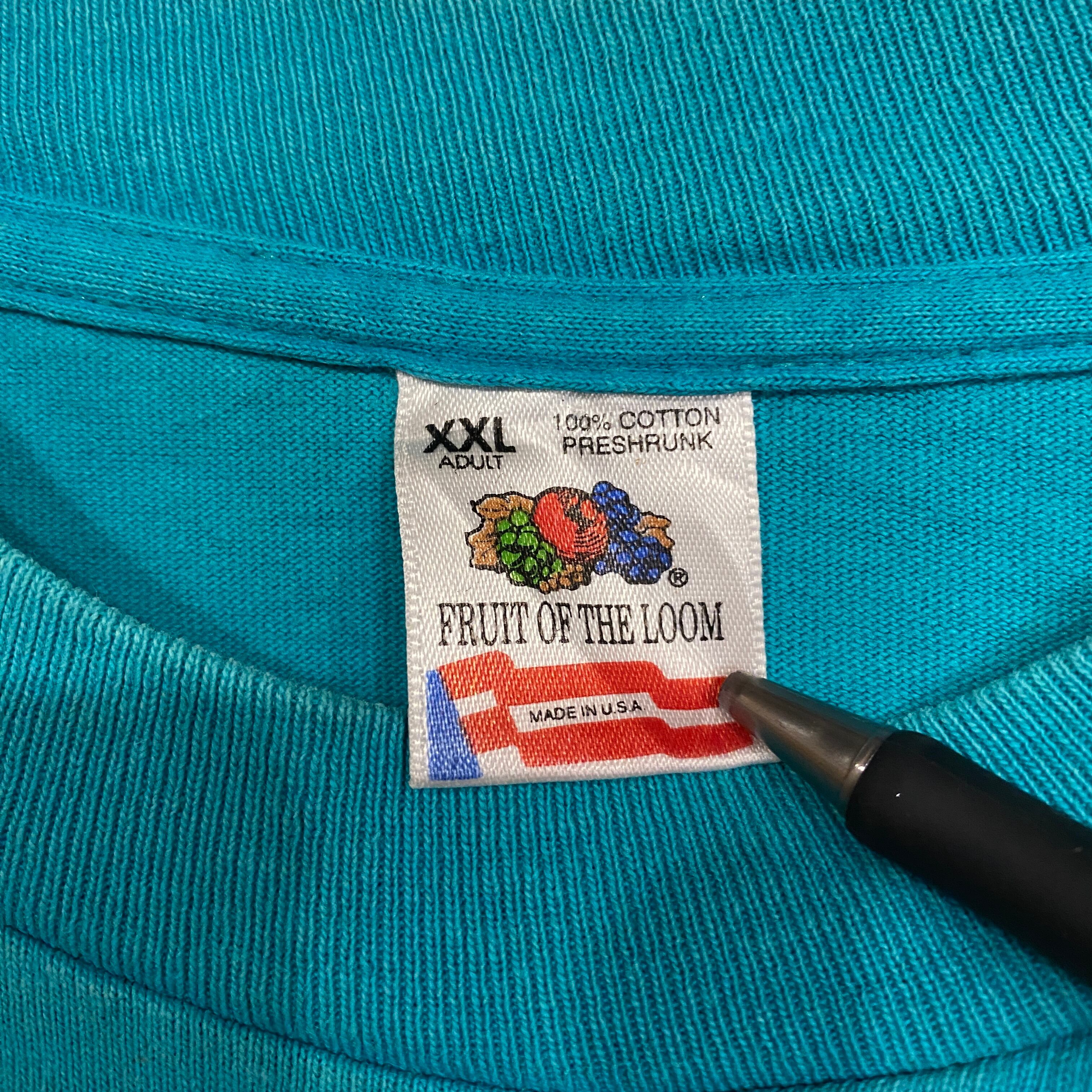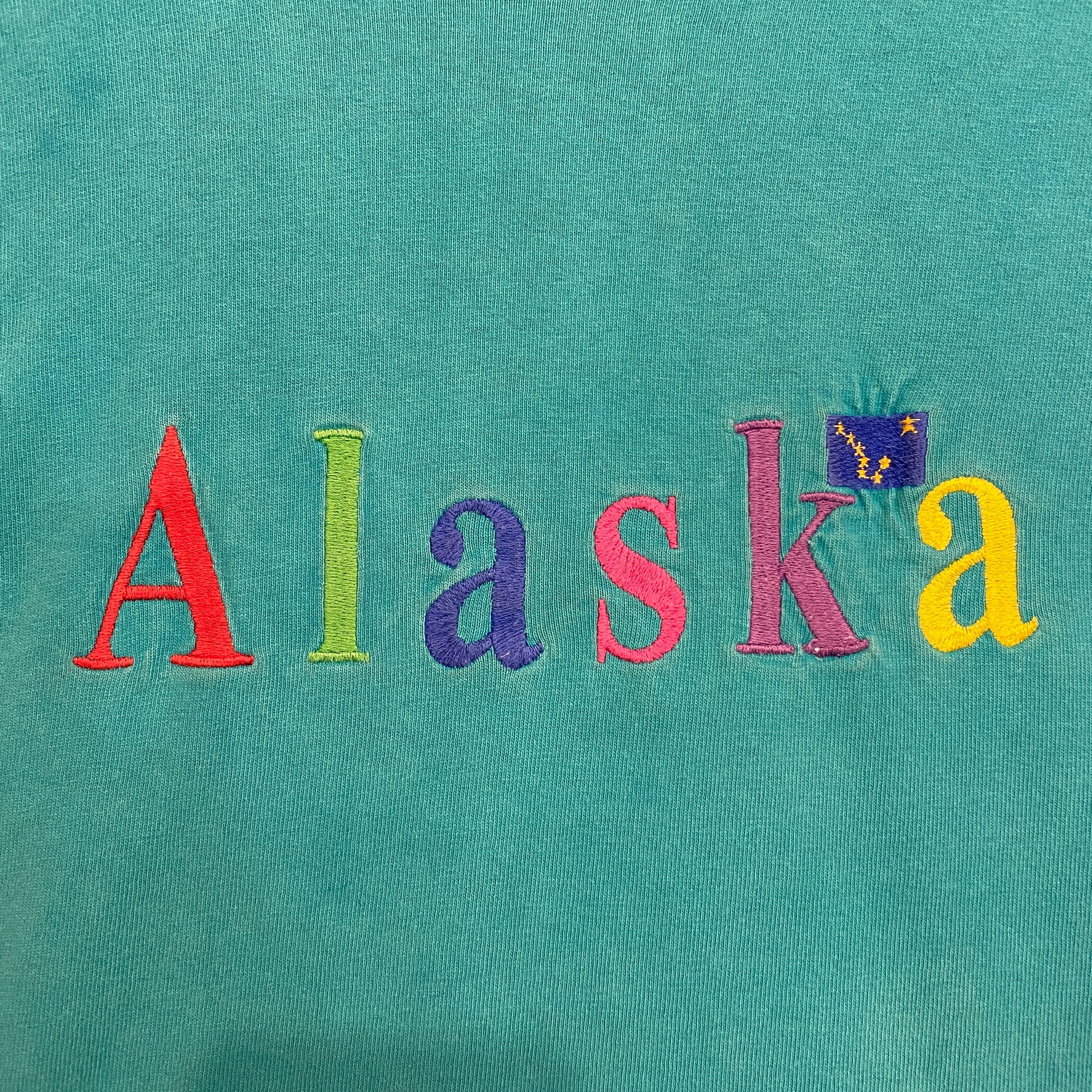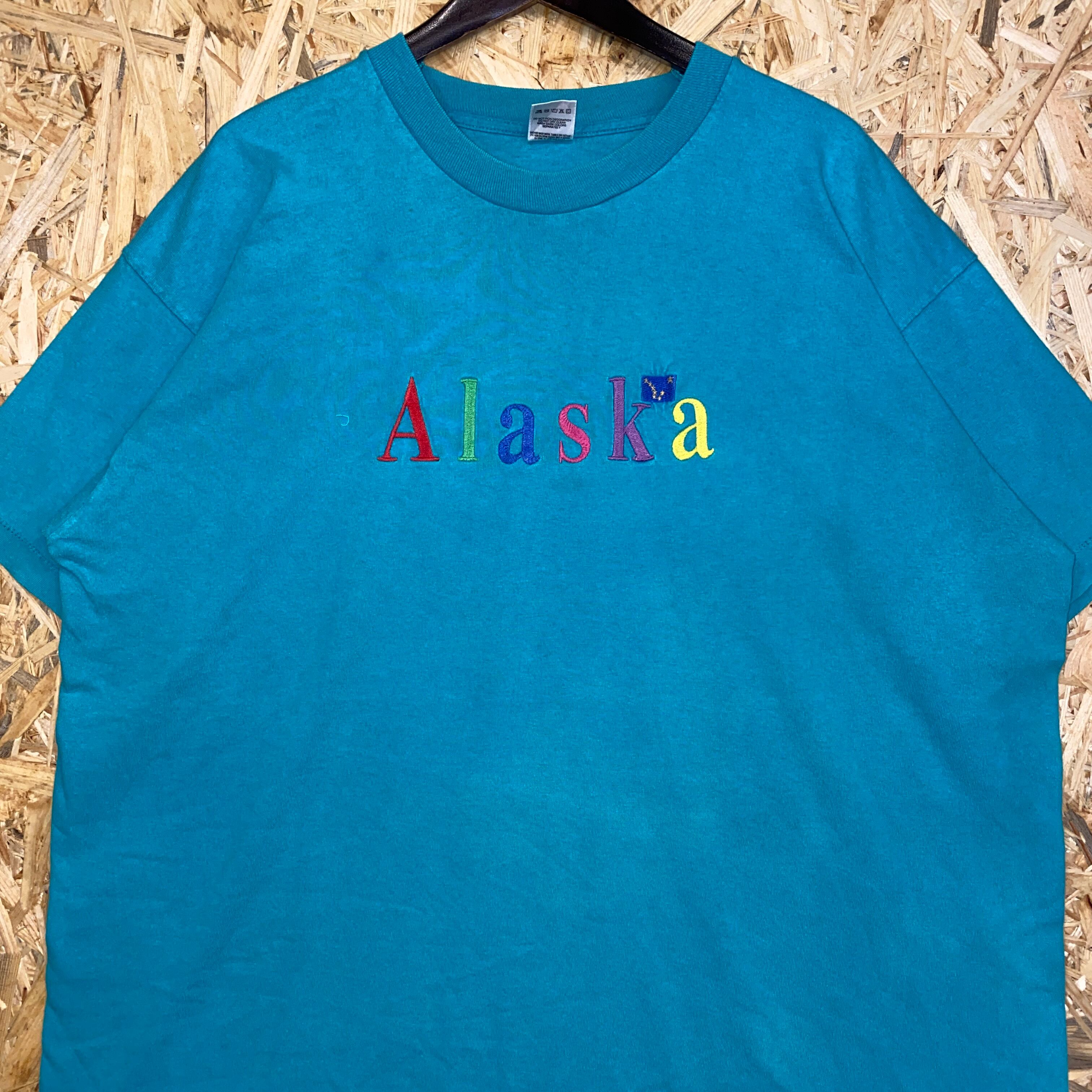 2207 90s 90年代 USA製 Alaska 刺繍 Tシャツ ターコイズブルー シングルステッチ フルーツオブザルーム アラスカ 古着 メンズ vintage