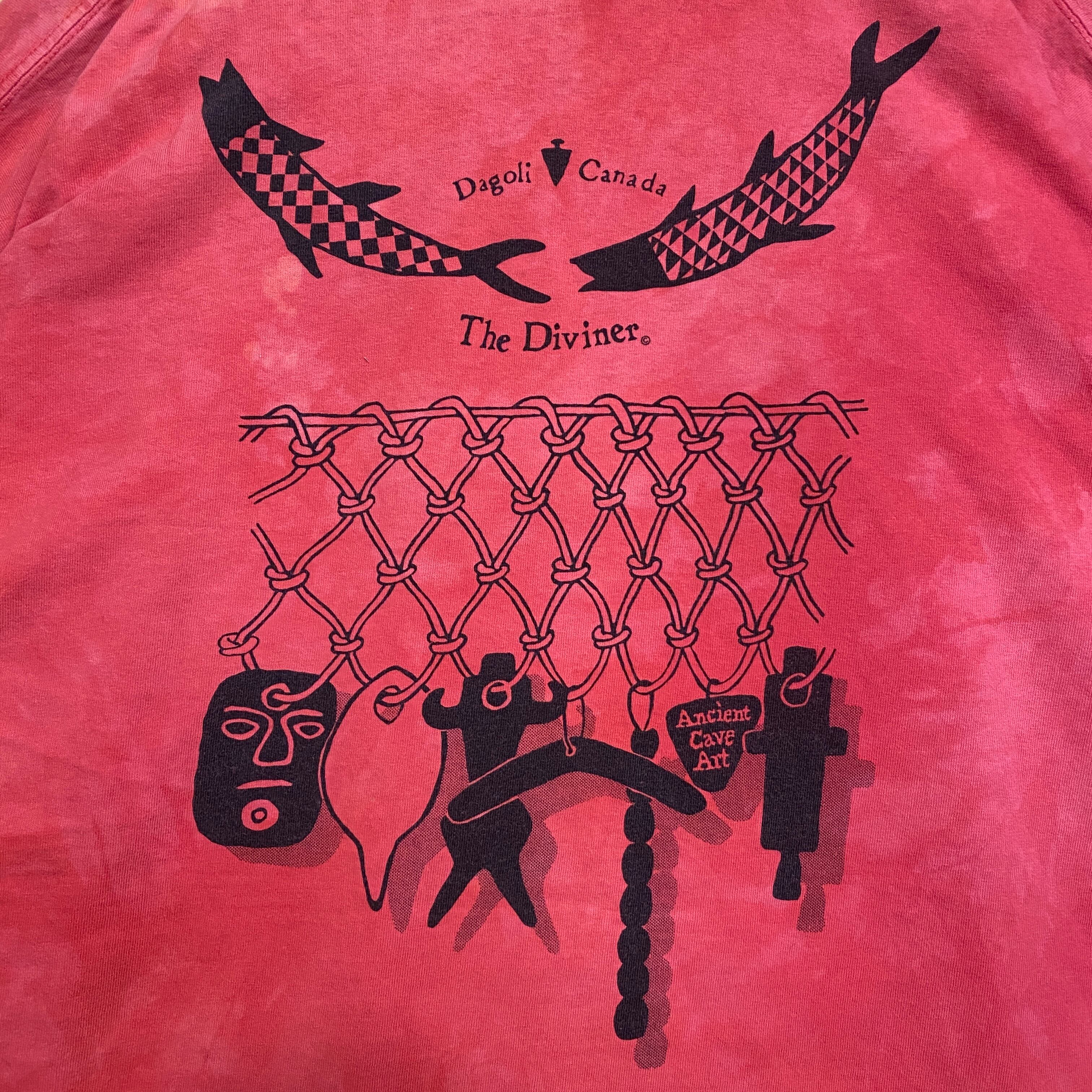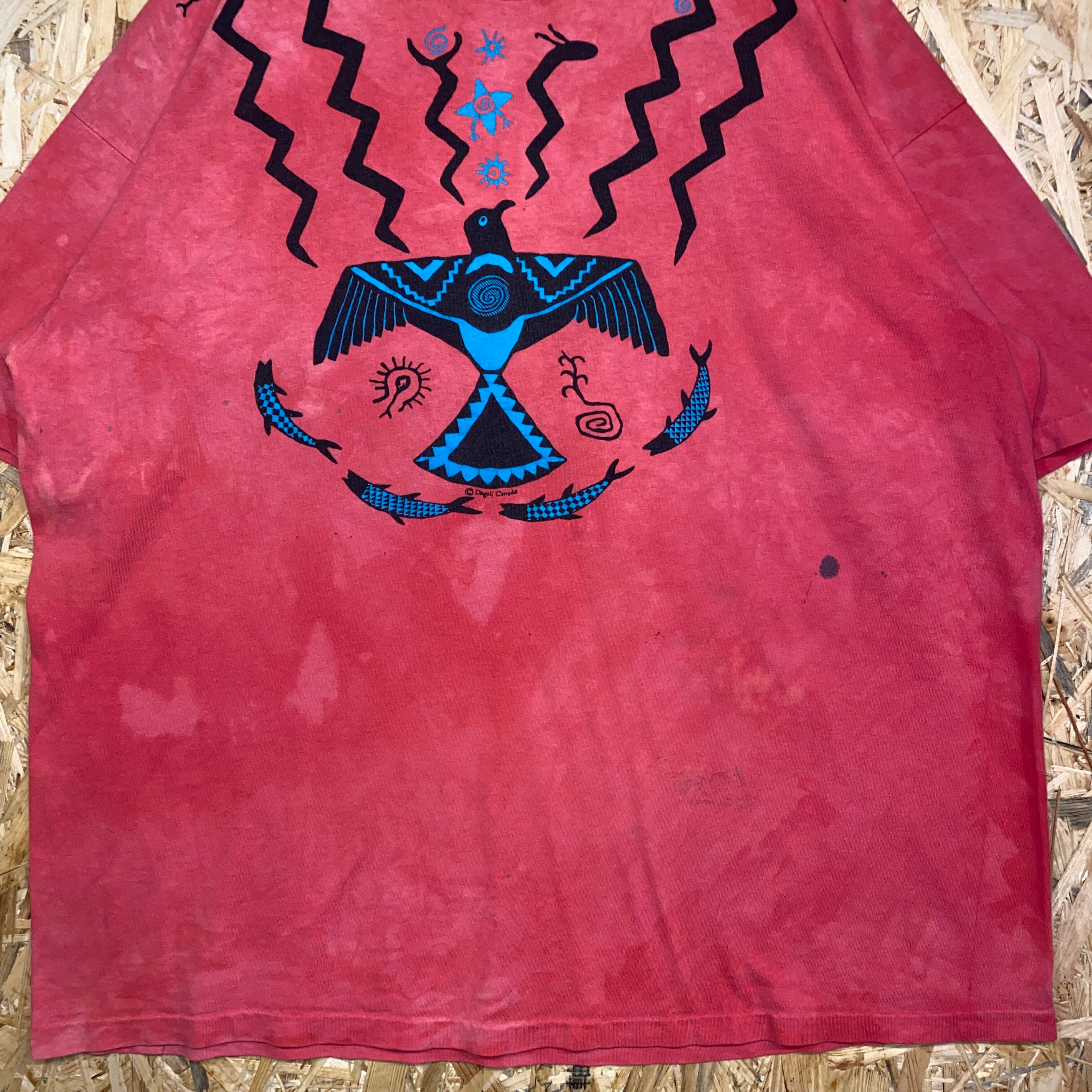 2213 90s〜 90年代〜 dagoli ネイティブ タイダイ Tシャツ Ancient Cave Art アート グラフィック ピンク シングルステッチ 古着 メンズ vintage