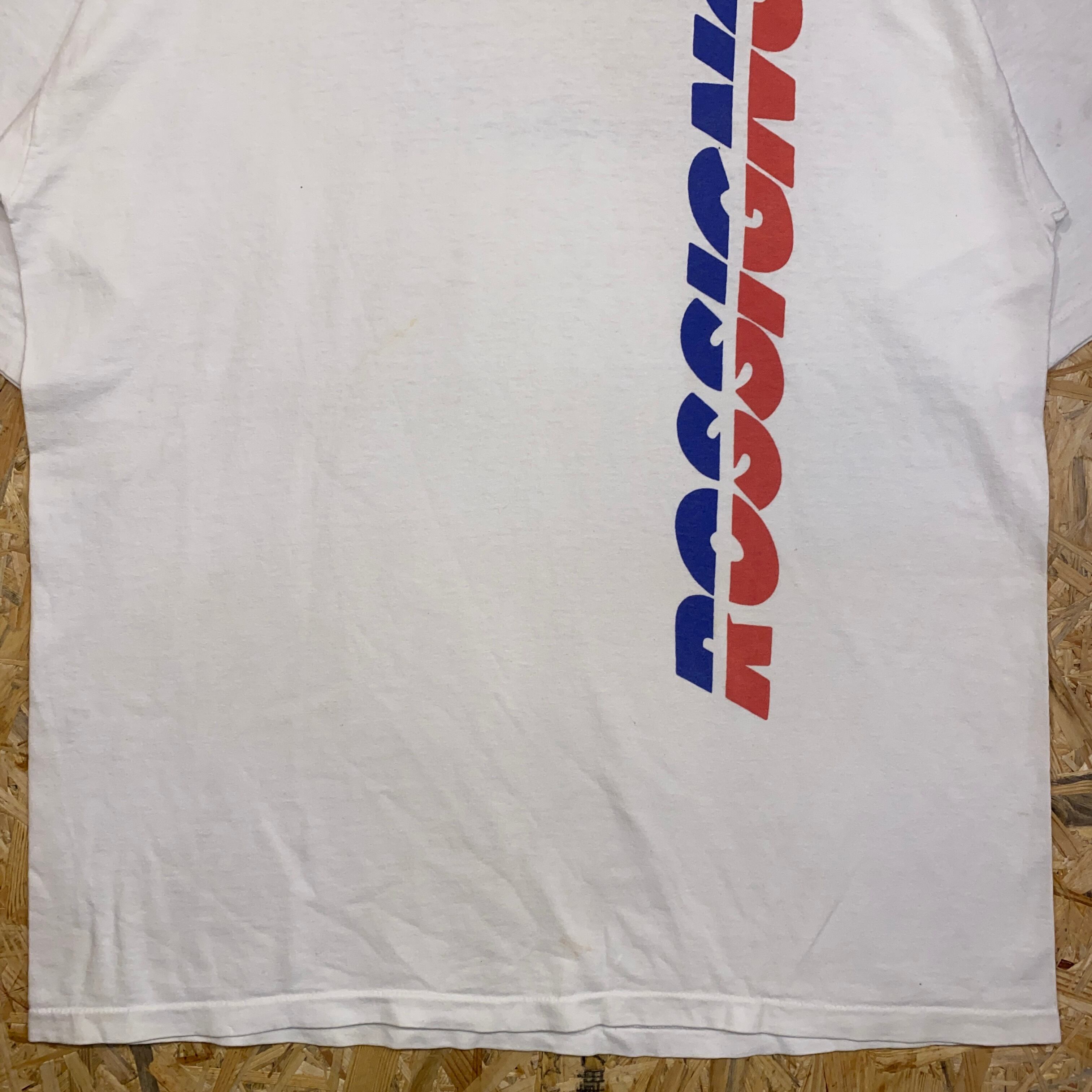 2216 USA製 ROSSIGNOL スキー プリント Tシャツ フランス ロゴ ロシニョール シングルステッチ ホワイト 白 古着 メンズ vintage