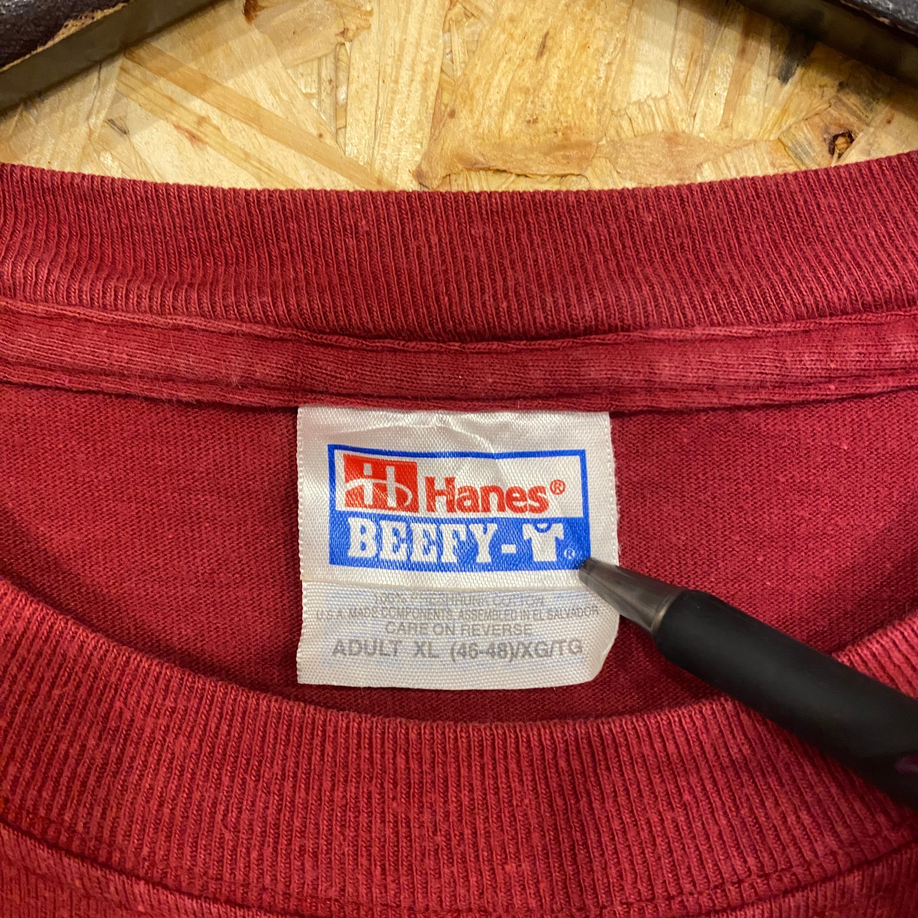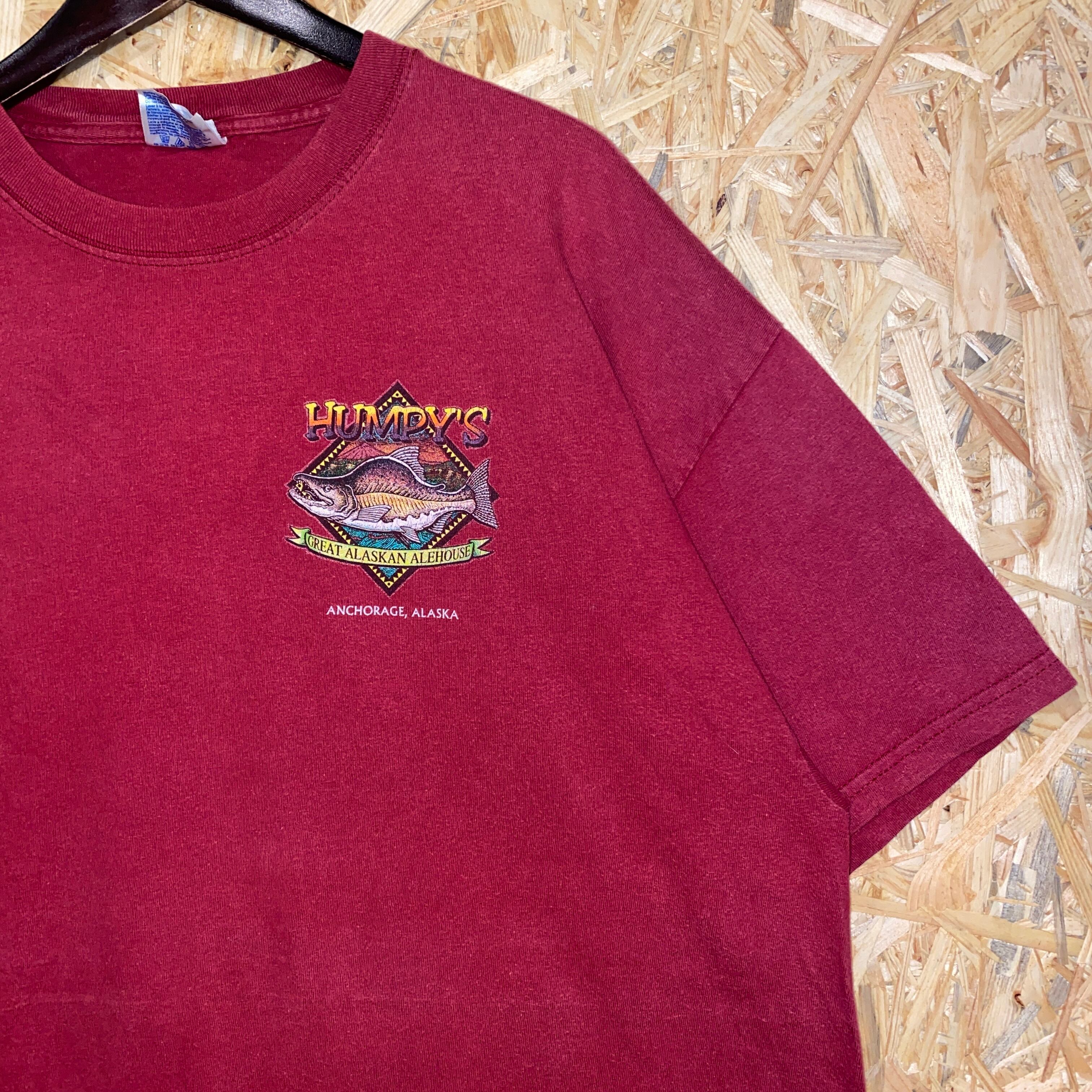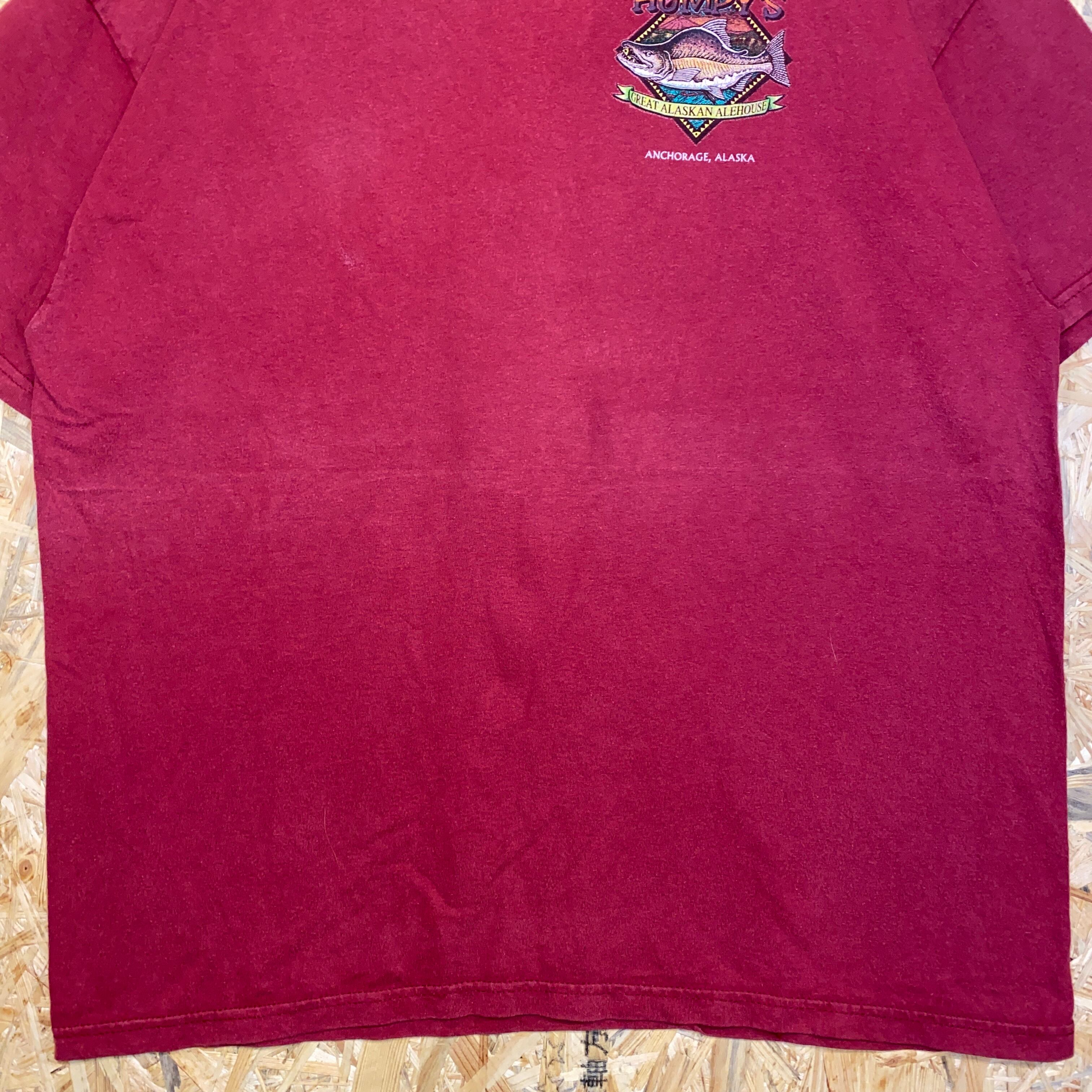 2217 90s 90年代 アラスカ 魚 フィッシュ イラスト Tシャツ レストラン HUMPY'S 赤 レッド Hanes グラフィック 古着 メンズ vintage