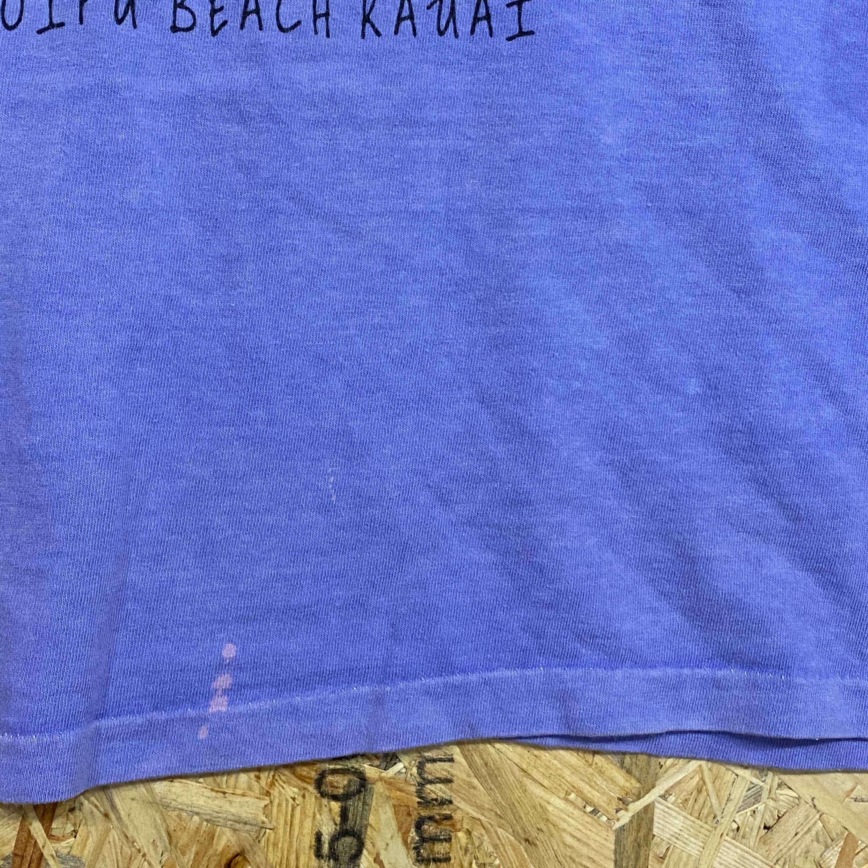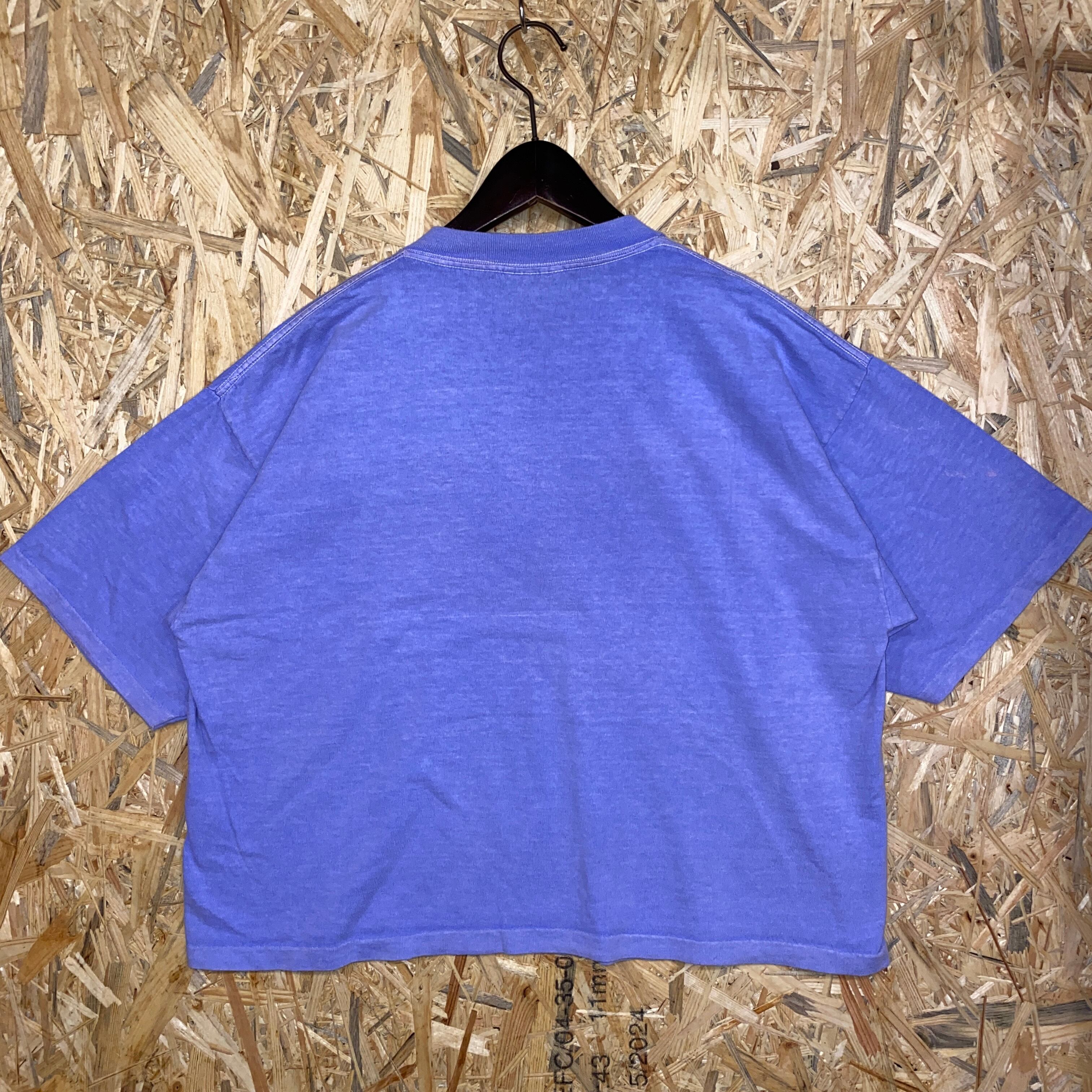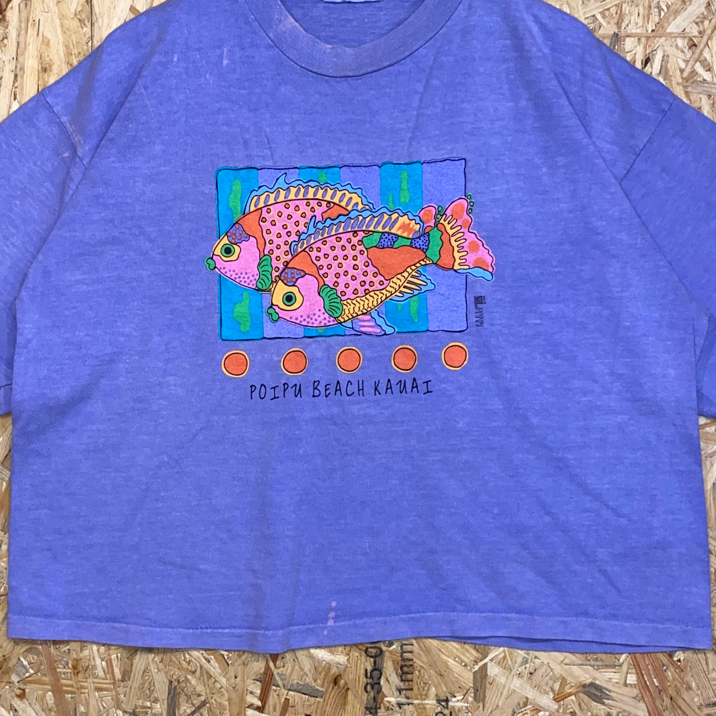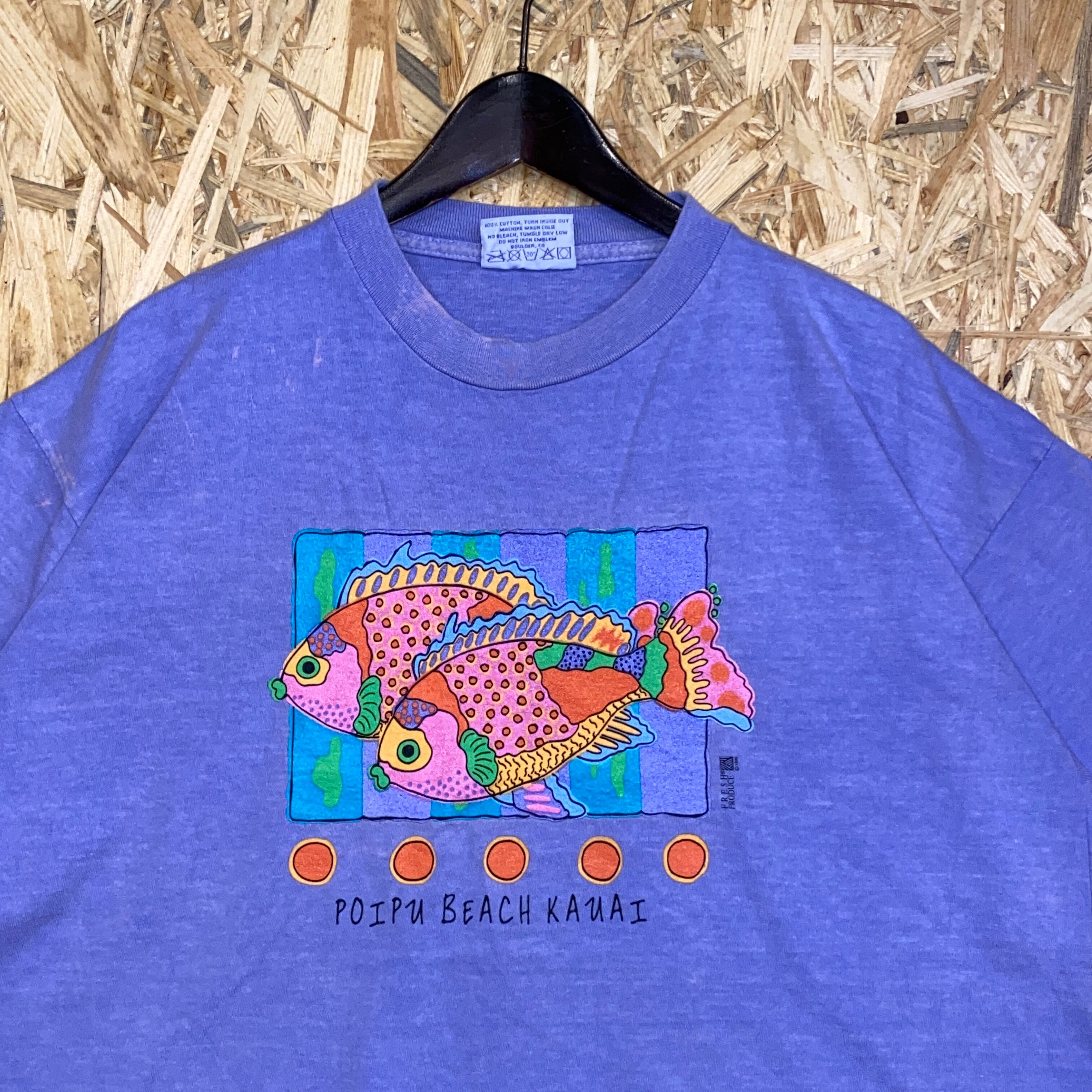 2222 1995s USA製 FRESH PRODUCE プリント Tシャツ 魚 フィッシュ グラフィック ネオン カラフル シングルステッチ パープル 紫 短丈 古着 メンズ vintage 90s 90年代
