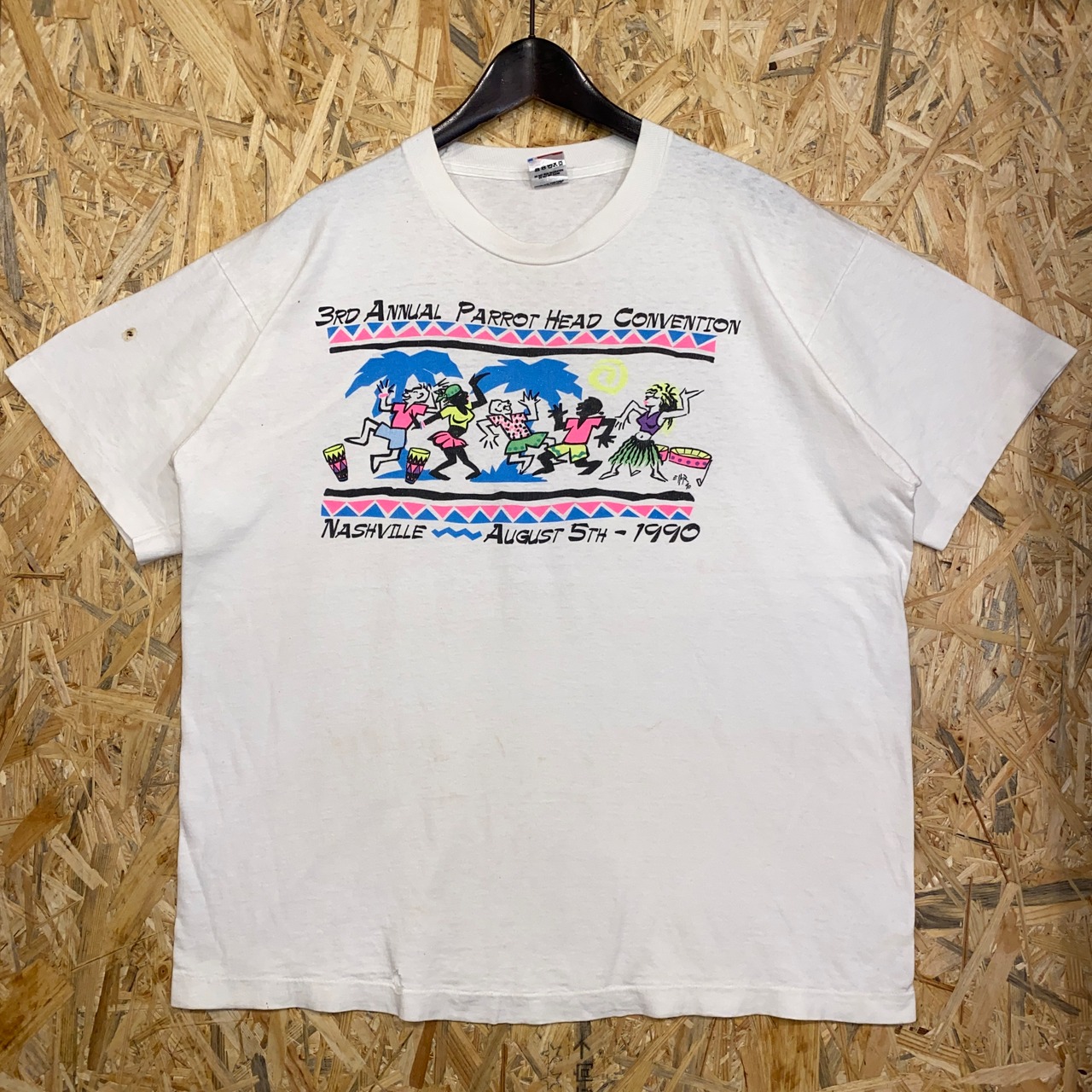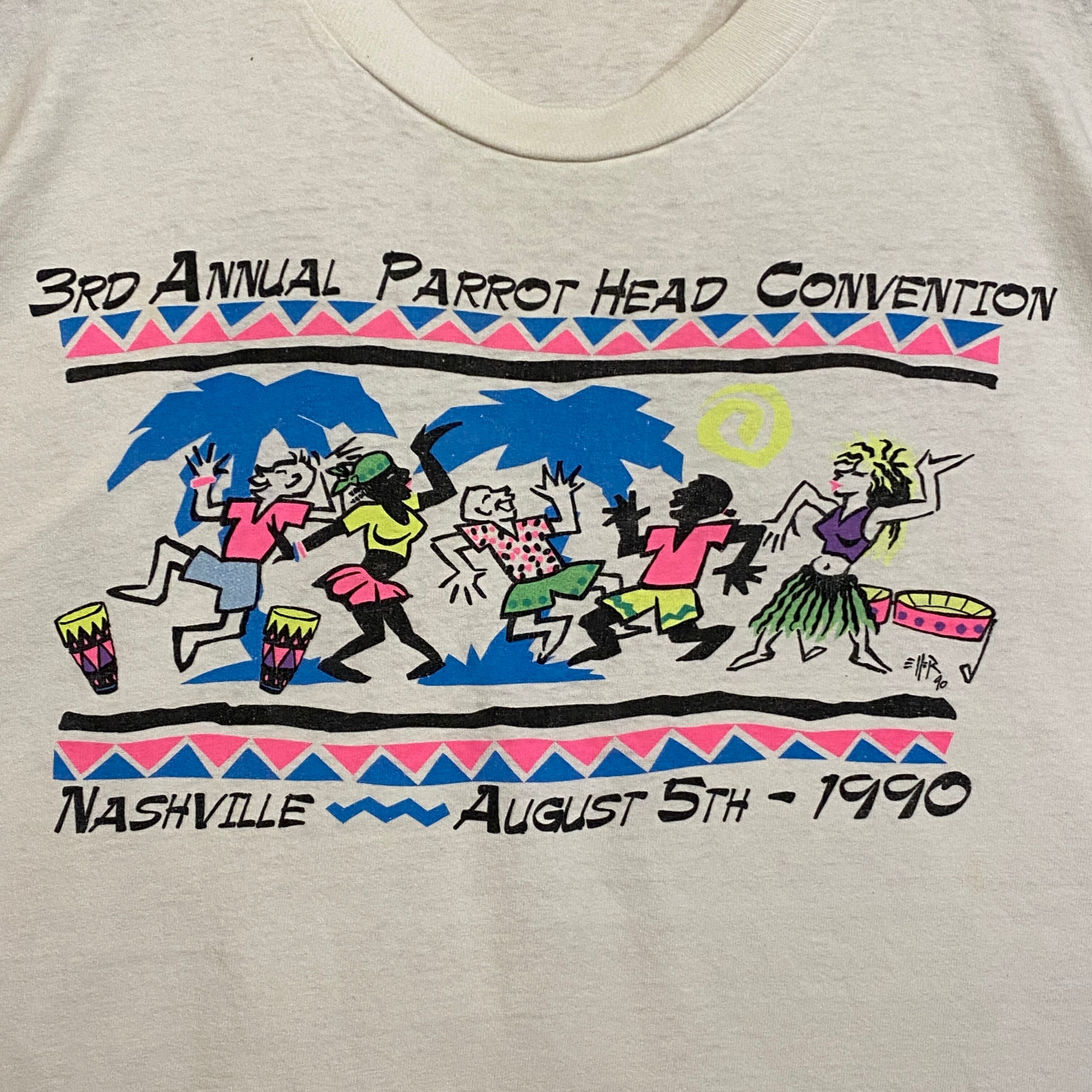 2223 90s 90年代 USA製 両面 プリント Tシャツ ナッシュビル パロット ヘッド レトロ 帆船 イラスト グラフィック シングルステッチ ホワイト 白 古着 メンズ vintage