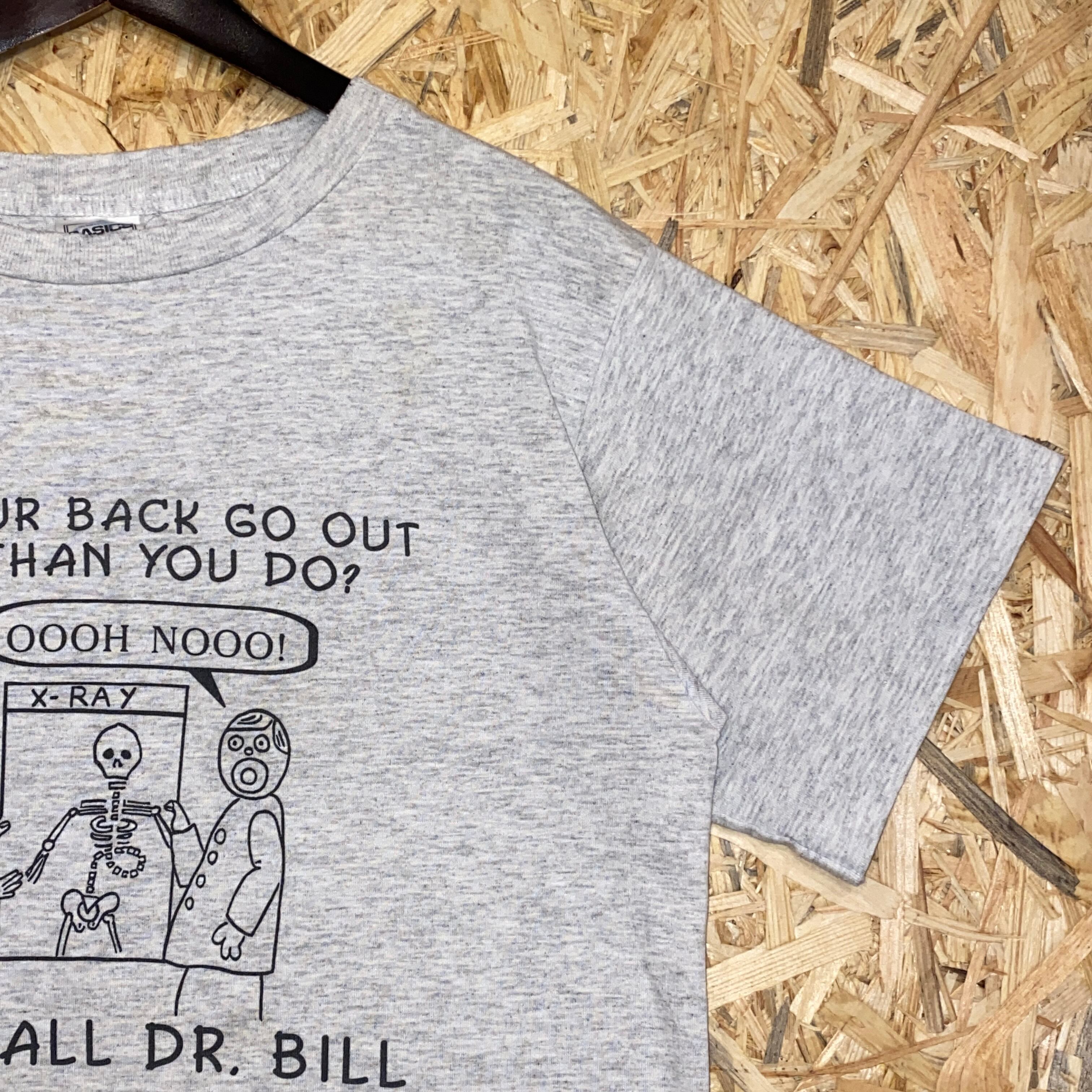 2227 90s 90年代 BASICS ユーモア Tシャツ イラスト 医者 ガイコツ スカル シングルステッチ グレー 両面 プリント 古着 メンズ vintage