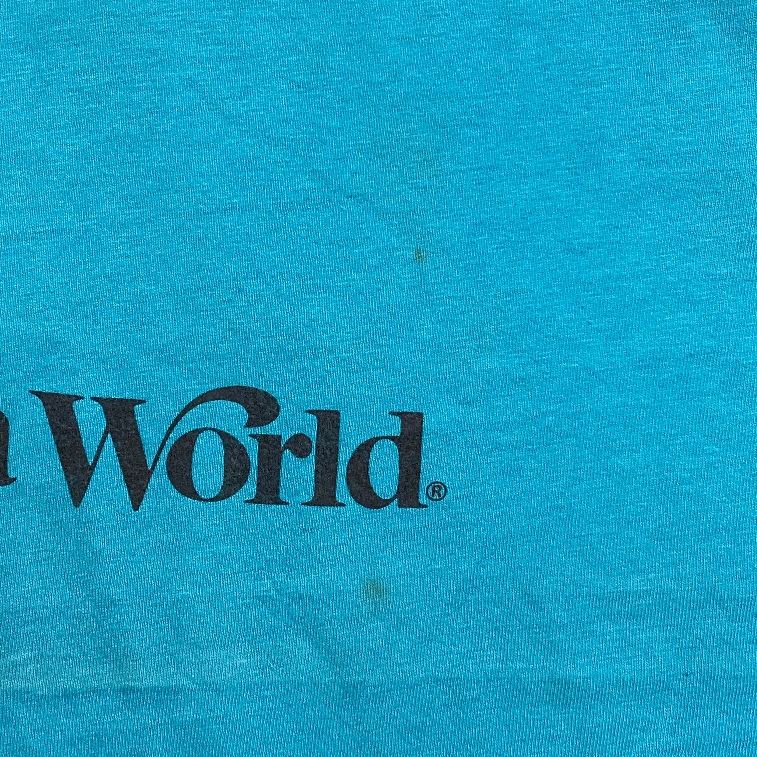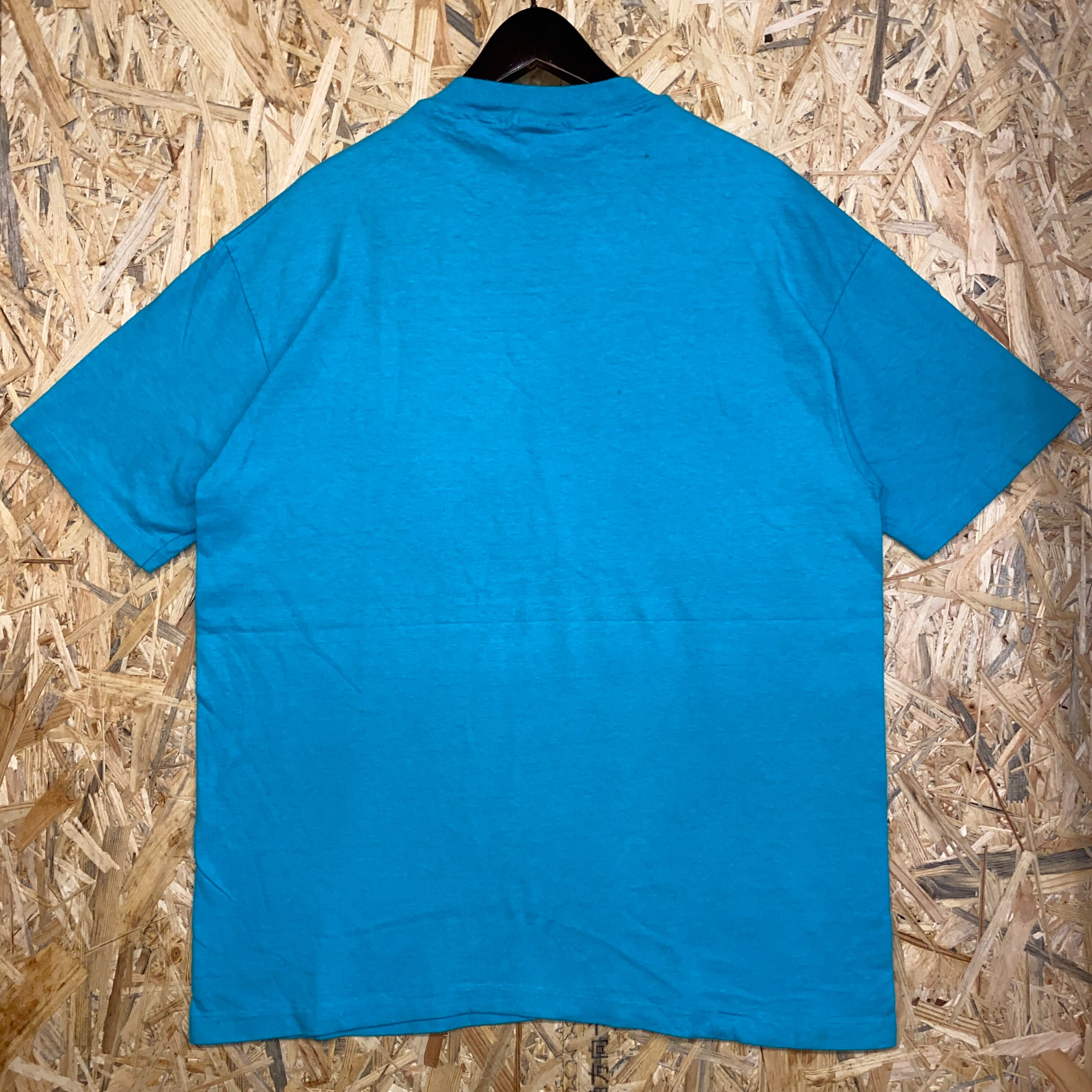2229 90s 90年代 USA製 Hanes シャチ アニマル プリント Tシャツ シーワールド ターコイズブルー シングルステッチ 古着 メンズ vintage