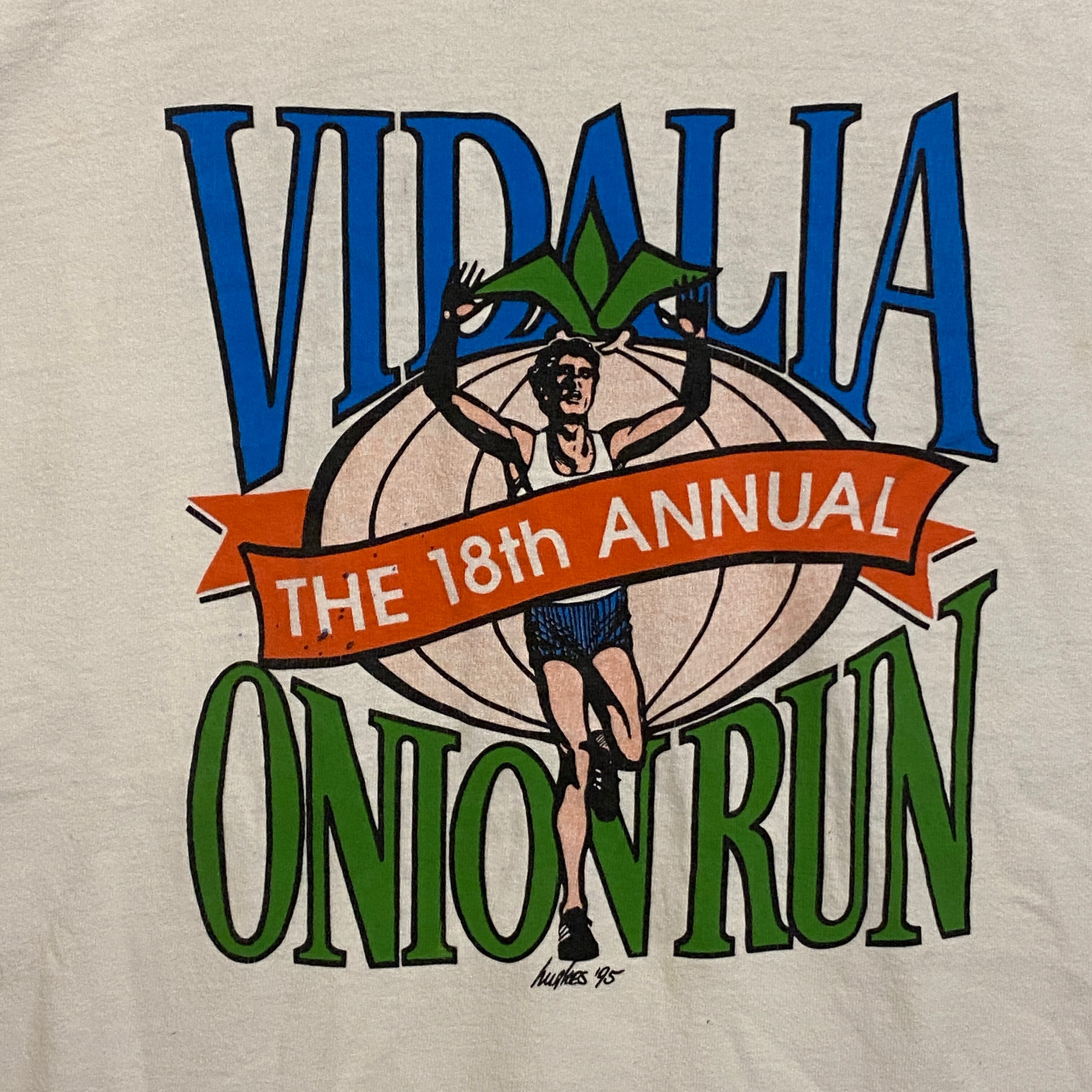 2230 90s 90年代 USA製 両面 プリント Tシャツ ランニング イラスト オニオンラン 企業 スポンサー ホワイト 白 シングルステッチ 古着 メンズ vintage
