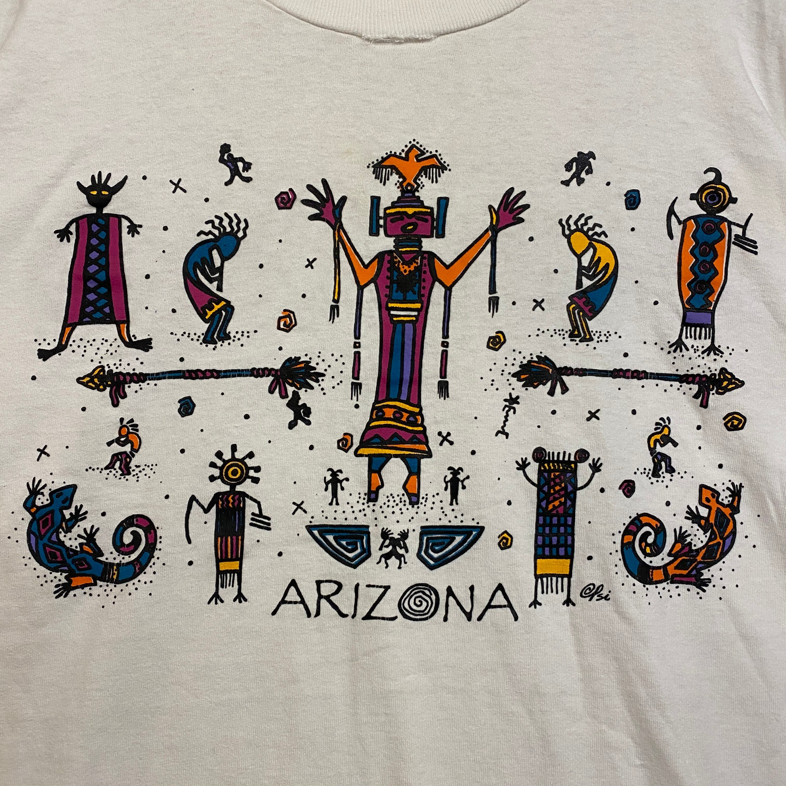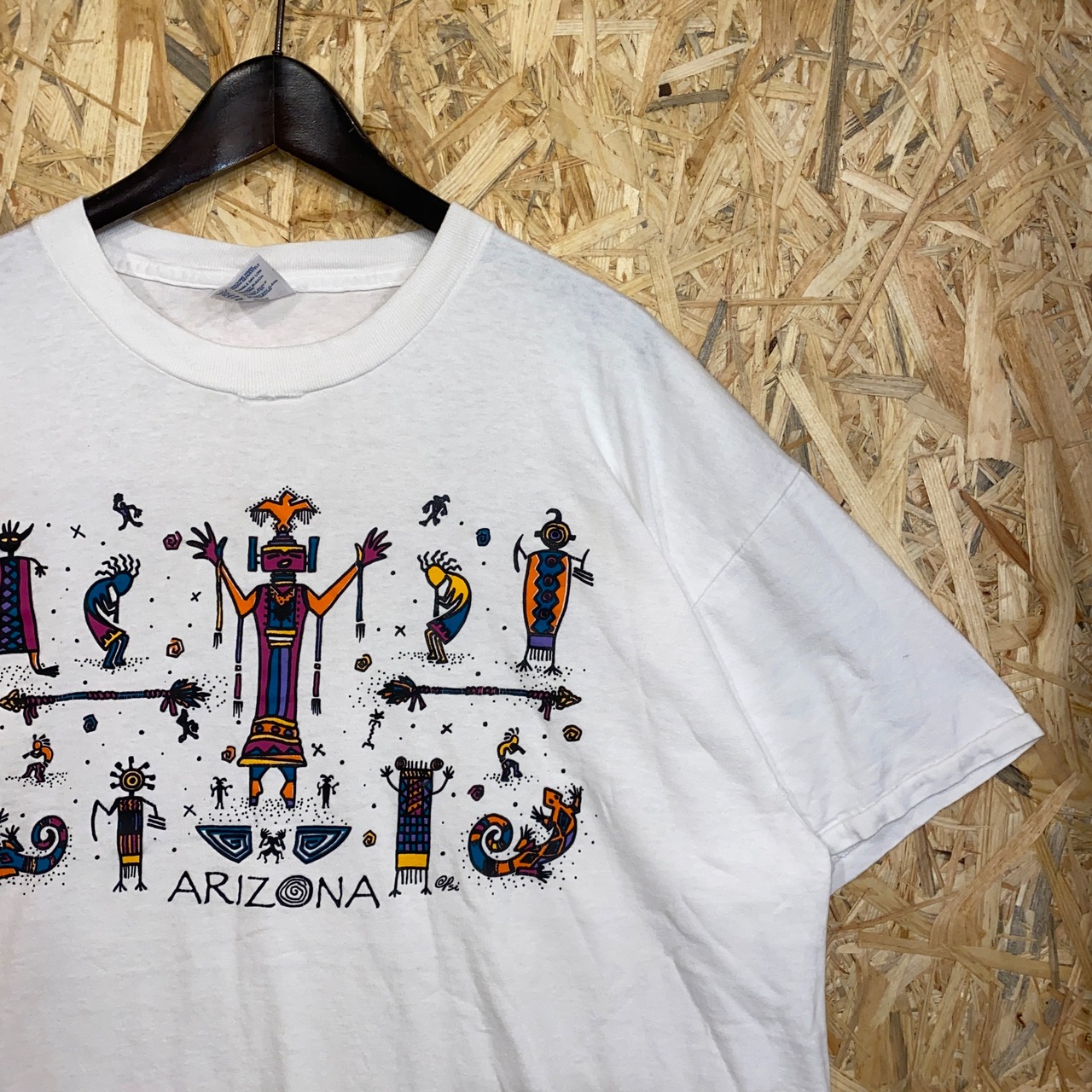 2243 90s 90年代 USA製 DELTA ネイティブ アメリカン 先住民 神話 シングルステッチ ホワイト 白 アリゾナ 古着 メンズ vintage