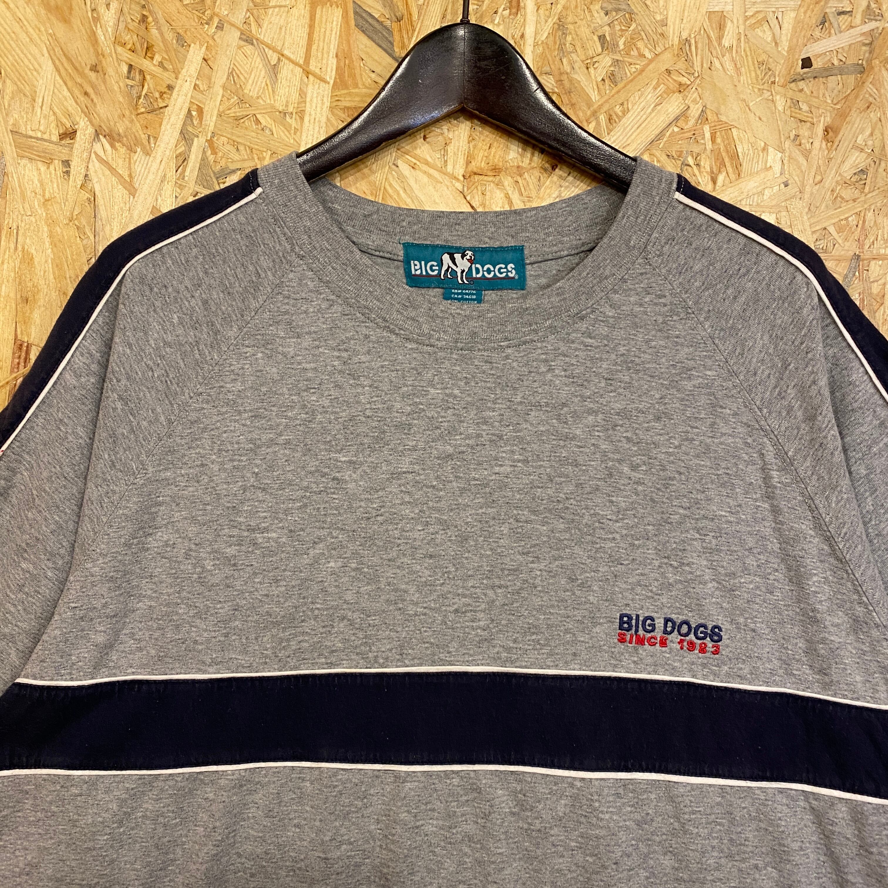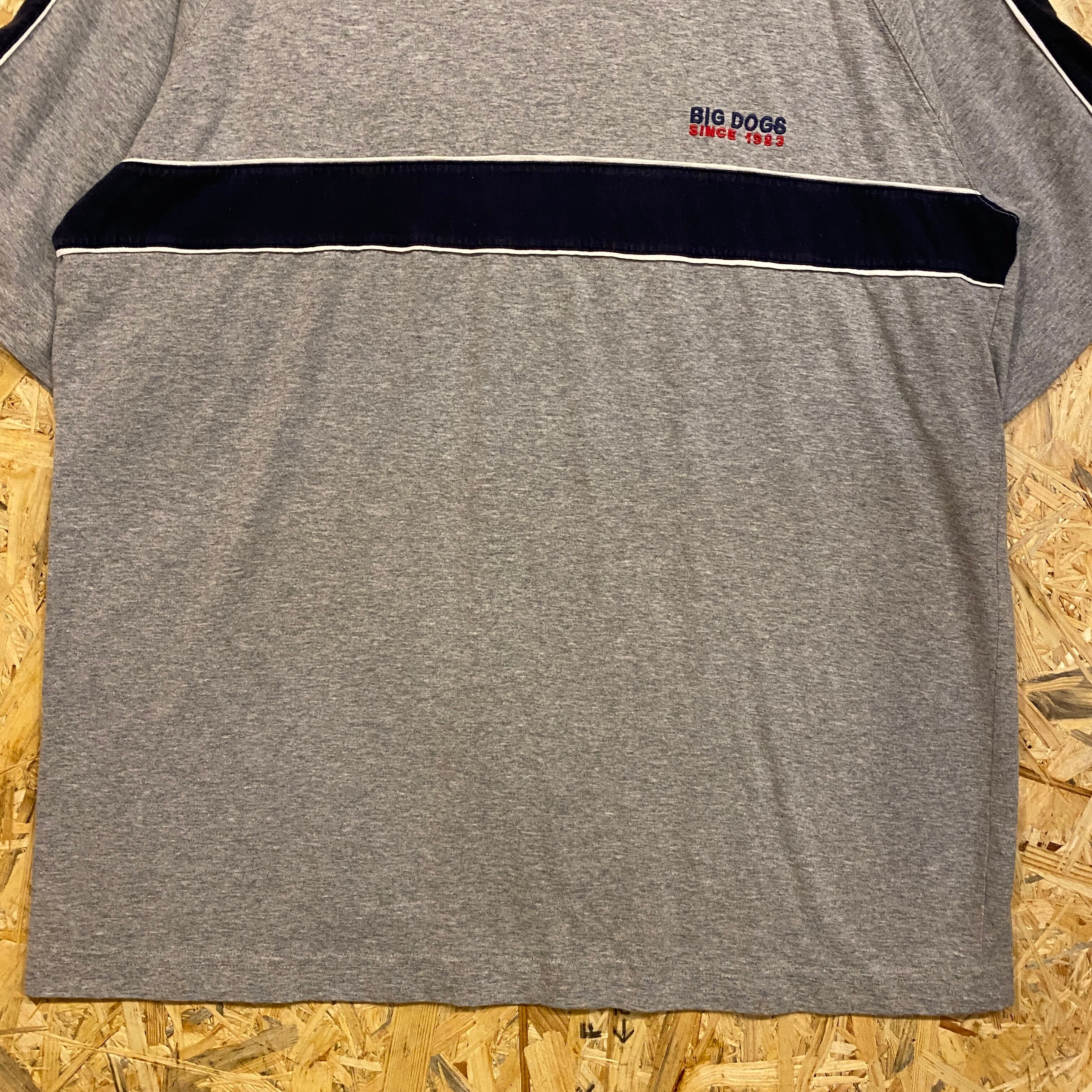 2245 90s 90年代 BIGDOGS ワンポイント ロゴ ビッグドッグ グレー ライン 犬 古着 メンズ vintage