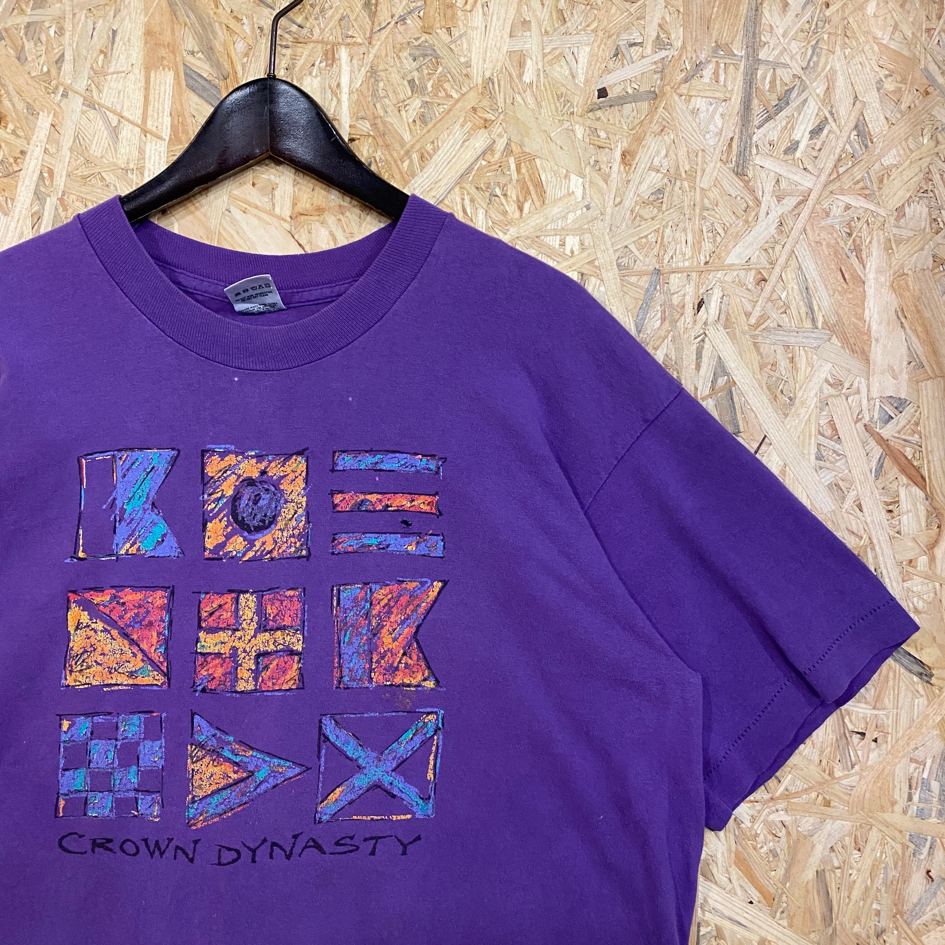 2248 90s 90年代 USA製 グラフィック アート Tシャツ CROWN DYNASTY シングルステッチ 紫 パープル 国旗 古着 メンズ vintage