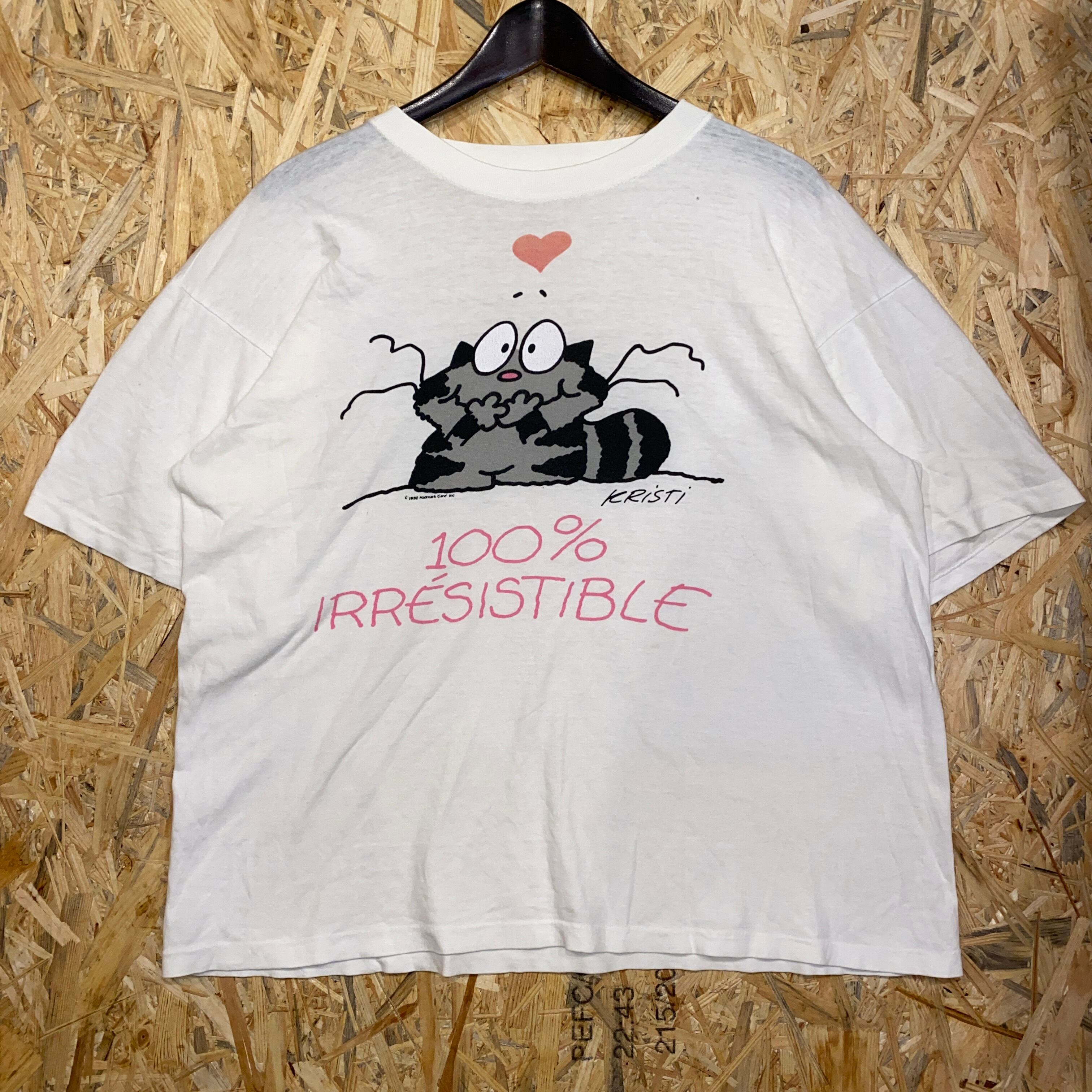 2260 90s〜 90年代〜 クリバンキャット グラフィック プリント Tシャツ 猫 cat ハート シングルステッチ ホワイト 白 古着 メンズ vintage