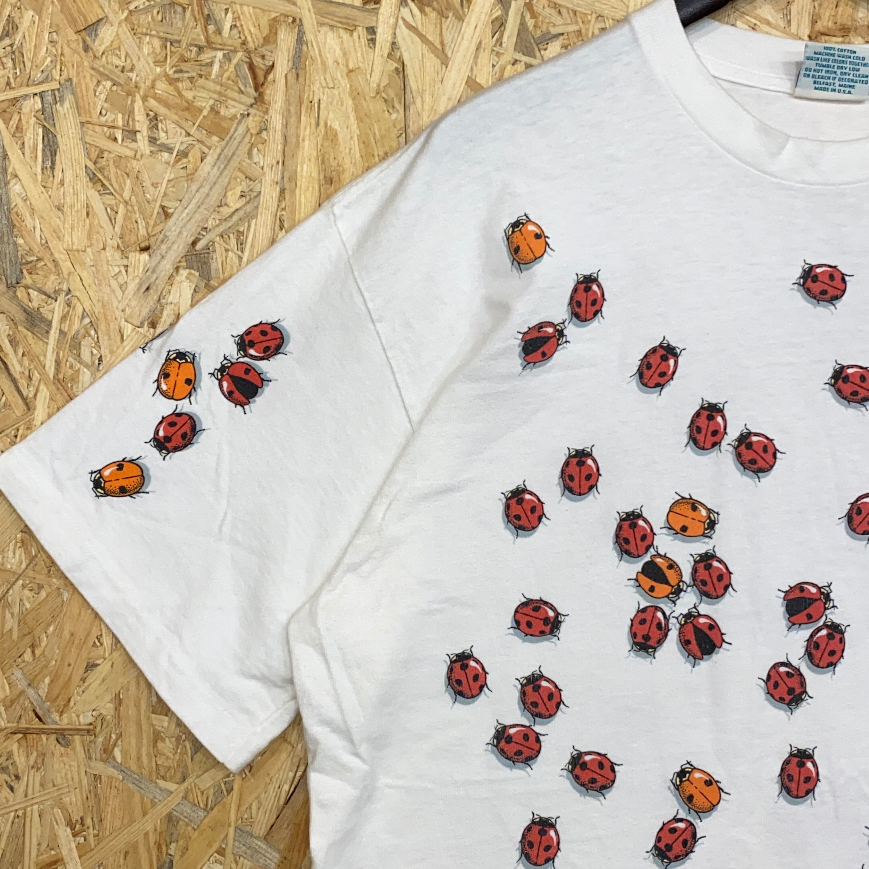 2278 90s 90年代 USA製 てんとう虫 両面 プリント Tシャツ HARBORSIDE GRAPHICS 昆虫 DAN GILBERT ホワイト 白 古着 メンズ vintage