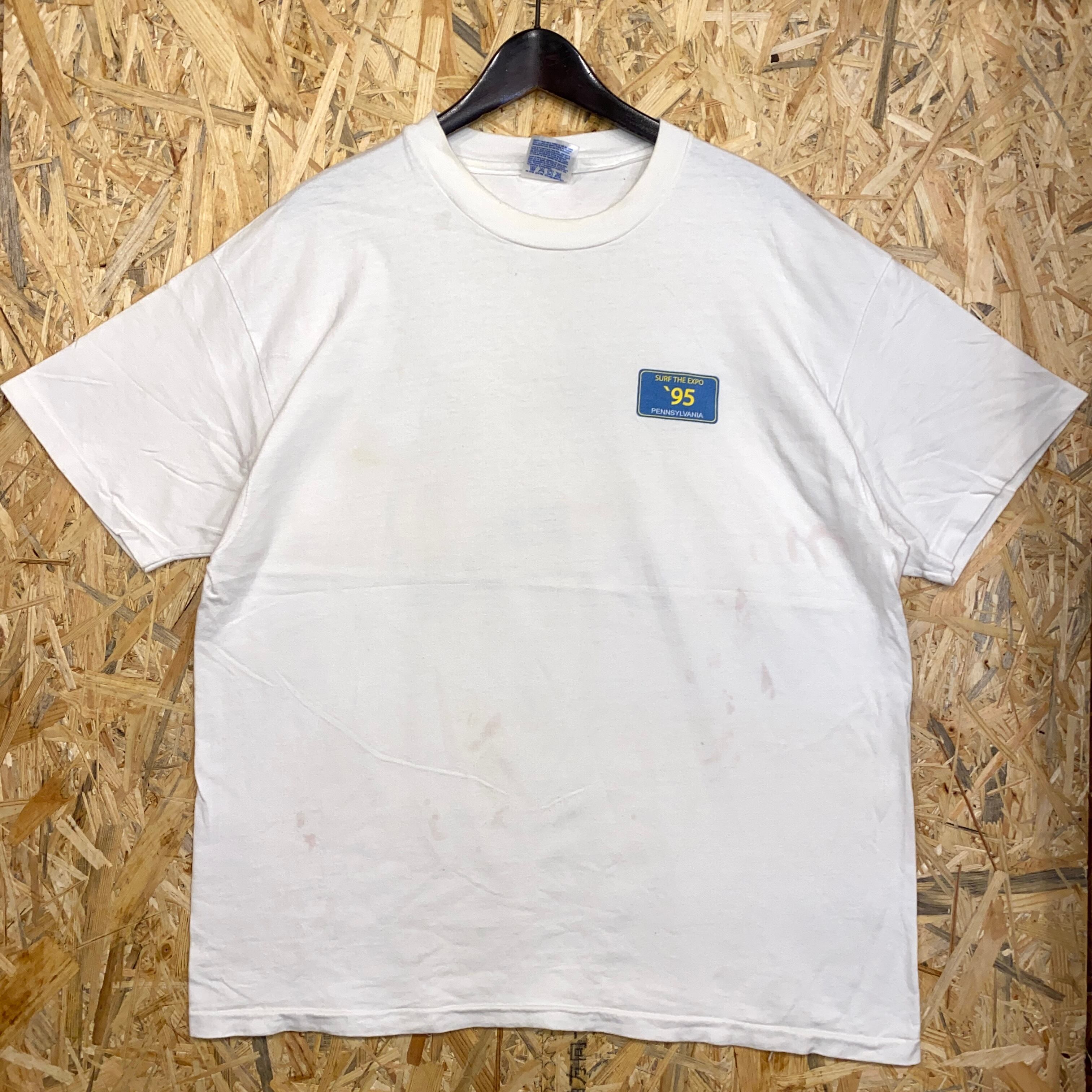 2281 90s 90年代 USA製 車 イラスト Tシャツ SURF THE EXPO シングルステッチ ホワイト 白 Hanes 古着 メンズ vintage