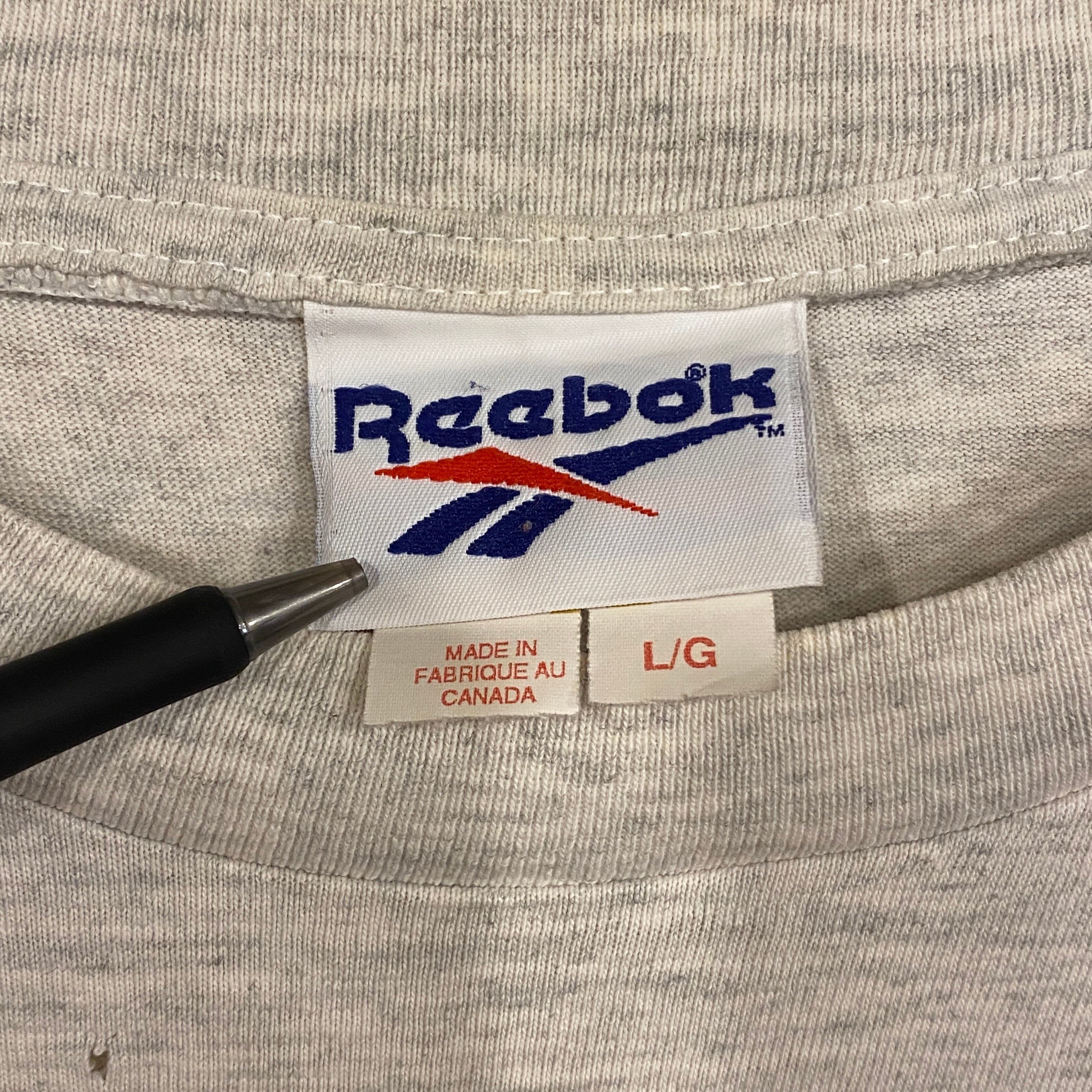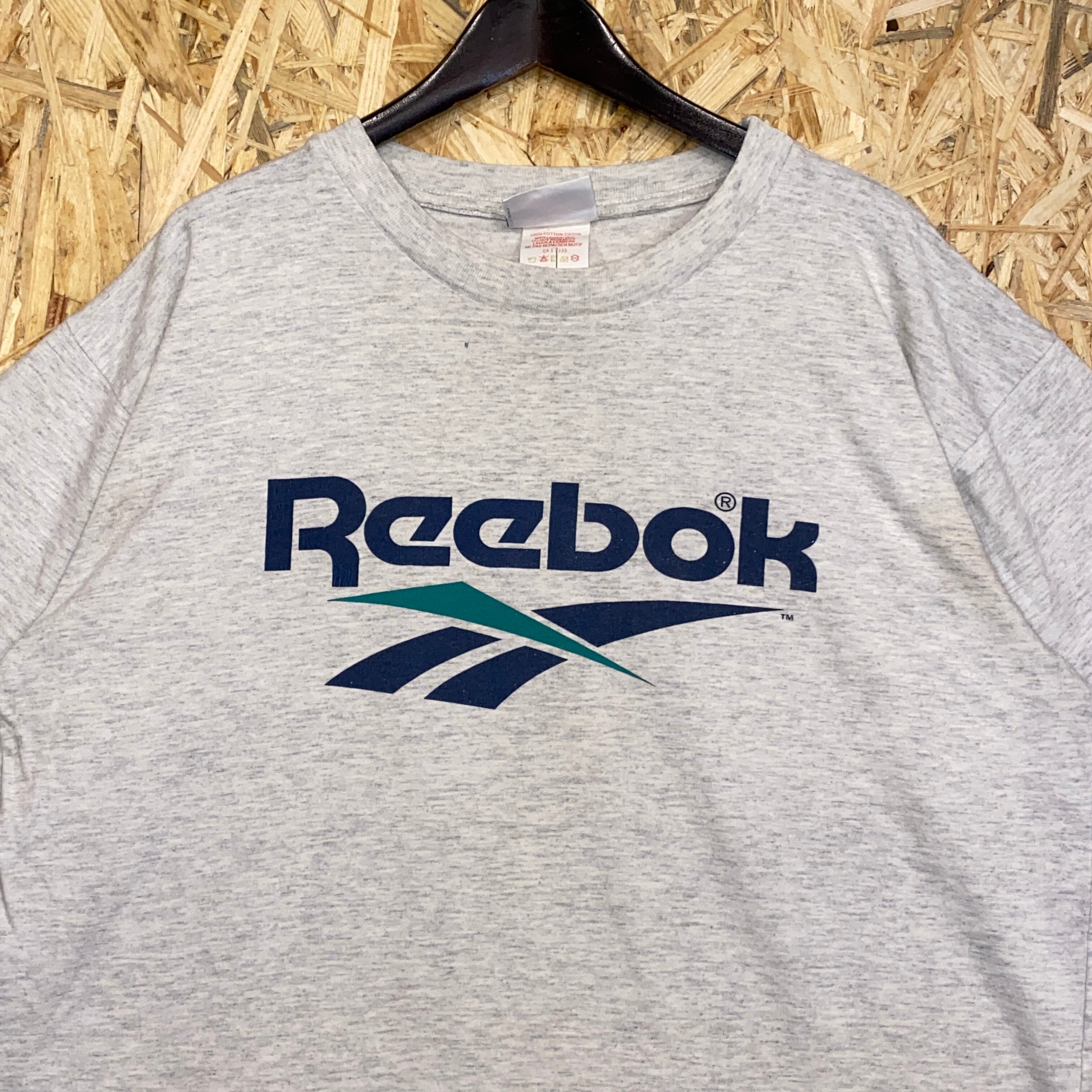 2288 90s 90年代 Reebok プリント Tシャツ リーボック スポーツ ウェア ビッグロゴ グレー 古着 メンズ vintage