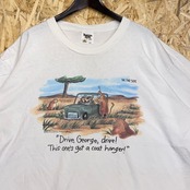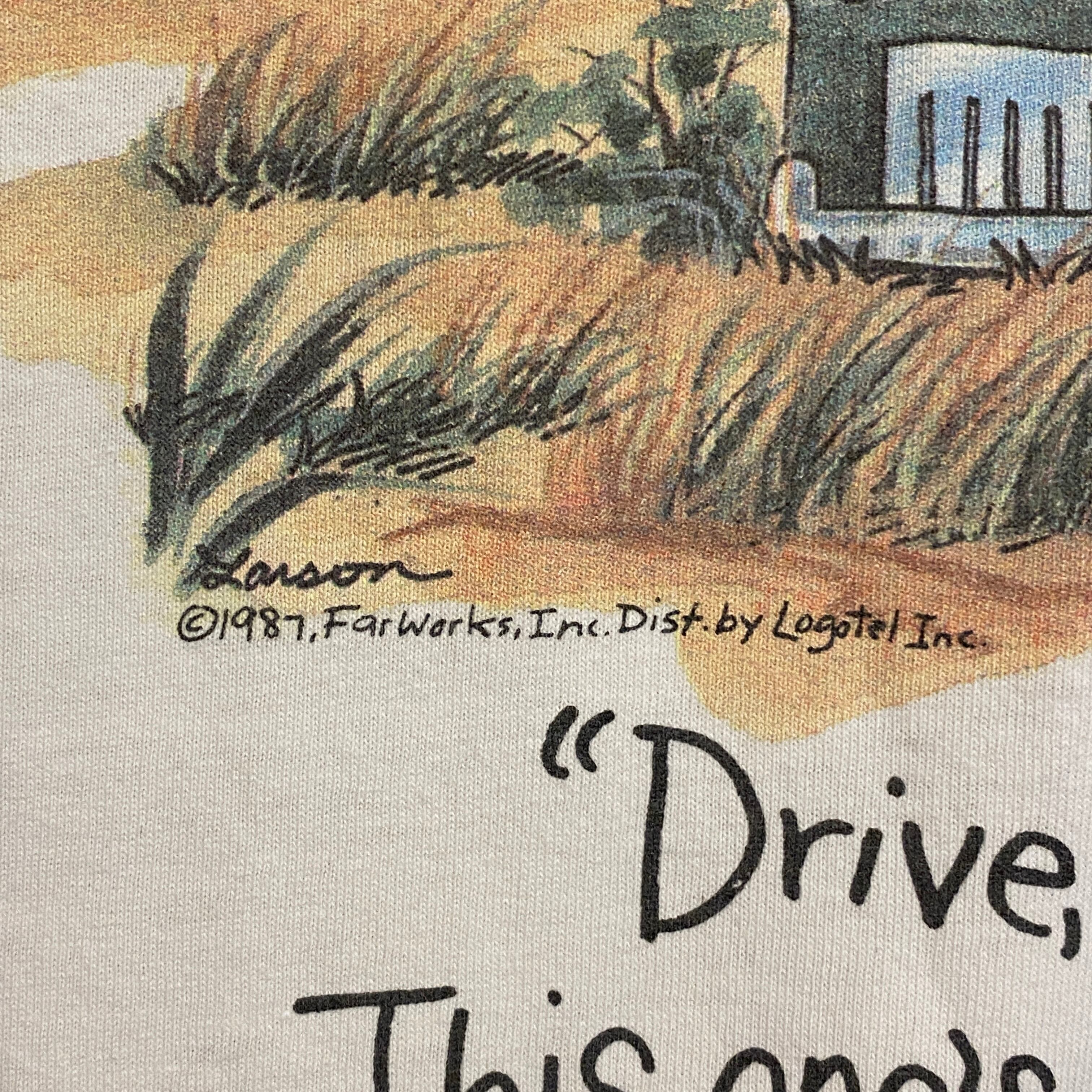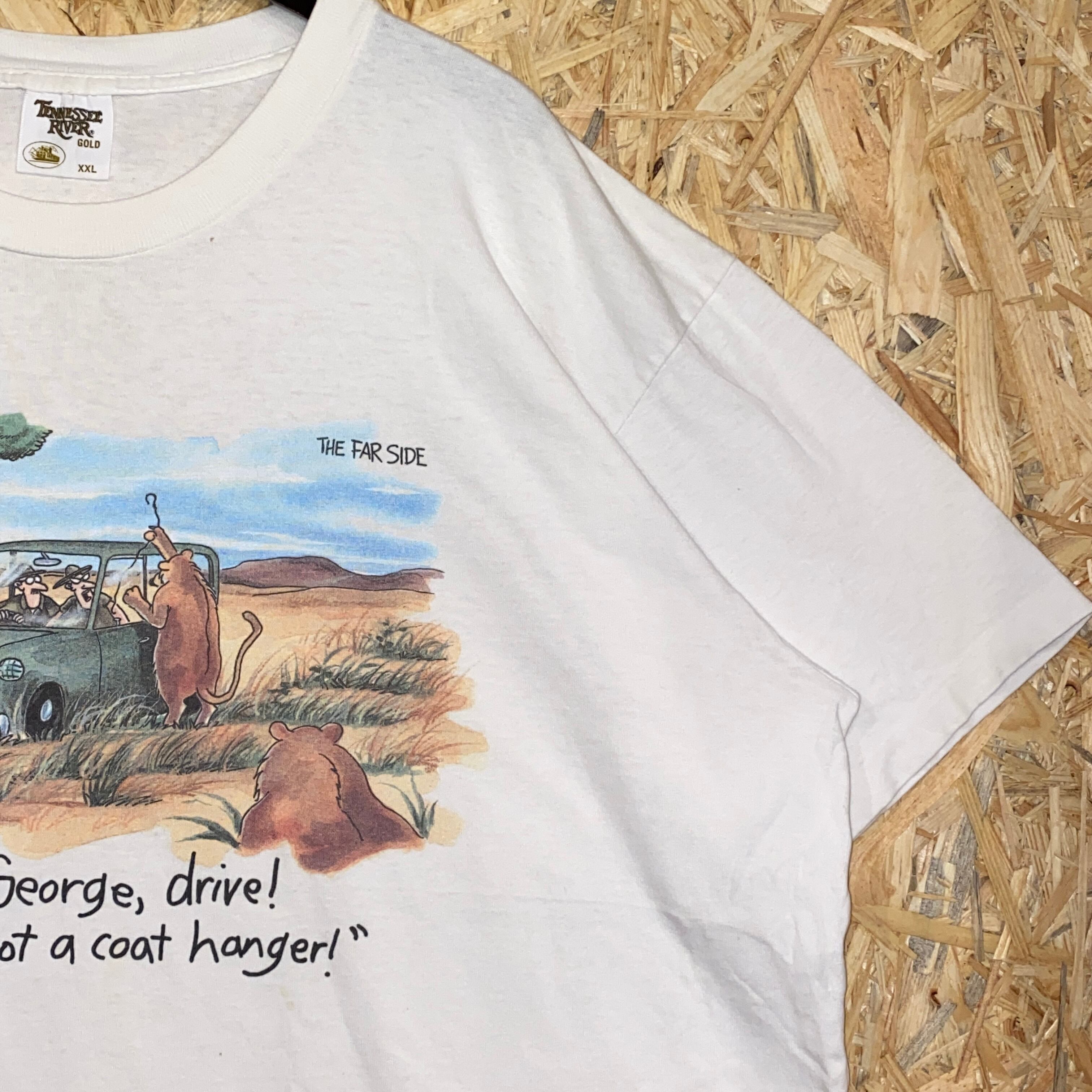 2289 90s 90年代 USA製 TENNESSEE RIVER ゲイリー ラーソン イラスト Tシャツ アニマル 漫画 ユーモラス ホワイト 白 シングルステッチ 古着 メンズ vintage
