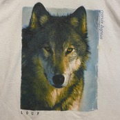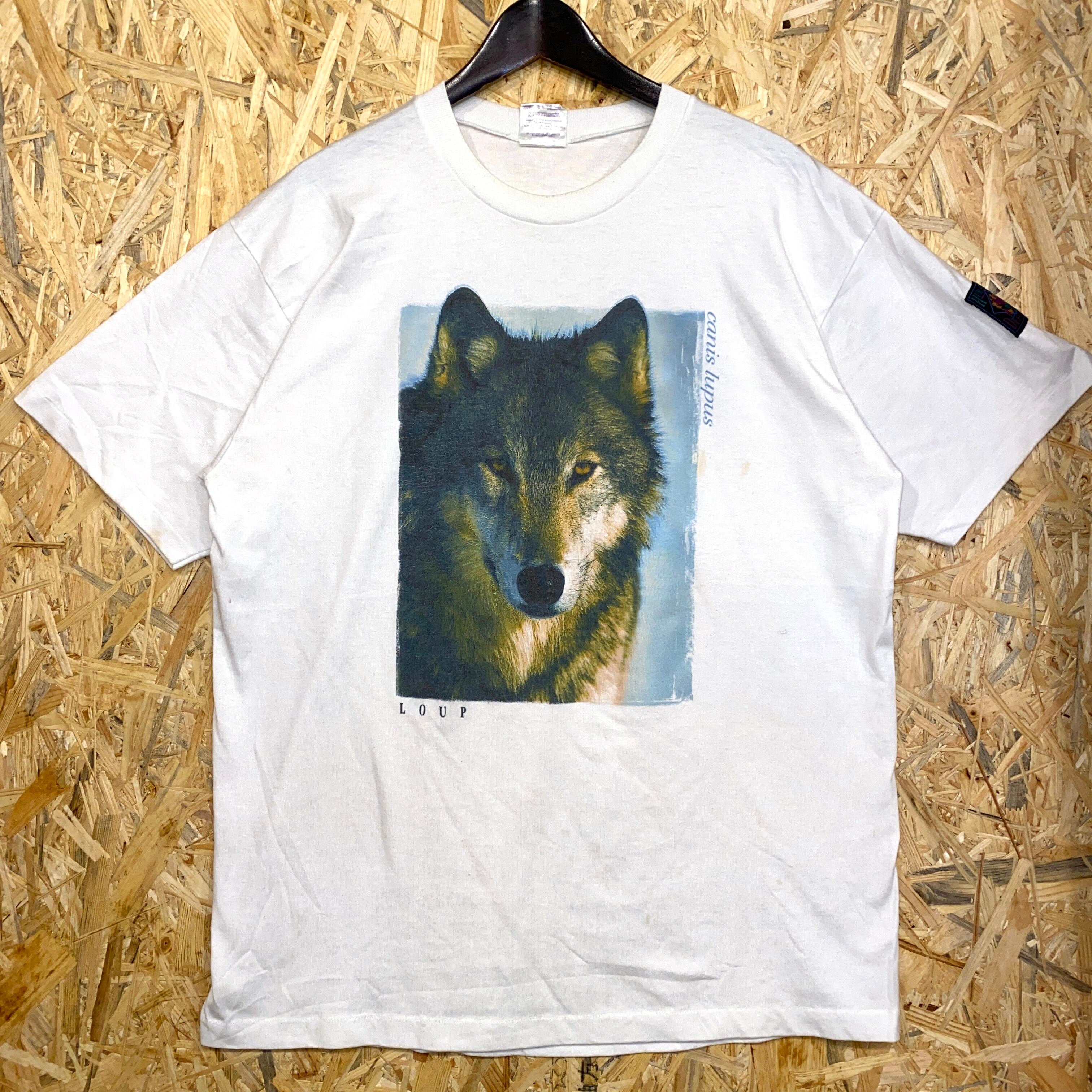 2295 90s 90年代 ホッキョク オオカミ プリント Tシャツ 狼 アニマル 動物 HUMEUR DESIGN ホワイト 白 シングルステッチ 古着 メンズ vintage
