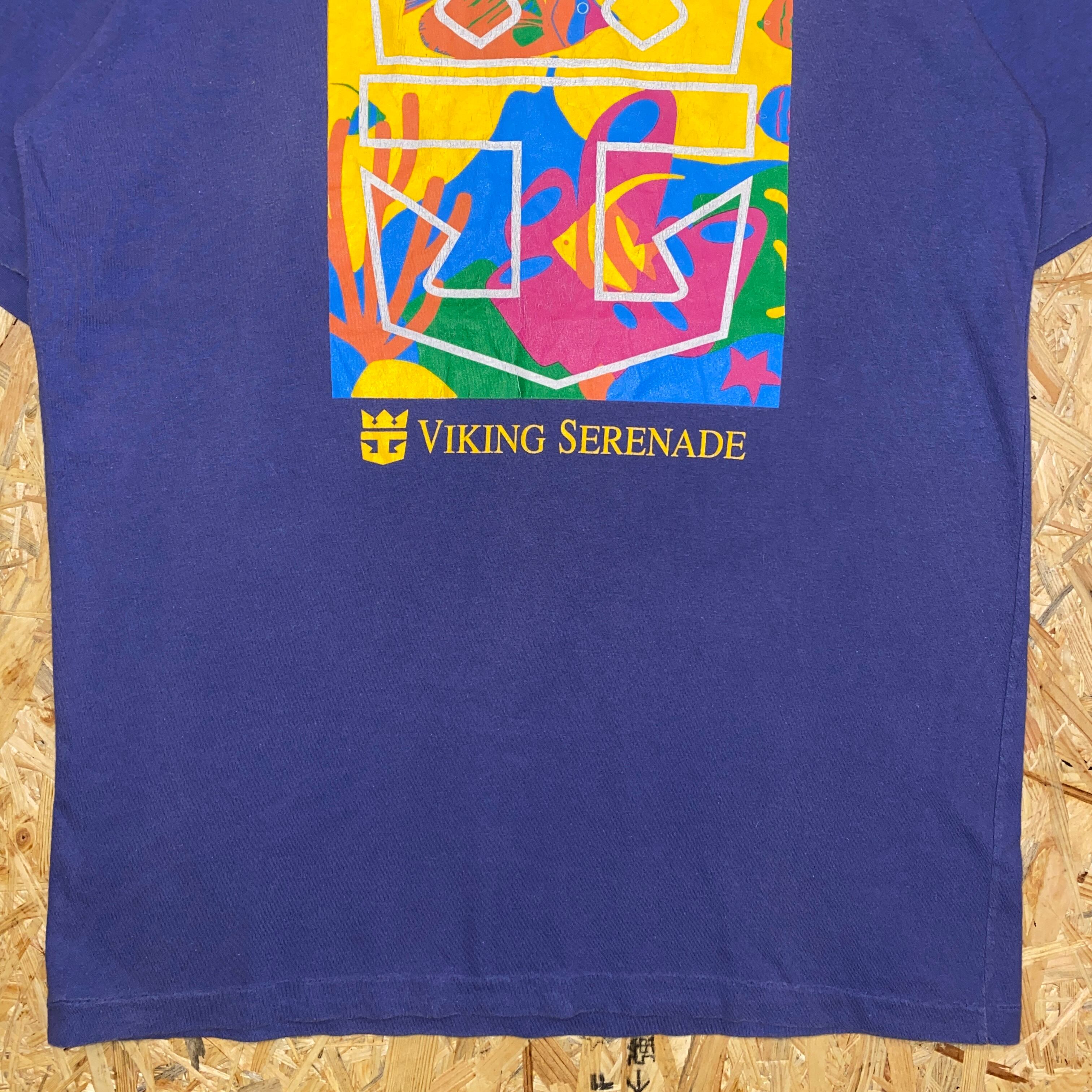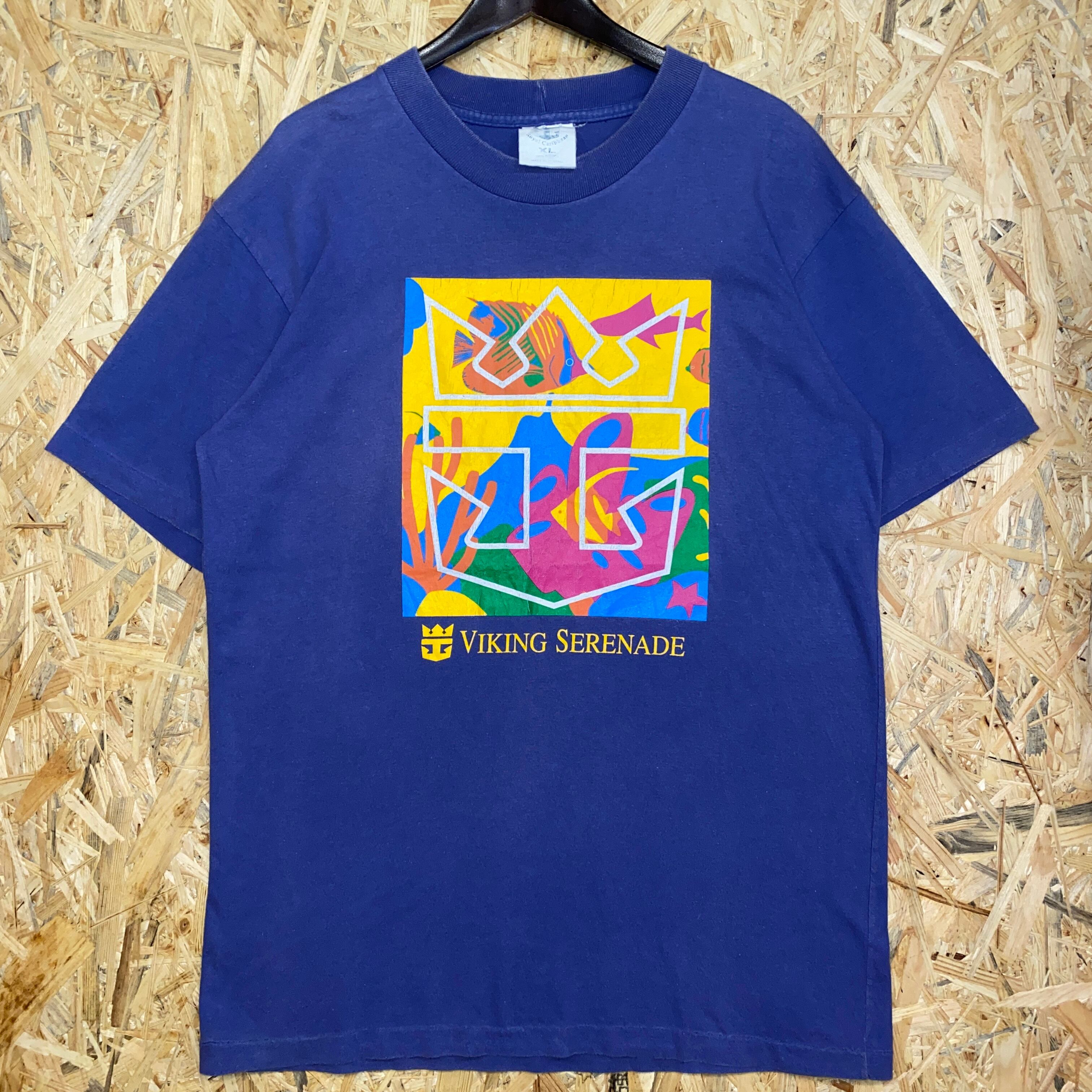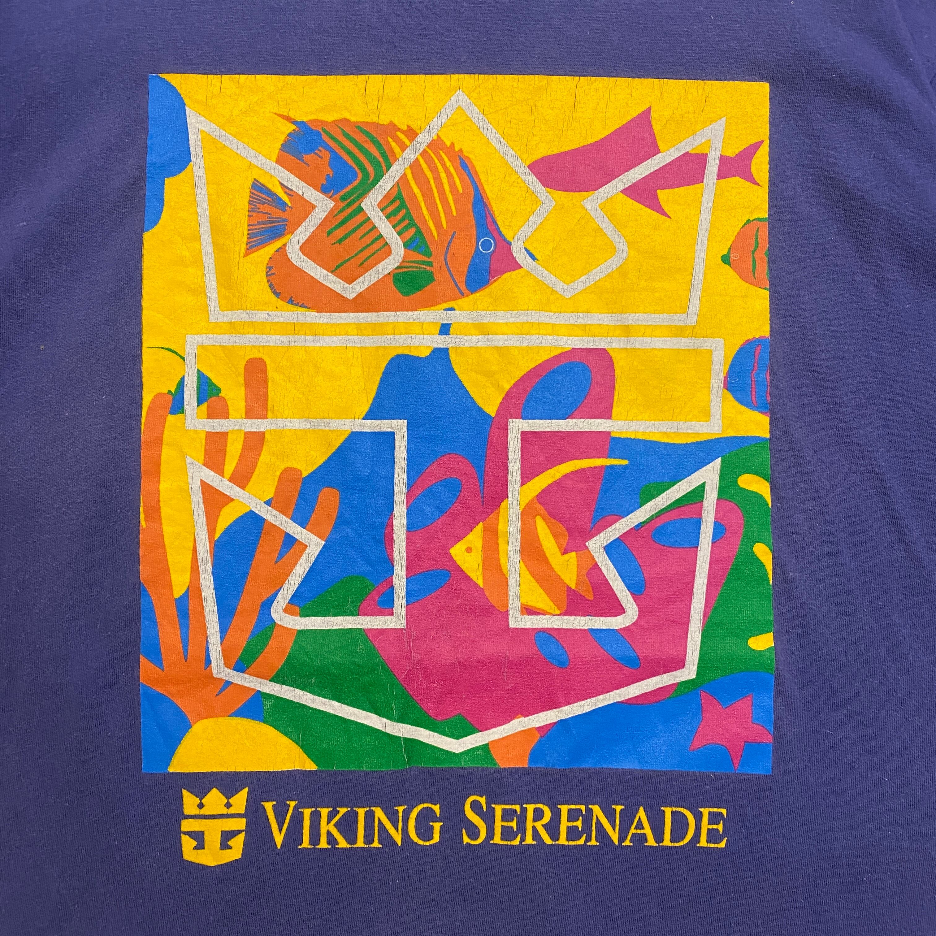 2302 90s〜 90年代〜 royal caribbean アート プリント Tシャツ 魚 fish サンゴ カラフル 紫 パープル シングルステッチ 古着 メンズ vintage