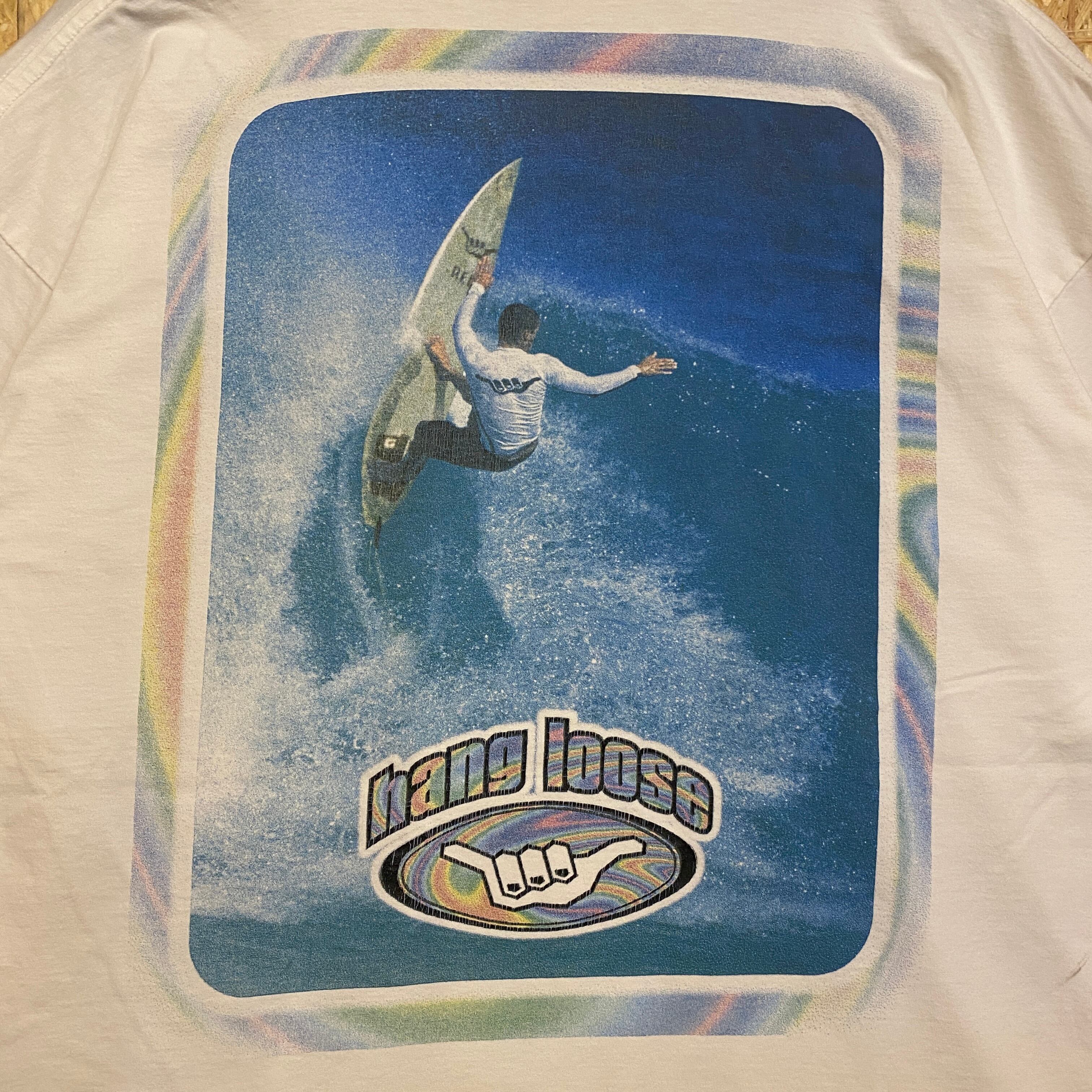 2304 90s〜 90年代〜 HANG LOOSE バックプリント Tシャツ サーフィン 海 ハワイ hawaii ホワイト 白 古着 メンズ vintage
