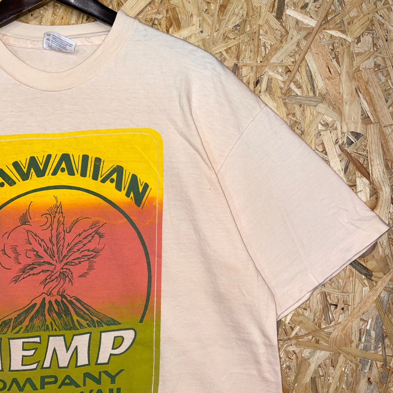 2307 90s〜 90年代〜 USA製 Hanes ヘインズ プリント Tシャツ Hawaii HEMP シングルステッチ ベージュ ベビーピンク 古着 メンズ vintage