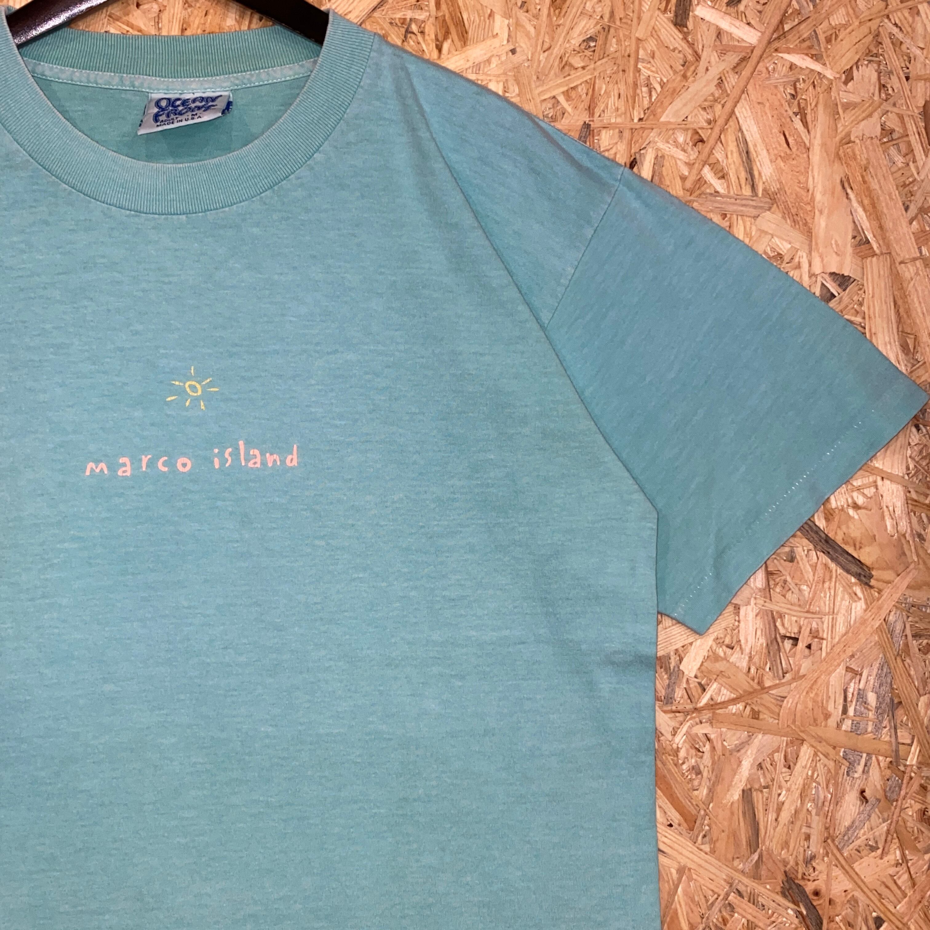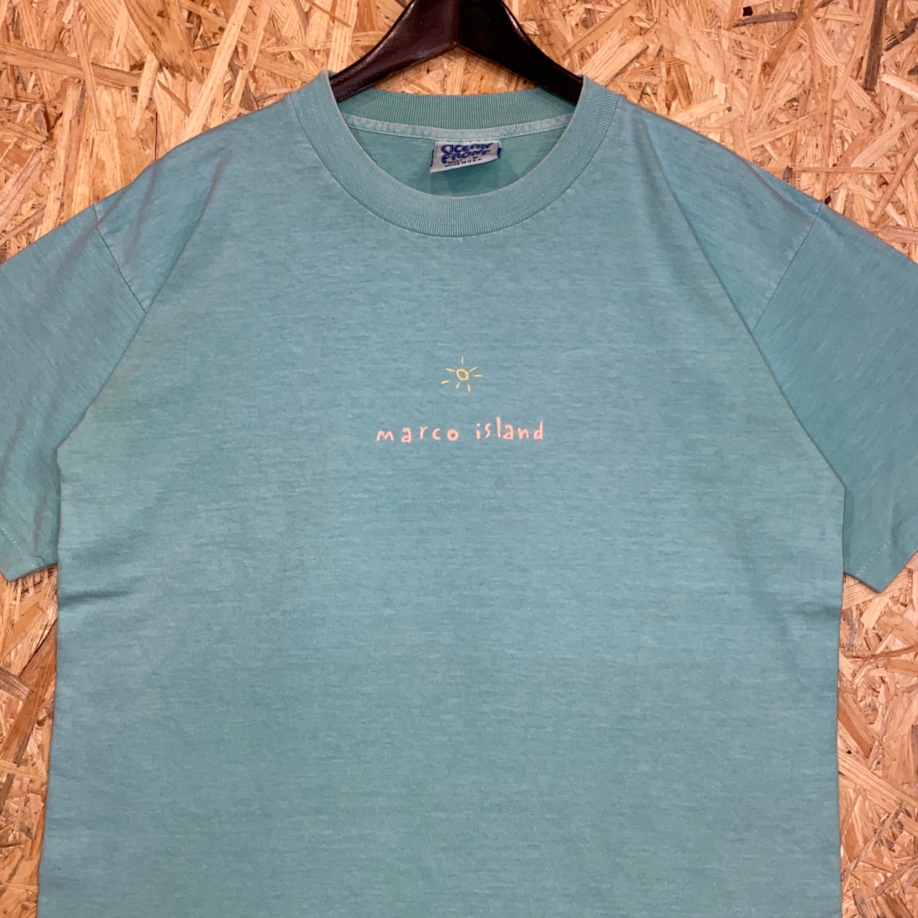 2314 90s 90年代 USA製 プリント Tシャツ OCEAN FRONT marco island 太陽 イラスト マルコアイランド スプリンググリーン 古着 メンズ vintage