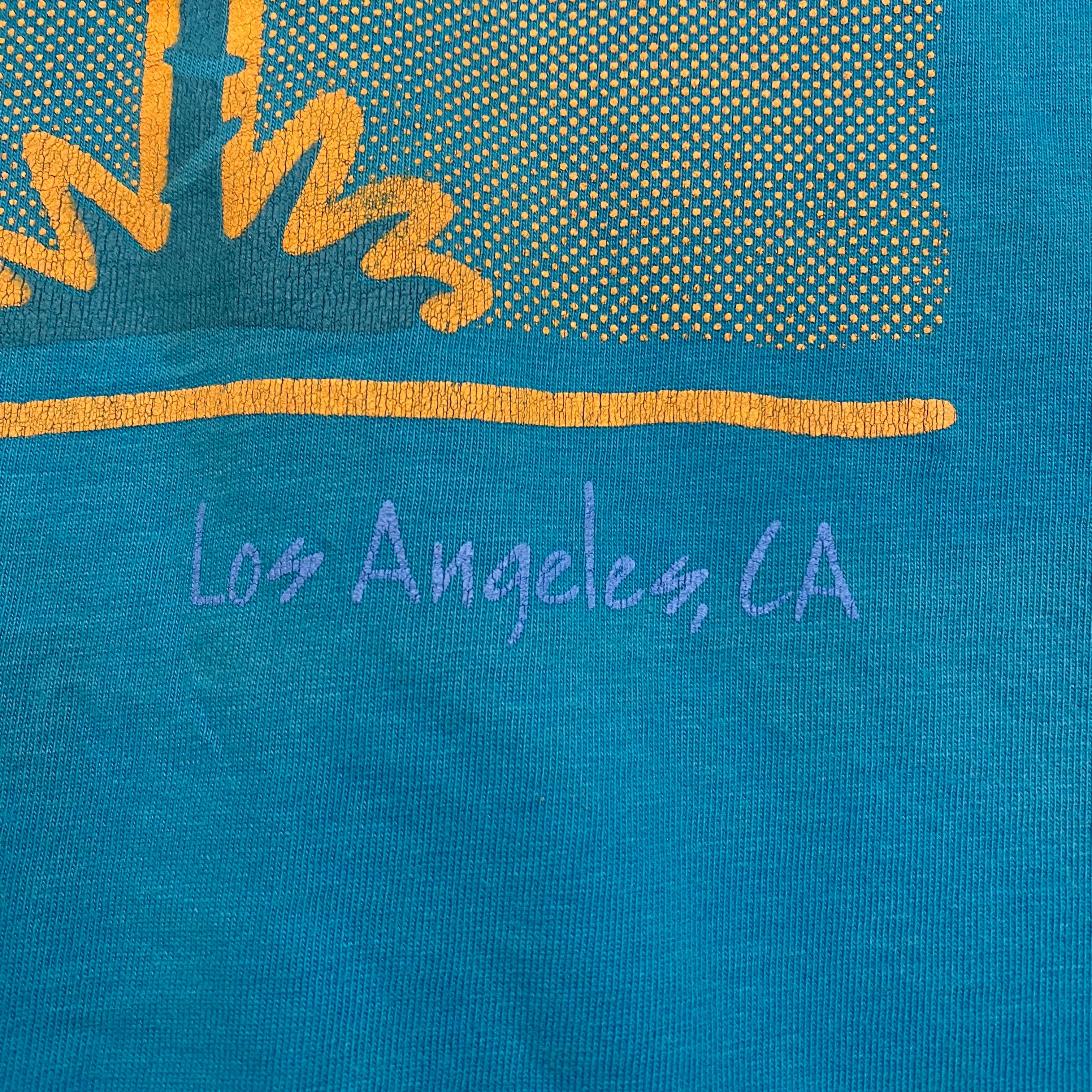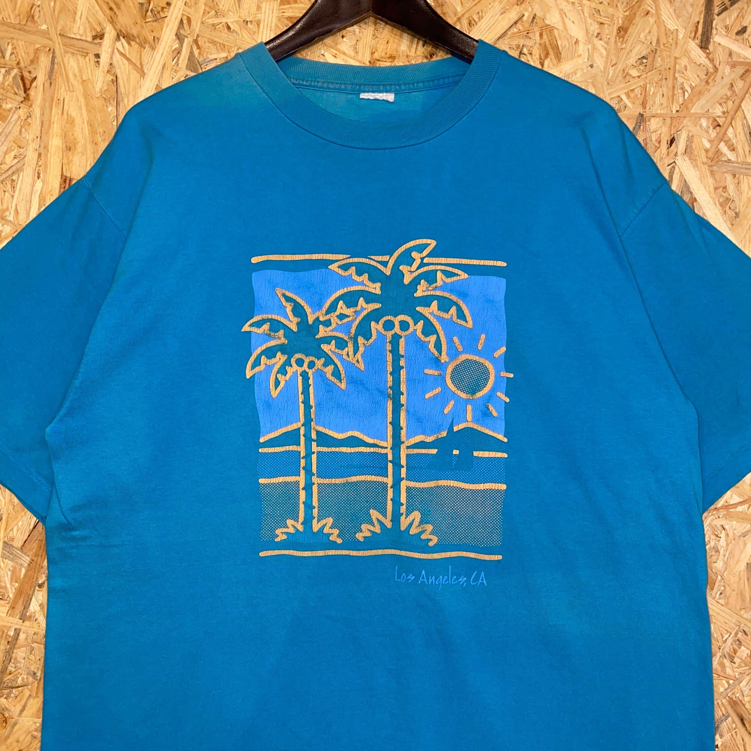 2320 Los Angeles ロサンゼルス リゾート グラフィック プリント Tシャツ ヤシの木 太陽 海 ブルー 青 シングルステッチ 古着 メンズ vintage