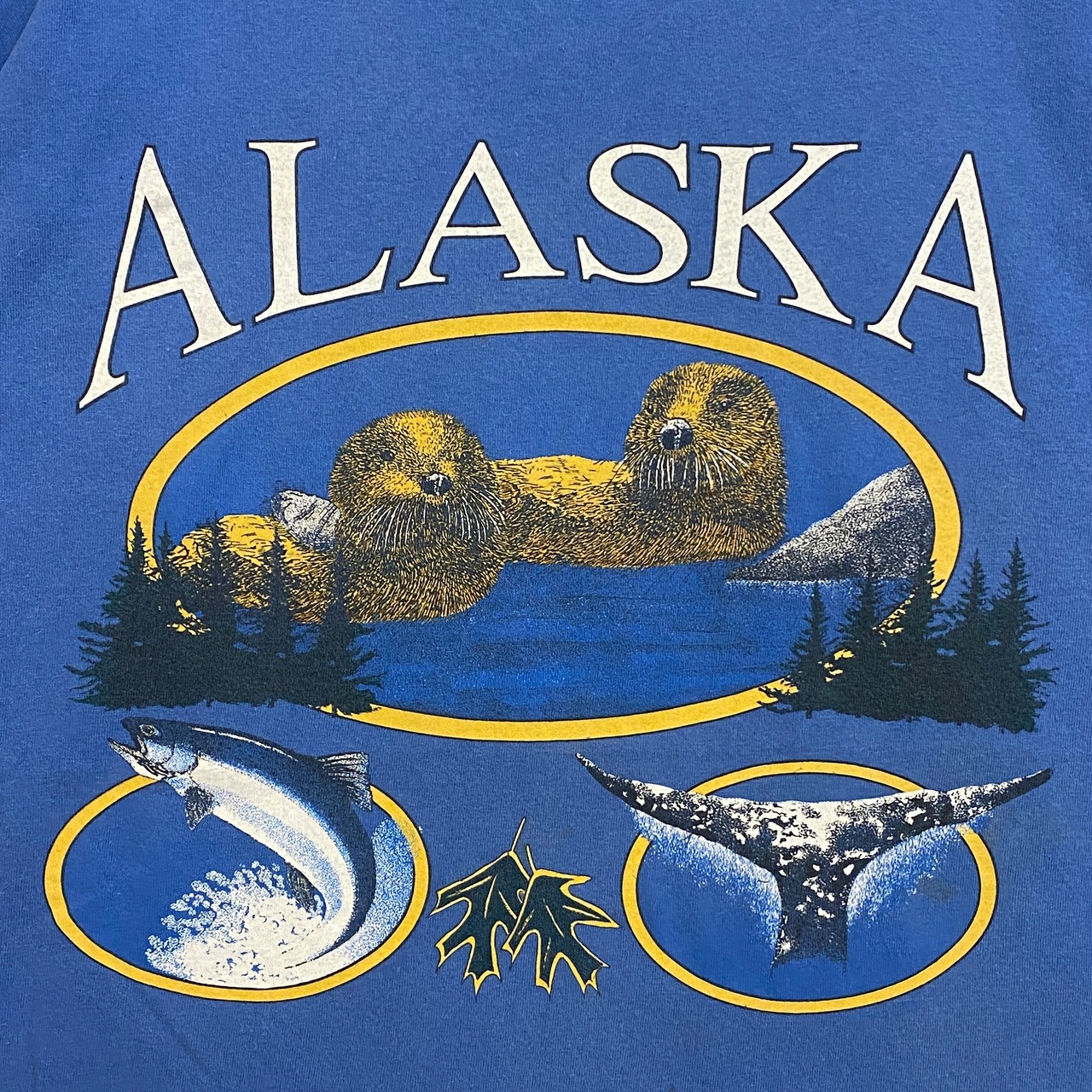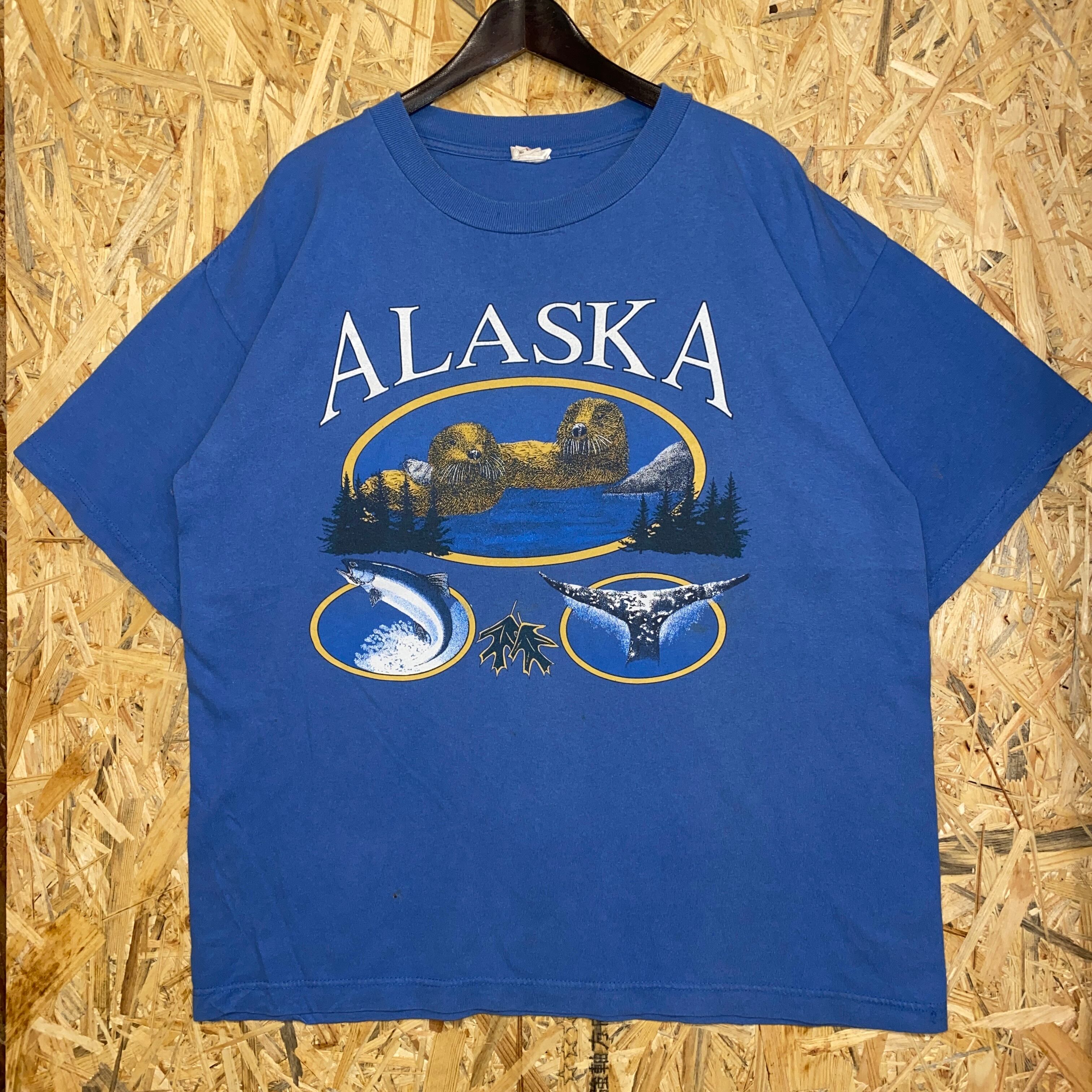 2326 90s 90年代 アラスカ ALASKA スーベニア Tシャツ アニマル プリント ラッコ 自然 青 ブルー 古着 メンズ vintage XL