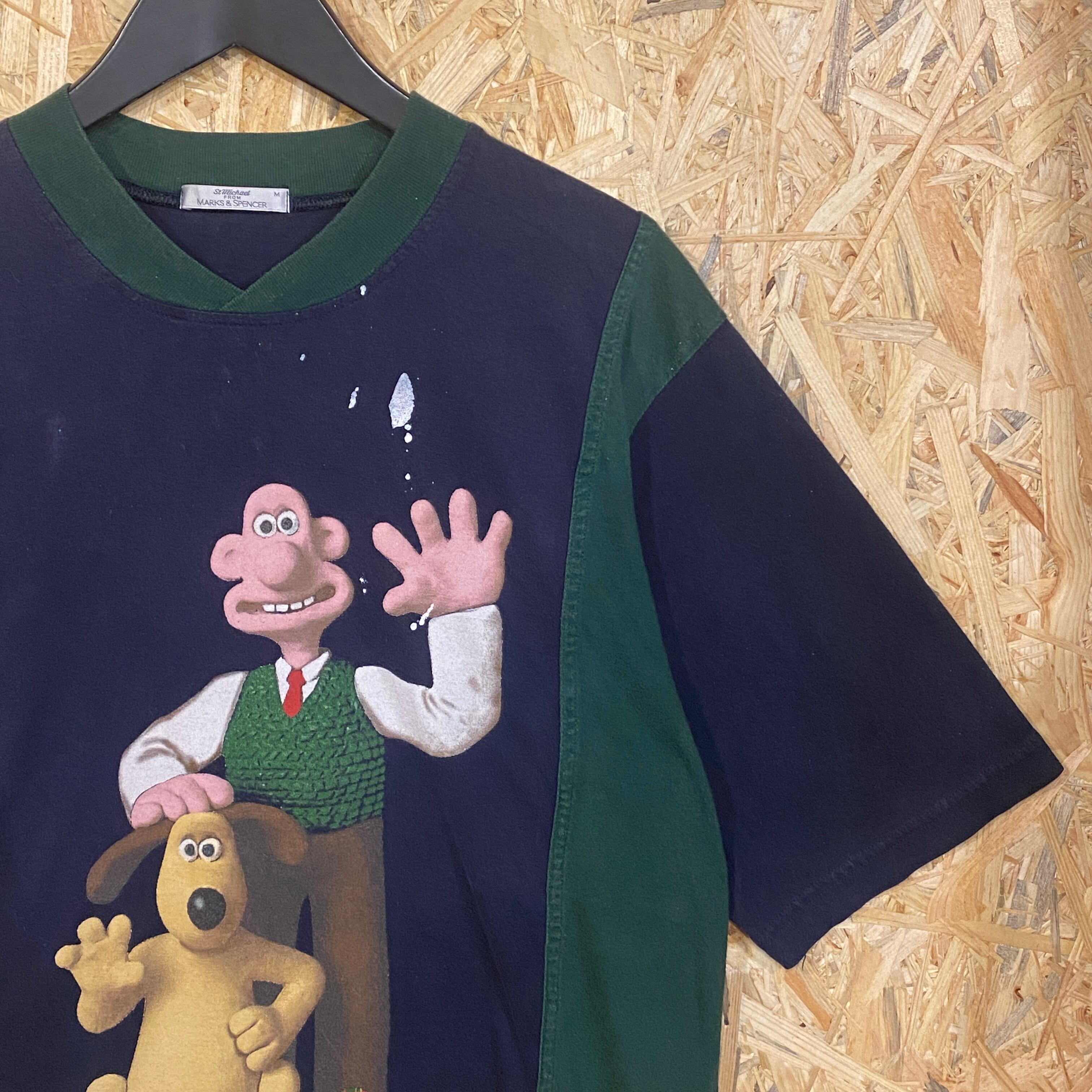 2338 90s St. Michael製 Wallace & Gromit パネル切り替え Tシャツ メンズ 古着 vintage