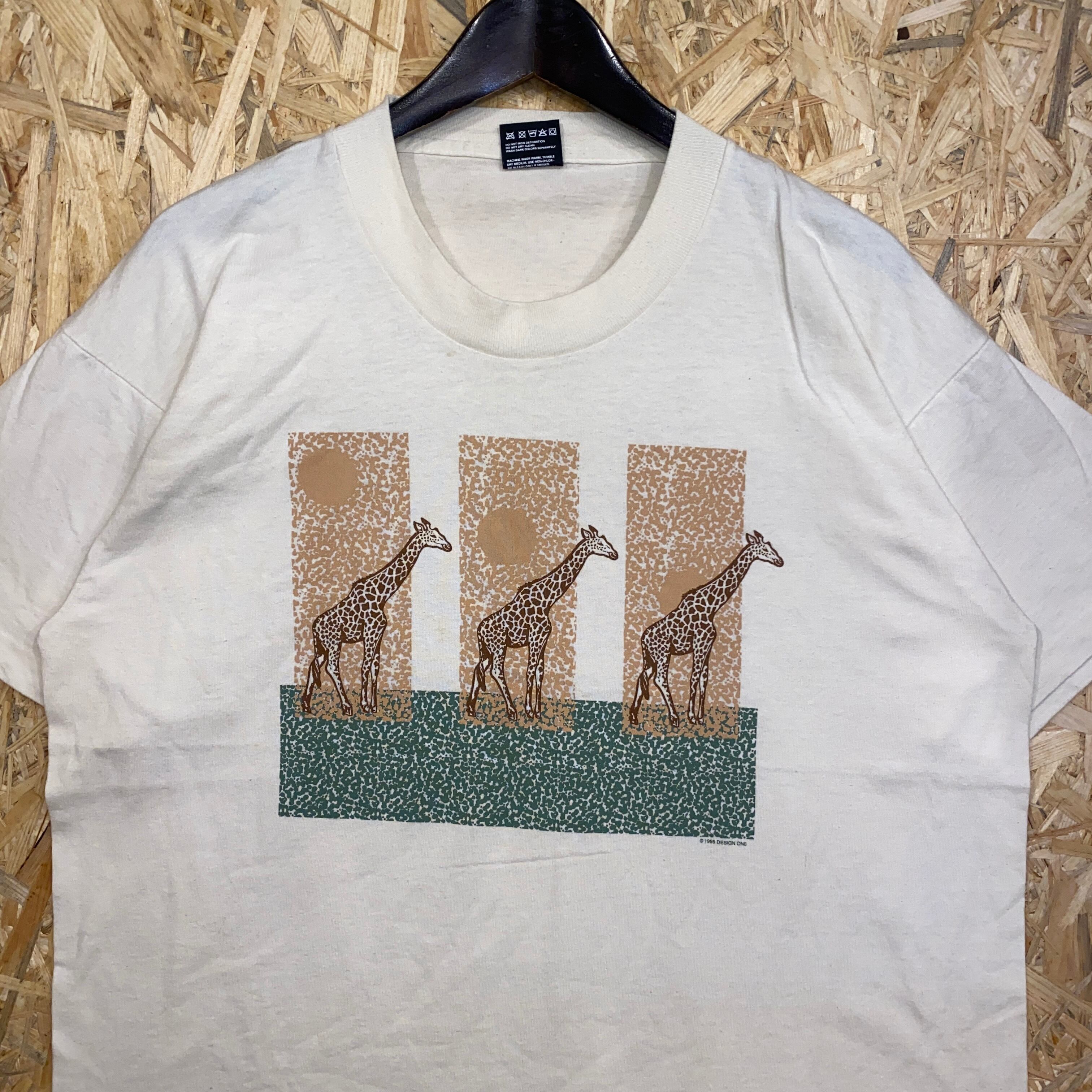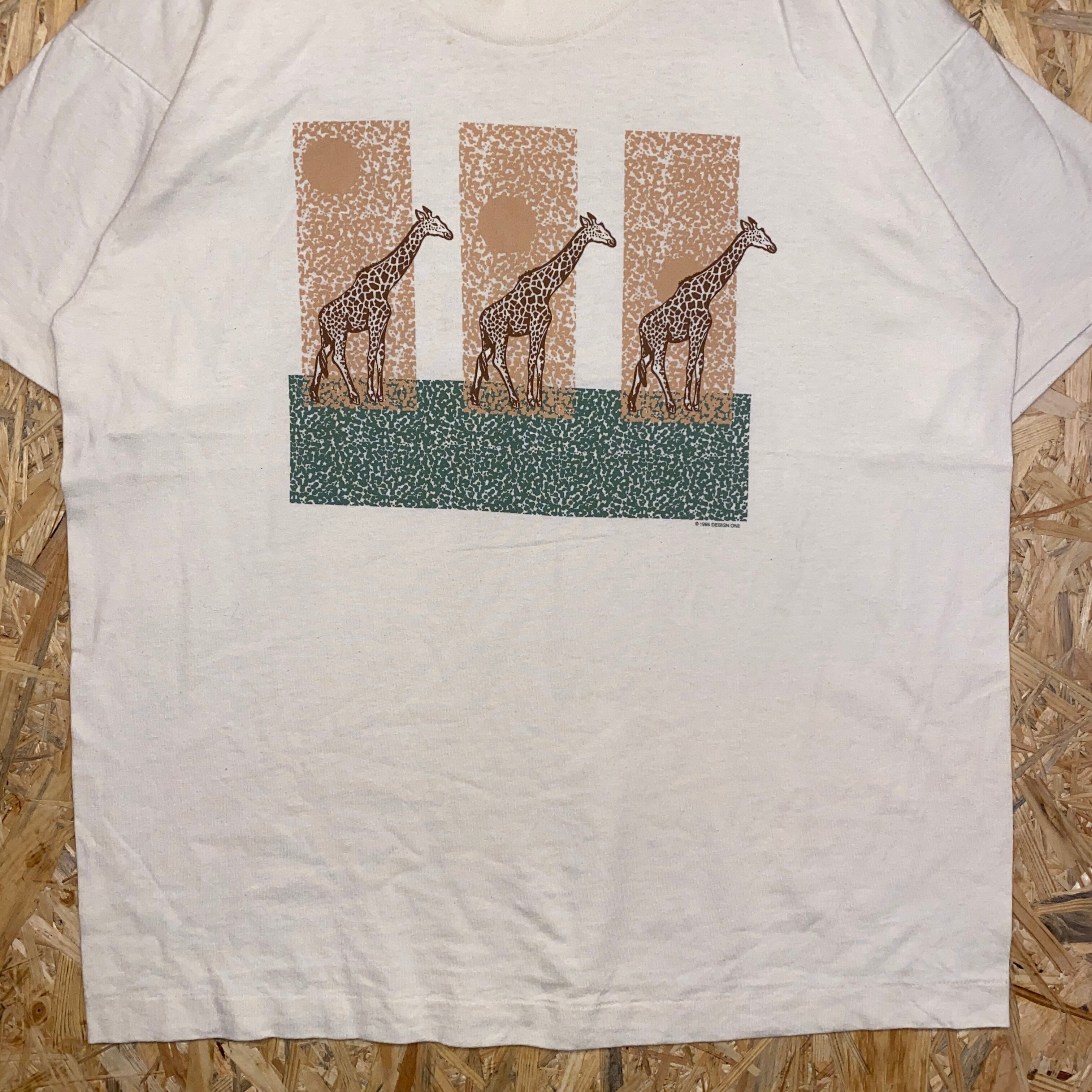 2345 1995s 90年代 USA製 キリン アニマル プリント Tシャツ グラフィック フルーツオブザルーム シングルステッチ 古着 メンズ vintage 90s