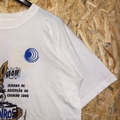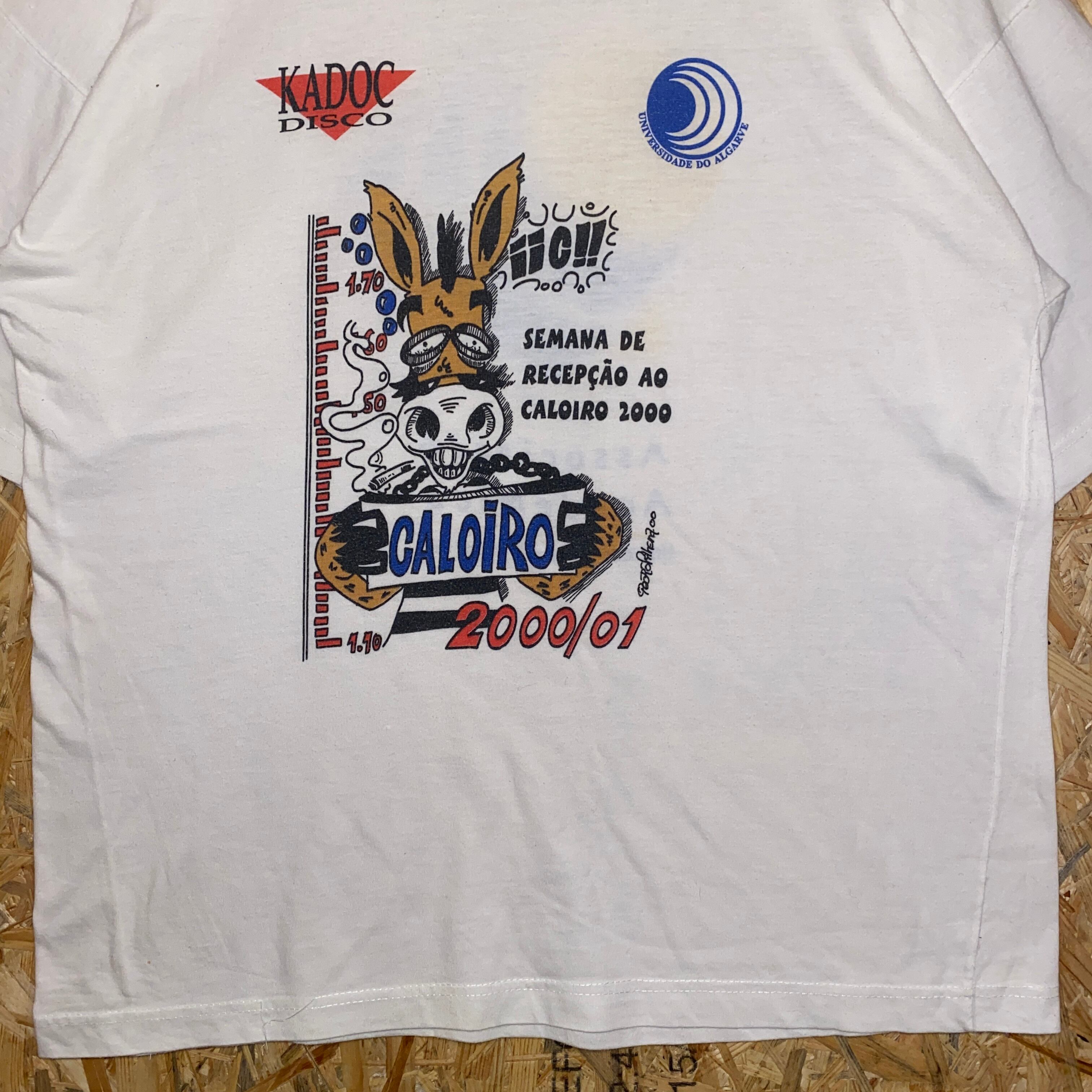 2347 00s 00年代 UNIVERSIDADE DO ALGARVE 大学 カレッジ プリント Tシャツ アート キャラクター 両面 プリント 白 ホワイト 古着 メンズ vintage 2000s