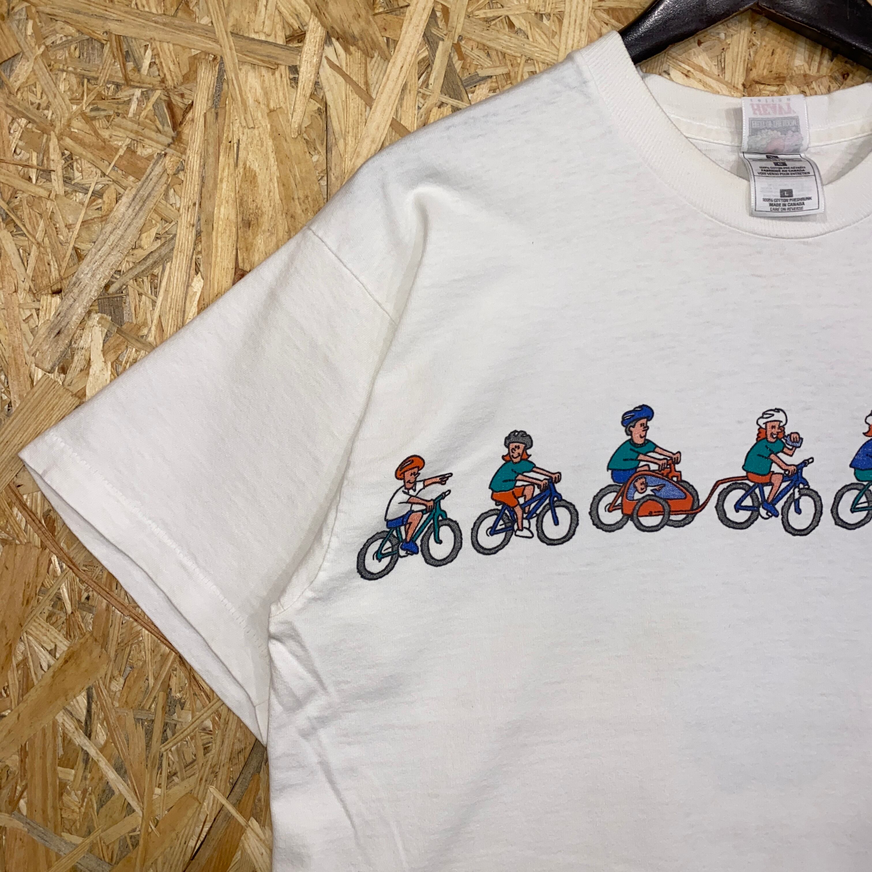 2373 90s 90年代 自転車 イラスト Tシャツ サイクリング ホワイト 白 シングルステッチ ブロモン イベント フルーツオブザルーム 古着 メンズ vintage