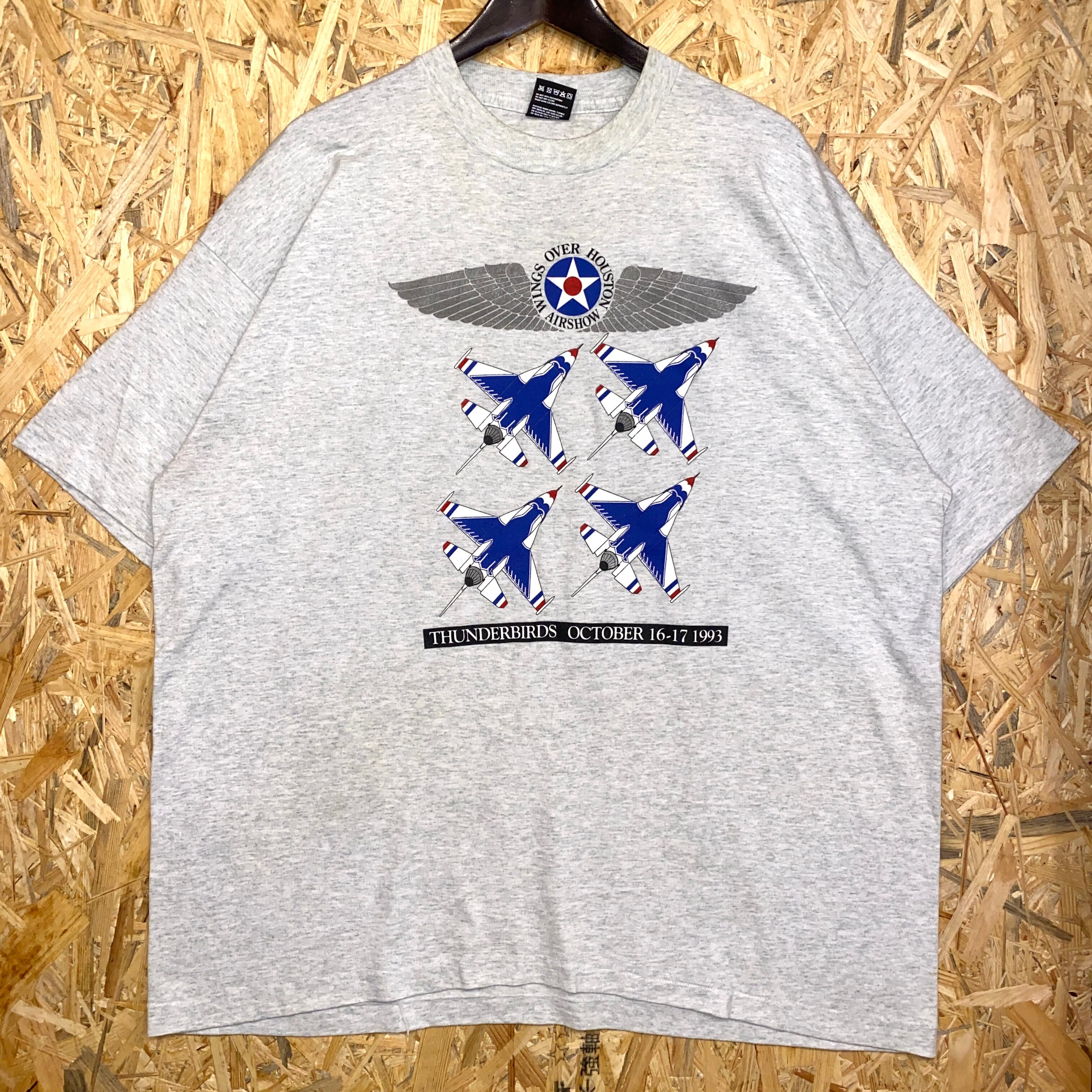 2377 90s 90年代 USA製 飛行機 プリント Tシャツ アメリカ 空軍 アクロバット シングルステッチ フルーツオブザルーム 古着 メンズ vintage
