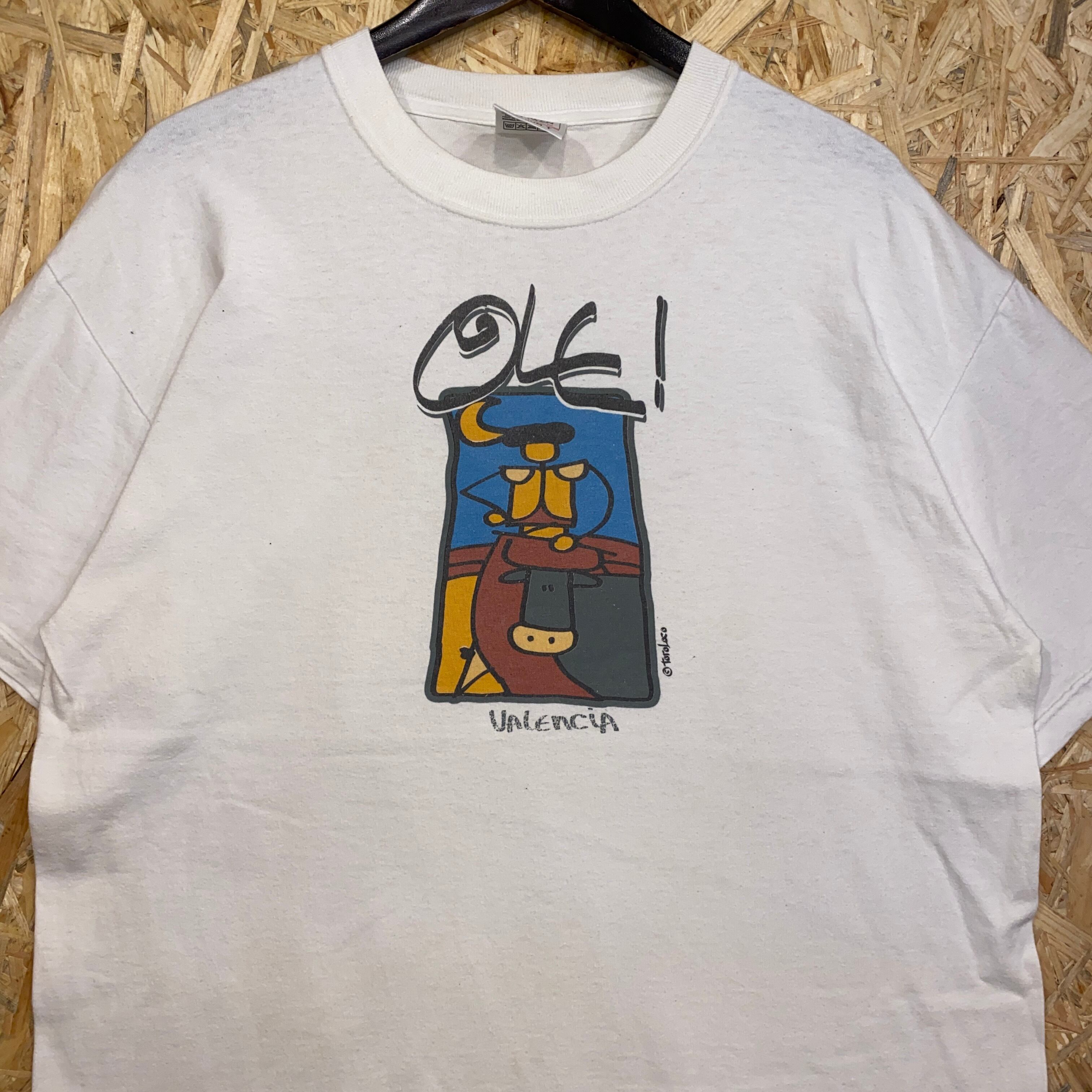 2378 00s 00年代 牛 イラスト Tシャツ 闘牛 VALENCIA スペイン バレンシア アニマル ホワイト 白 screen stars 古着 メンズ vintage
