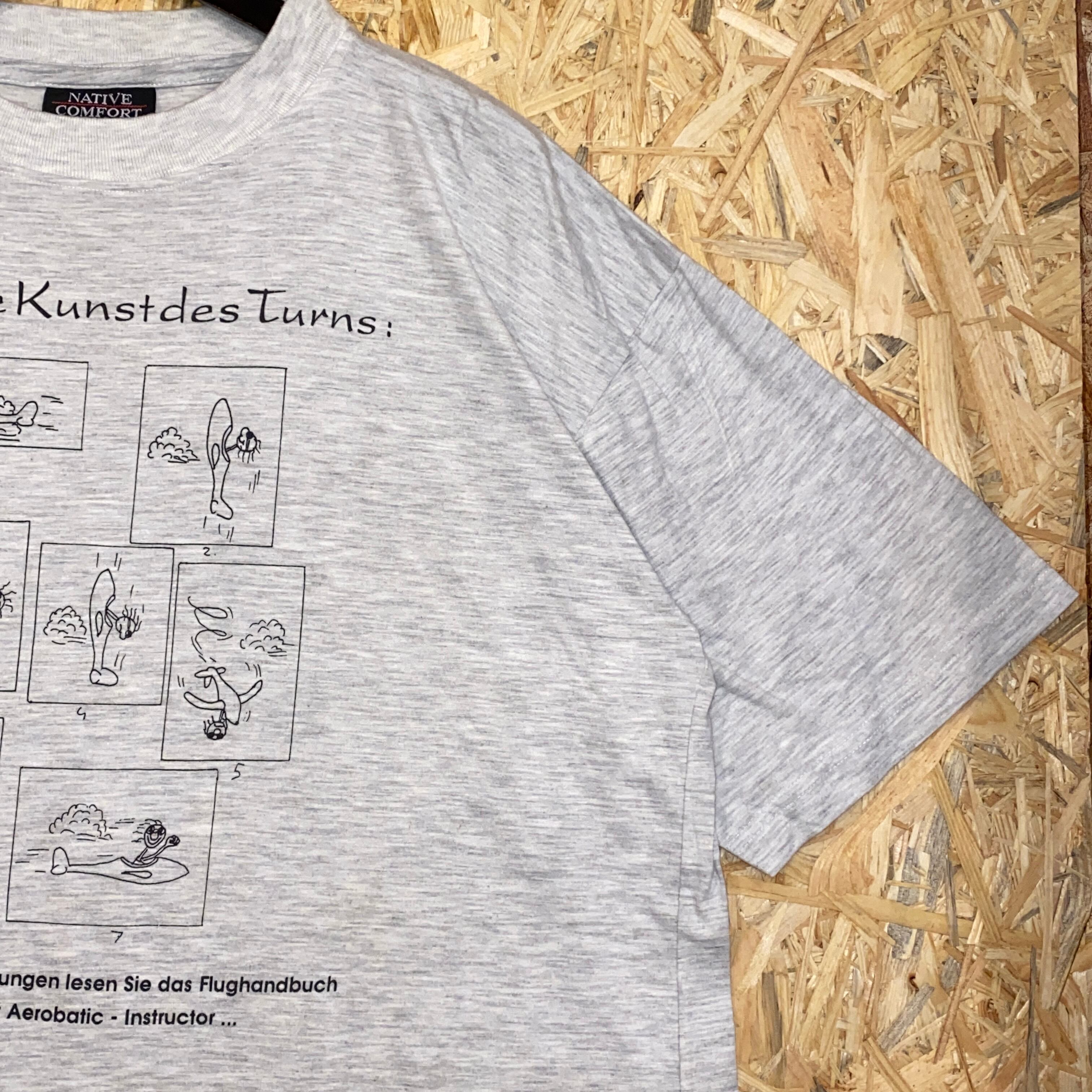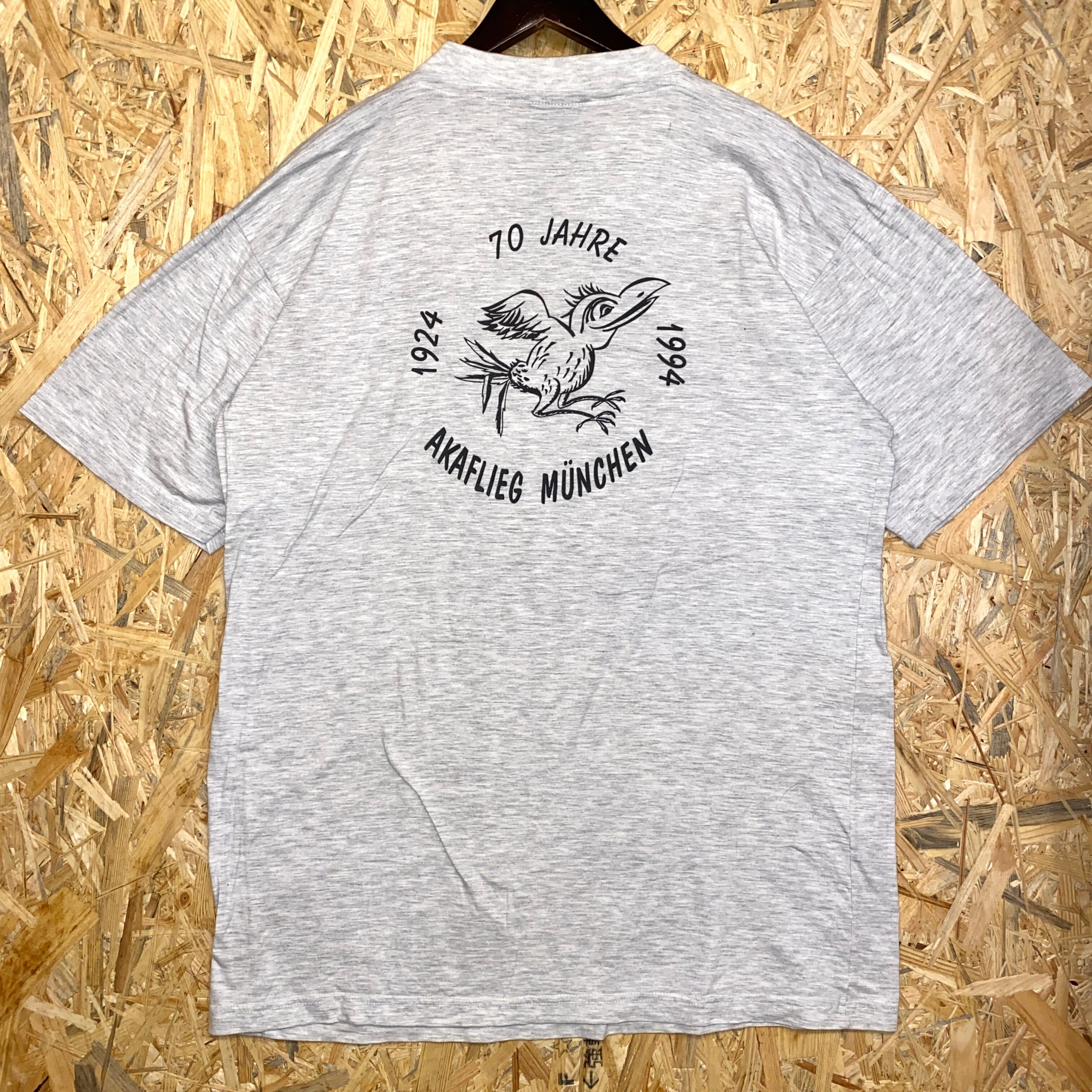 2392 90s 90年代 飛行機 ユーモラス Tシャツ アクロバット Akaflieg グレー 航空 ドイツ 鳥 古着 メンズ vintage