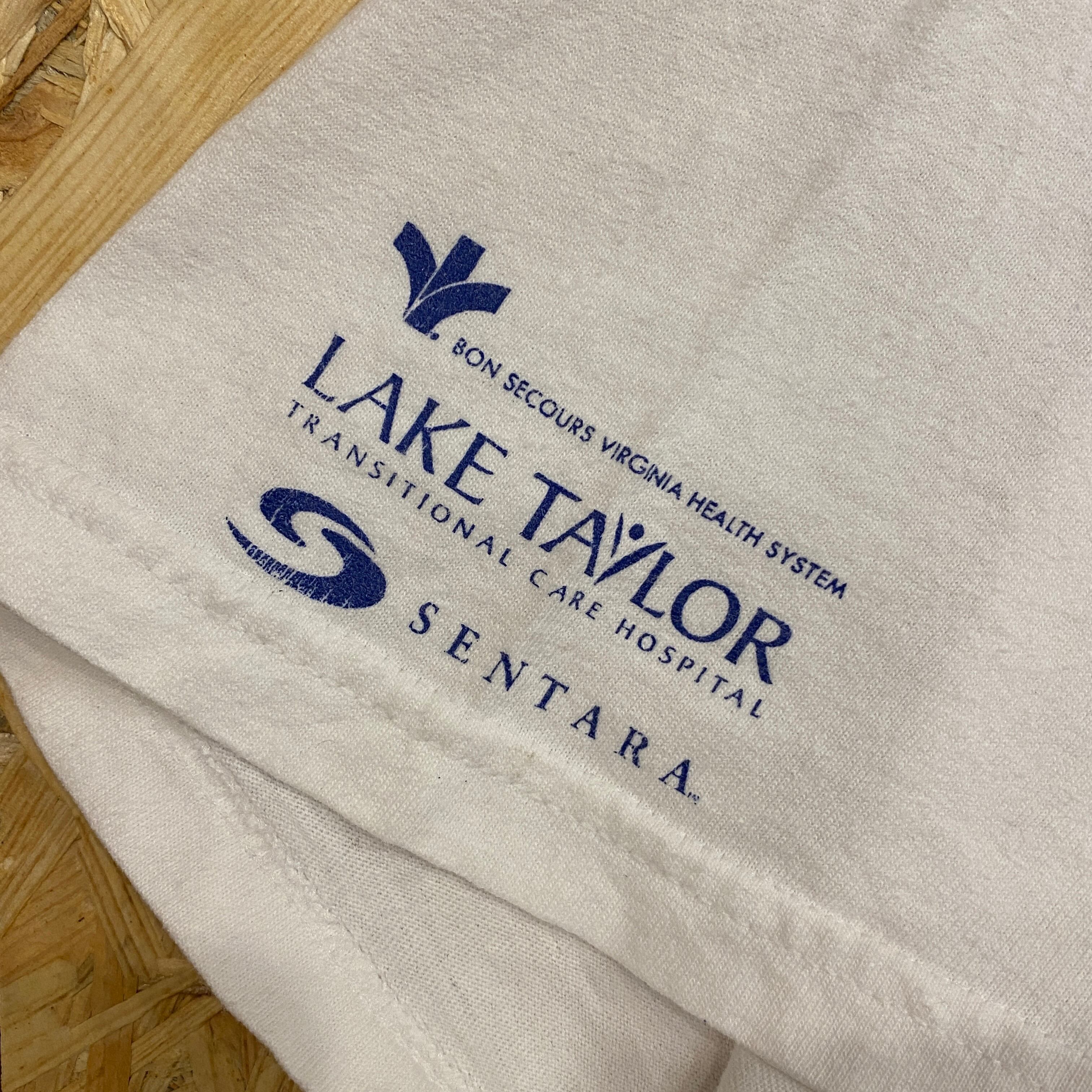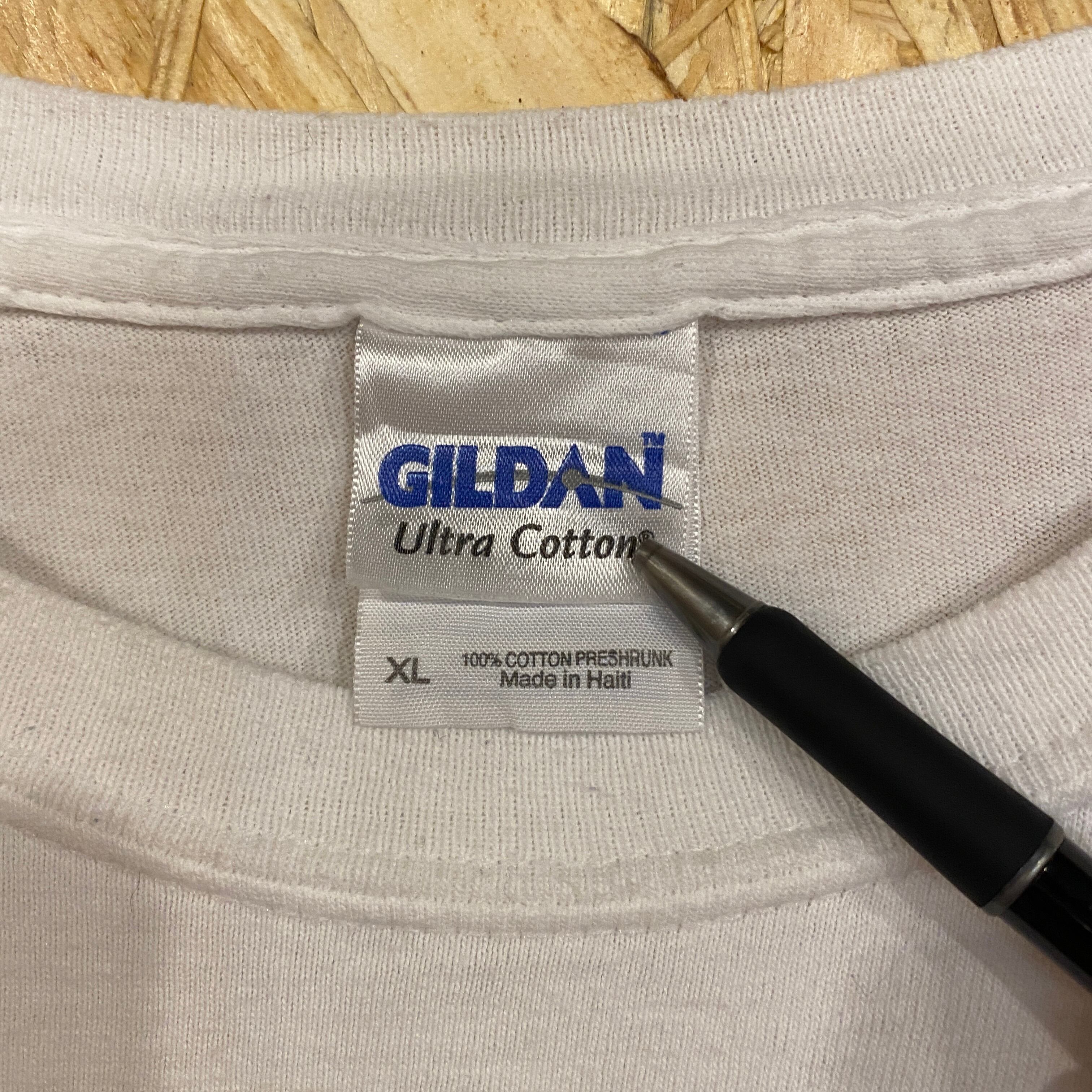 2402 2010s 00年代 魚 風刺画 グラフィック Tシャツ アニマル 両面 プリント 釣り 企業 記念品 白 ホワイト 古着 メンズ vintage 00s