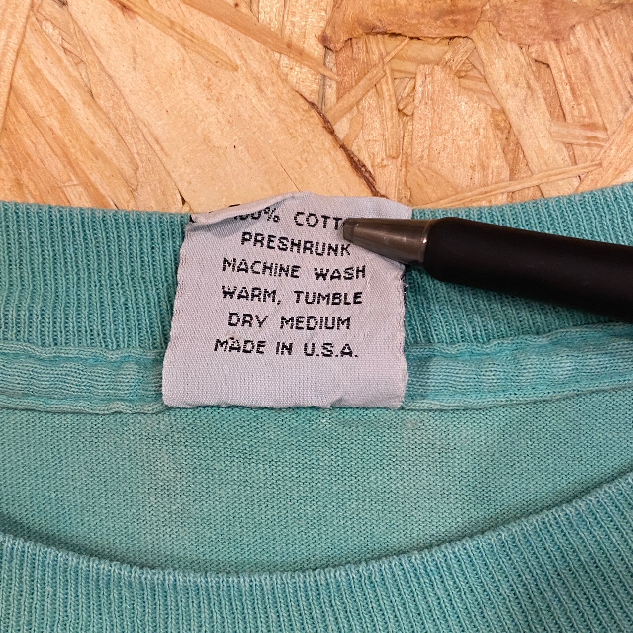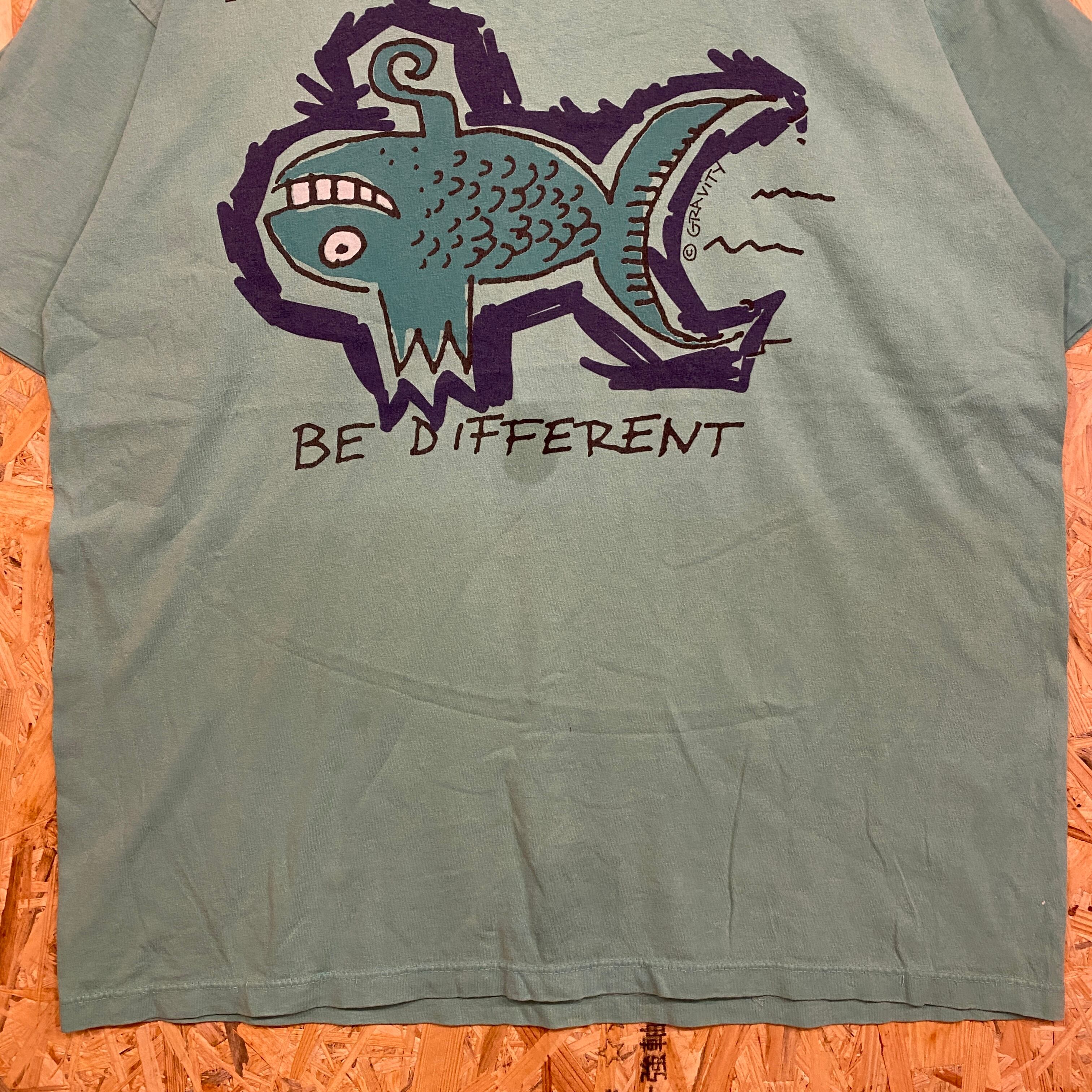 2404 90s〜90年代〜 USA製 魚 フィッシュ アニマルTシャツ エメラルドグリーン Tシャツ 古着 メンズ vintage