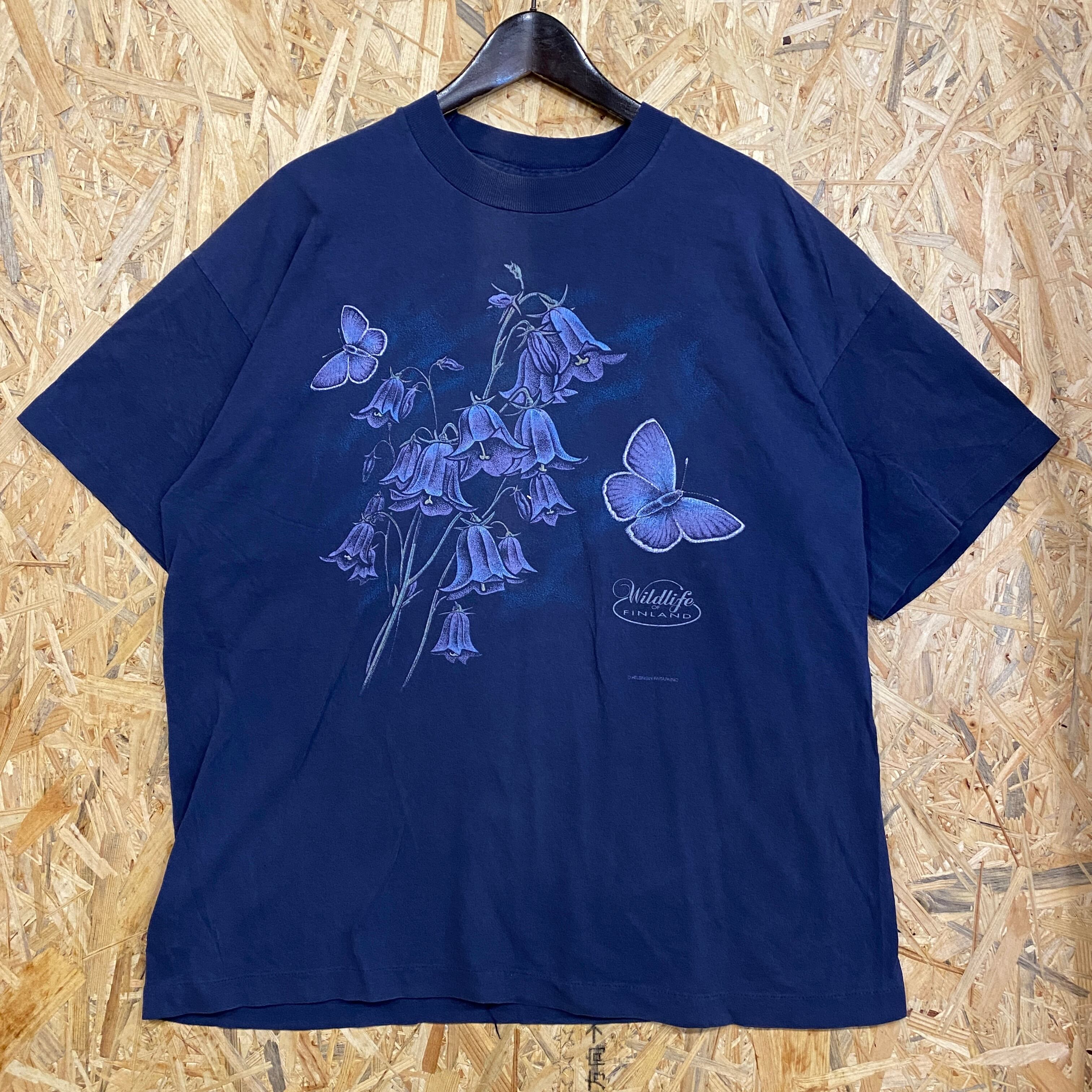 2412 90s 90年代 USA製 シングルステッチ 釣鐘草 ツリガネソウ 花 フラワーscreenstars 紫 パープル プリントTシャツ 古着 メンズ vintage