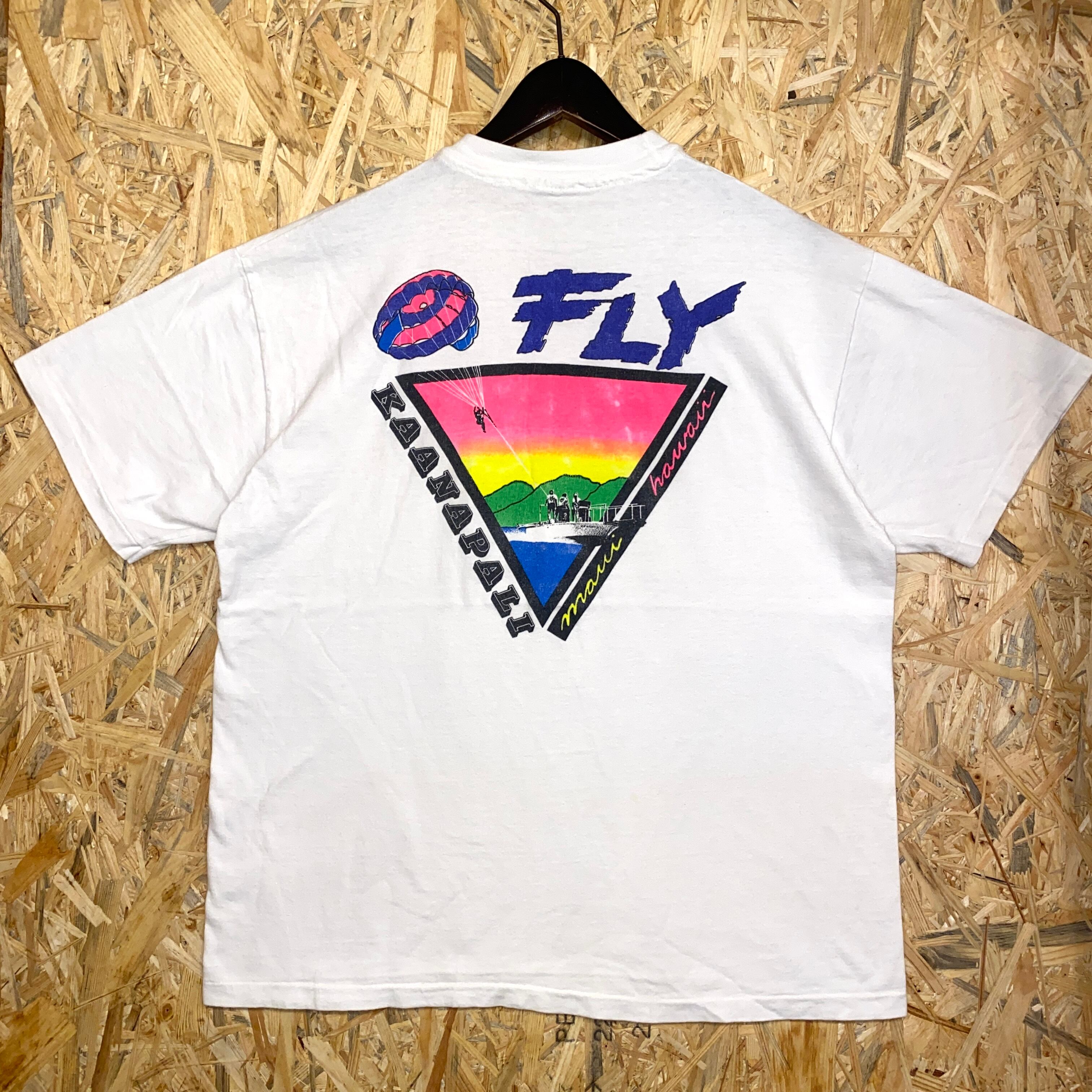 2419 90s 90年代 USA製 KAANAPALI パラシュート ハワイ グラフィック イラスト Tシャツ ホワイト 白 シングルステッチ Hanes 古着 メンズ vintage