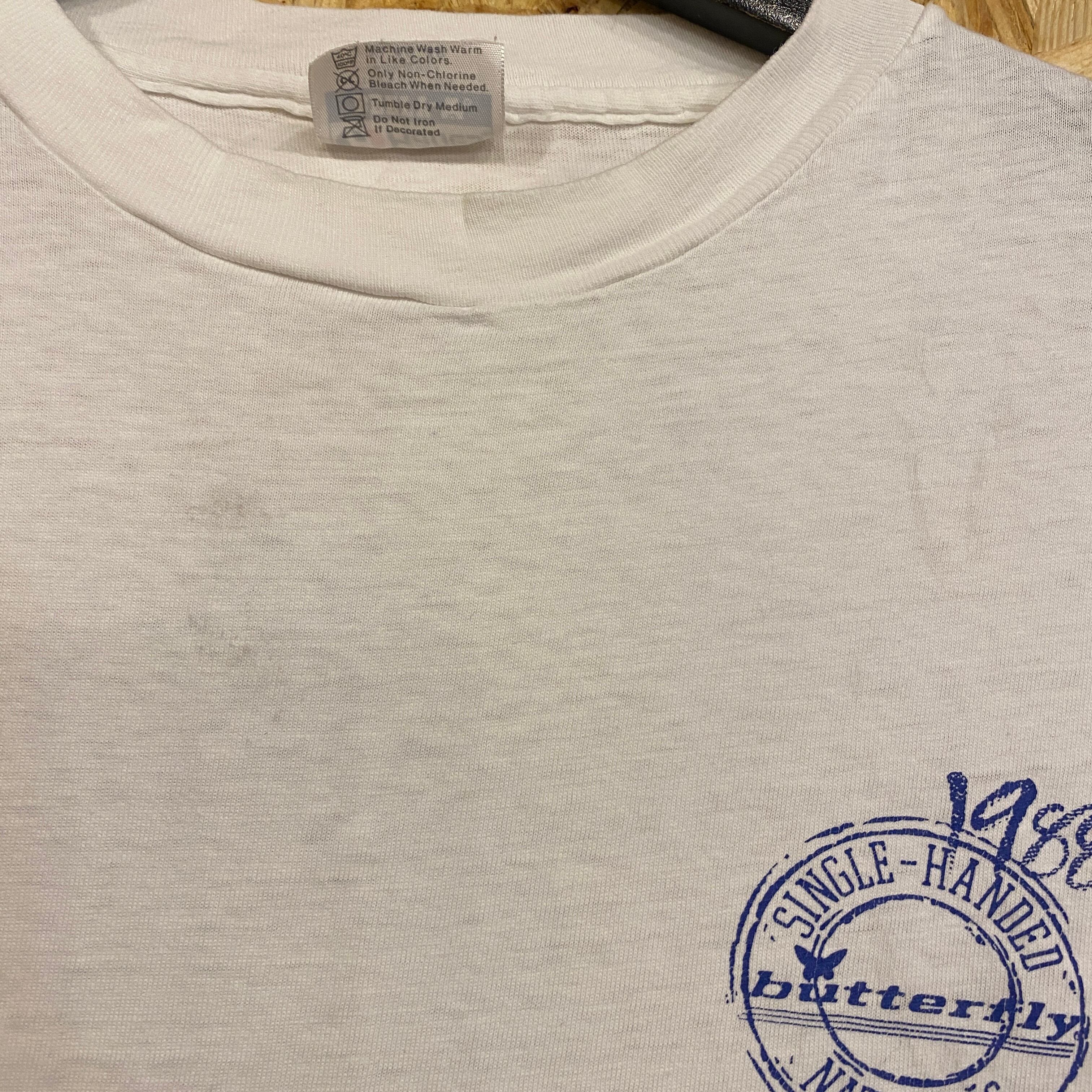 2421 80s〜 80年代〜 USA製 ヨット レース 記念 Tシャツ シングルハンド バタフライ ナショナルズ フロリダ ホワイト 白 シングルステッチ Hanes アート 古着 メンズ vintage