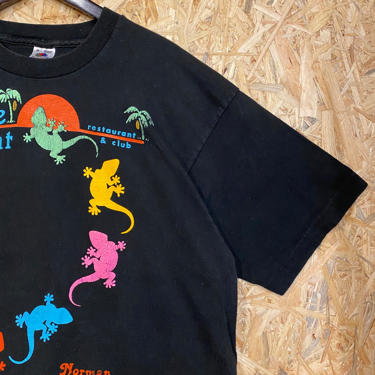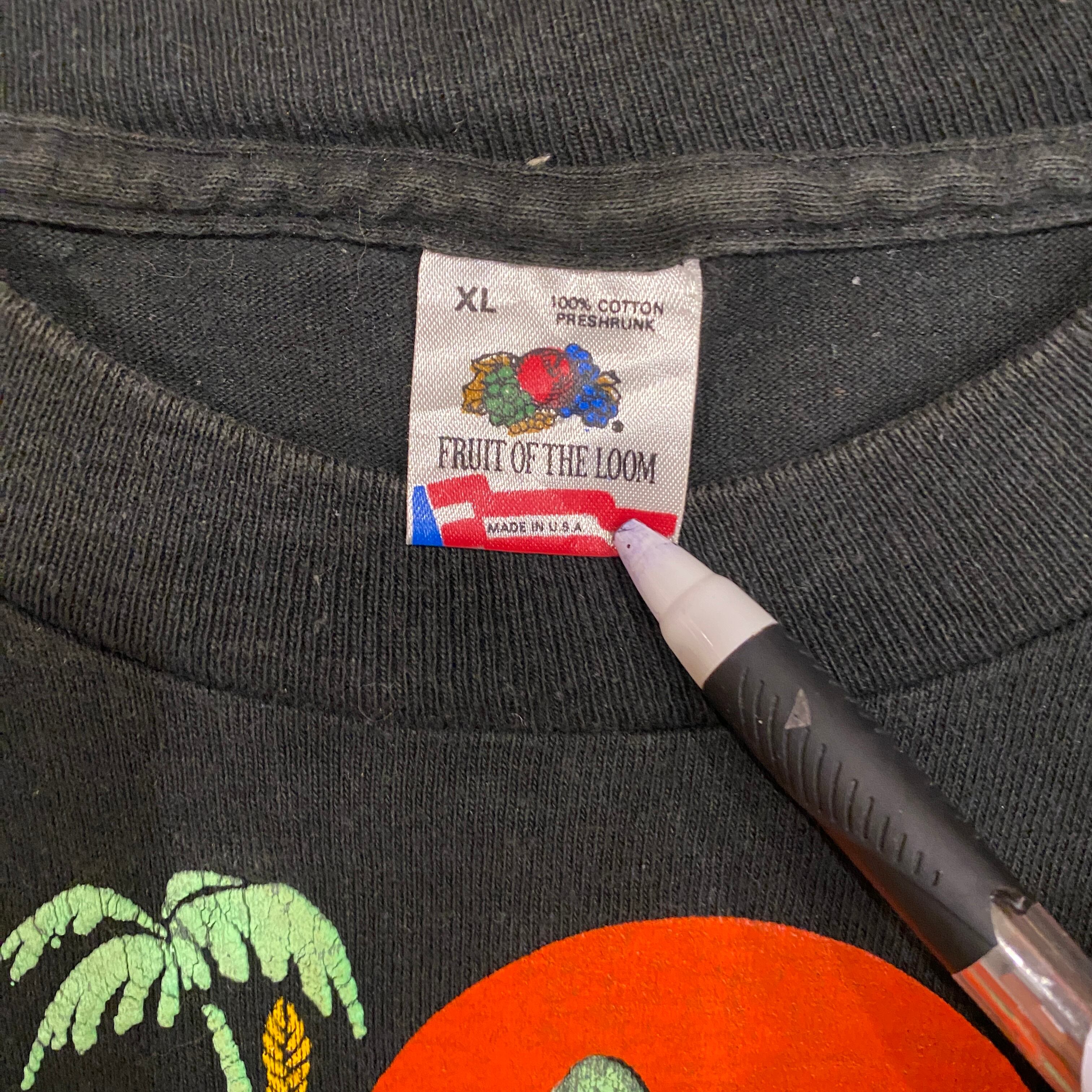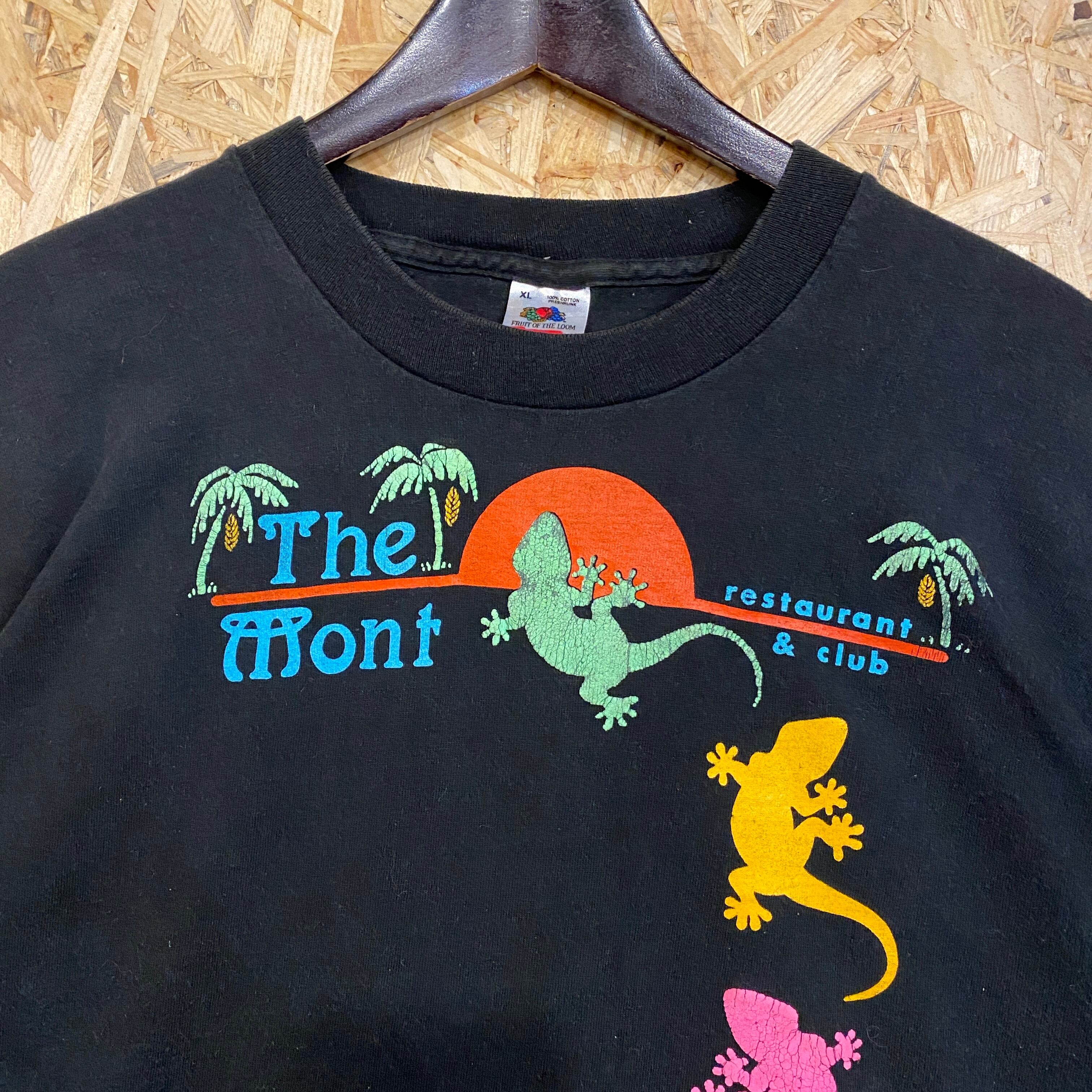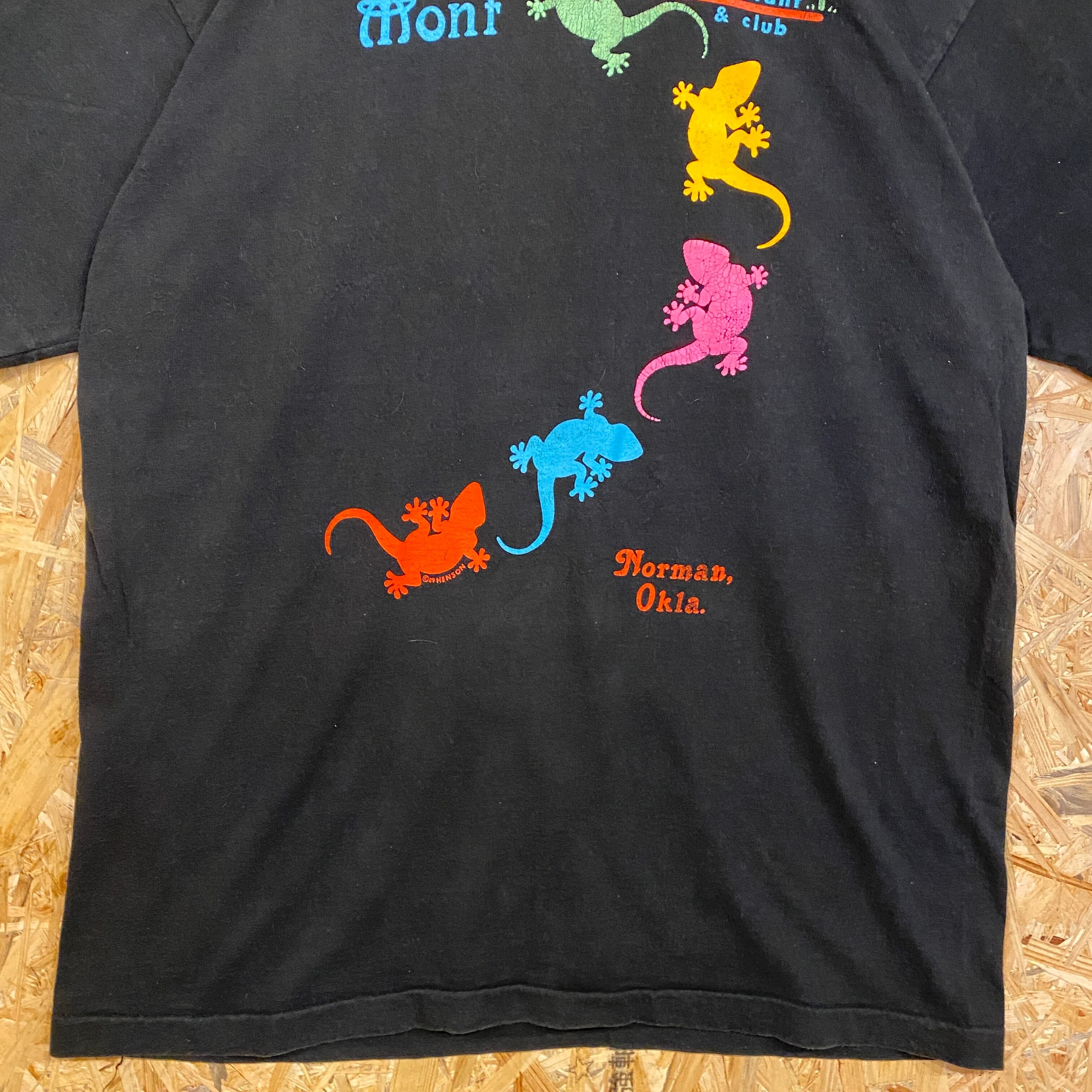 2424 90s 90年代 USA製 シングルステッチ フルーツオブザルーム FRUIT OF THE LOOMトカゲ 蜥蜴 爬虫類 黒 Tシャツ 古着 メンズ vintage